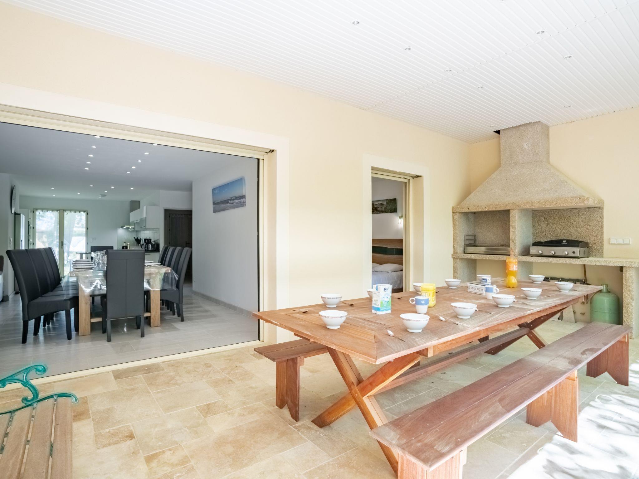 5-room house 120 m2. Comfortable and modern furnishings: living/dining room with TV and international TV channels (flat screen), electric heating, air conditioning and electric shutters. Exit to the garden, to the terrace. 1 room with 1 x 2 bunk beds (90 cm, length 190 cm), 1 french bed (1 x 140 cm, length 190 cm). 1 room with 1 french bed (1 x 140 cm, length 190 cm). 1 room with 1 french bed (1 x 160 cm, length 200 cm). 1 room with 1 french bed (1 x 160 cm, length 200 cm). Open kitchen (oven, dishwasher, 5 ceramic glass hob hotplates, toaster, kettle, microwave, electric coffee machine, Capsules for coffee machine (Senseo + filtre) extra). Exit to the garden. 2 showers/WC. Terrace furniture, barbecue. Facilities: washing machine, iron. Internet (WiFi, free). Parking. Please note: non-smokers only. 1 small pet/ dog allowed. Smoke alarm.
