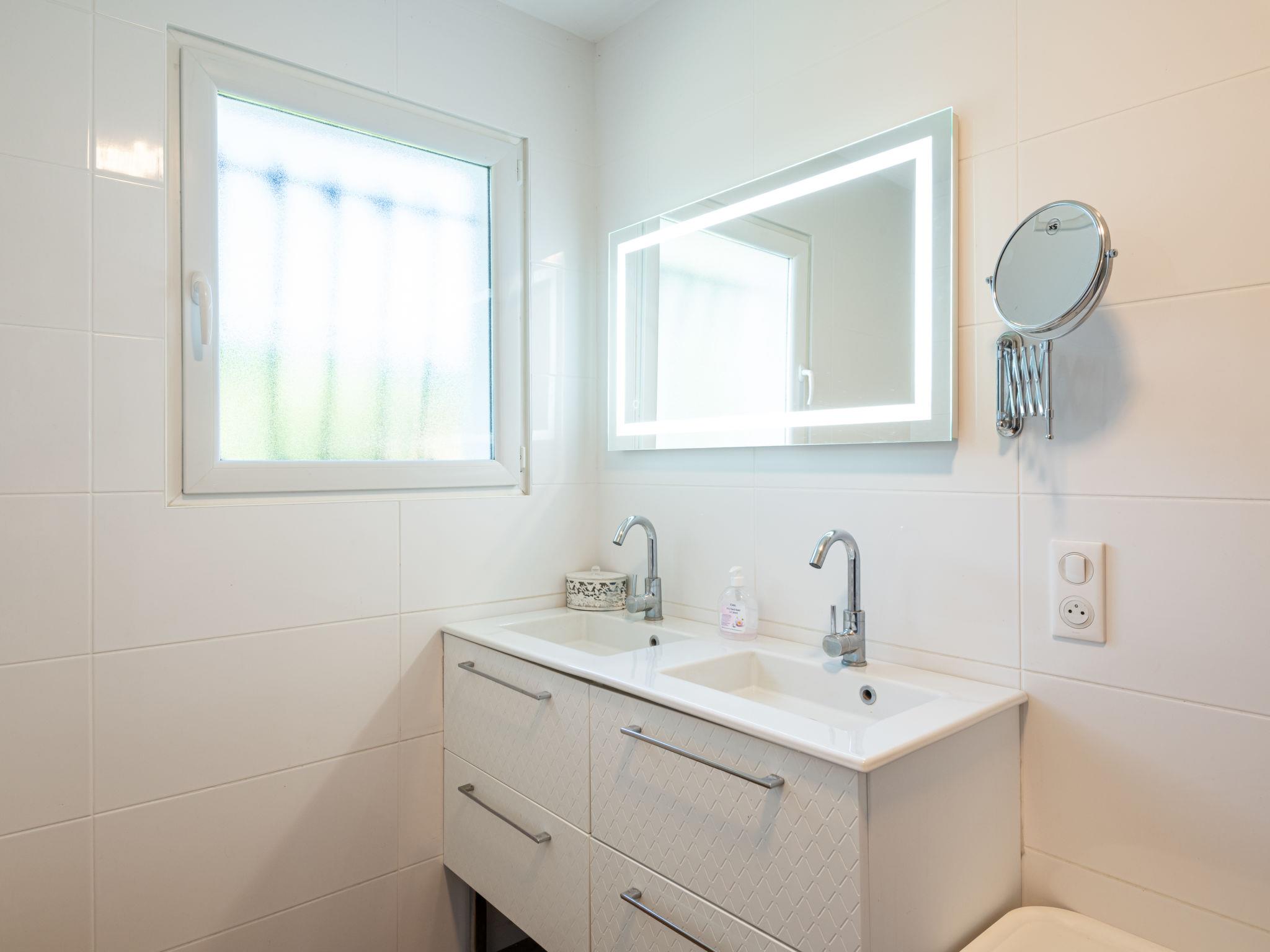 4-room house 90 m2. Beautiful and modern furnishings: living/dining room with TV (flat screen), air conditioning. 1 room with 1 french bed (1 x 140 cm, length 190 cm). 1 room with 1 french bed (1 x 140 cm, length 190 cm). 1 room with 1 french bed (1 x 140 cm, length 190 cm). Open kitchen (oven, dishwasher, 1 induction hot plates, 4 gas rings, toaster, kettle, microwave, freezer, electric coffee machine, Capsules for coffee machine (filtre)). Shower, sep. WC. Air-conditioning, forced-air heating. Large terrace 36 m2, east facing position. Terrace furniture, barbecue. Facilities: washing machine, dryer, iron, hair dryer. Internet (WiFi, free). Parking (fenced). Please note: non-smokers only. 1 small pet/ dog allowed. Smoke alarm. Offer by a private individual according to Art. 155, IV of CGI.