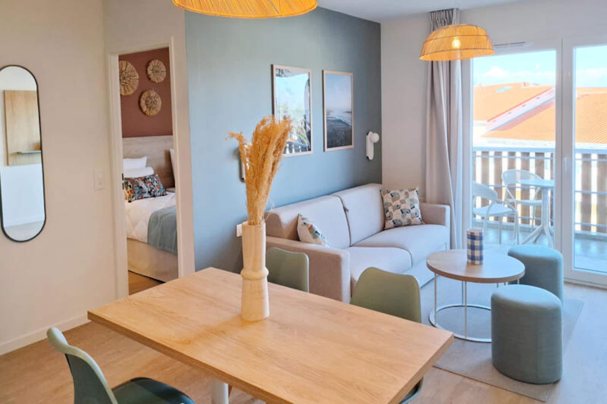 Hvor fyrreskovene møder Atlanterhavets gyldne sand, tilbyder Odalys Bleu Canopée Residence i Mimizan et fredfyldt tilflugtssted for både naturelskere og strandentusiaster. Denne nybyggede bolig er perfekt beliggende kun 650 meter fra stranden og inviterer dig til at fordybe dig i Landes-regionens skønhed. Uanset om du er på udkig efter spændende vandsport eller rolige øjeblikke ved havet, har denne destination det hele. Forestil dig at starte dagen med en forfriskende havbrise og slutte den med bølgernes beroligende lyde under en stjernehimmel. Residensen er designet med henblik på komfort og afslapning. Alle boliger har en hyggelig stue med en udtrækssofa eller sovesofa, et fuldt udstyret tekøkken og en privat altan eller terrasse, hvor du kan slappe af efter en dag fuld af eventyr. Den udendørs swimmingpool og soppebassin er det perfekte sted at tilbringe en afslappet eftermiddag, mens fitnessrummet og saunaen henvender sig til både aktive gæster og dem, der søger ren afslapning. Med Wi-Fi-adgang, sengelinned og håndklæder inkluderet samt kæledyrsvenlige muligheder er der tænkt på alle detaljer for at sikre et stressfrit ophold. Uden for boligen venter Mimizans livlige atmosfære ved havet. Udforsk sandstrandene, forkæl dig selv på de lokale markeder, eller tag på en malerisk cykeltur gennem det frodige landskab. For de eventyrlystne er surfing, stand-up paddleboarding og jetski blot nogle af de aktiviteter, der gør denne region til et paradis for vandsport. Uanset om du er her for at genoplade batterierne, udforske eller blot nyde charmen ved Atlanterhavskysten, lover Odalys Bleu Canopée Residence en uforglemmelig ferie. Lad Mimizans naturlige skønhed og komforten i dette moderne fristed skabe minder, du vil værdsætte for evigt.