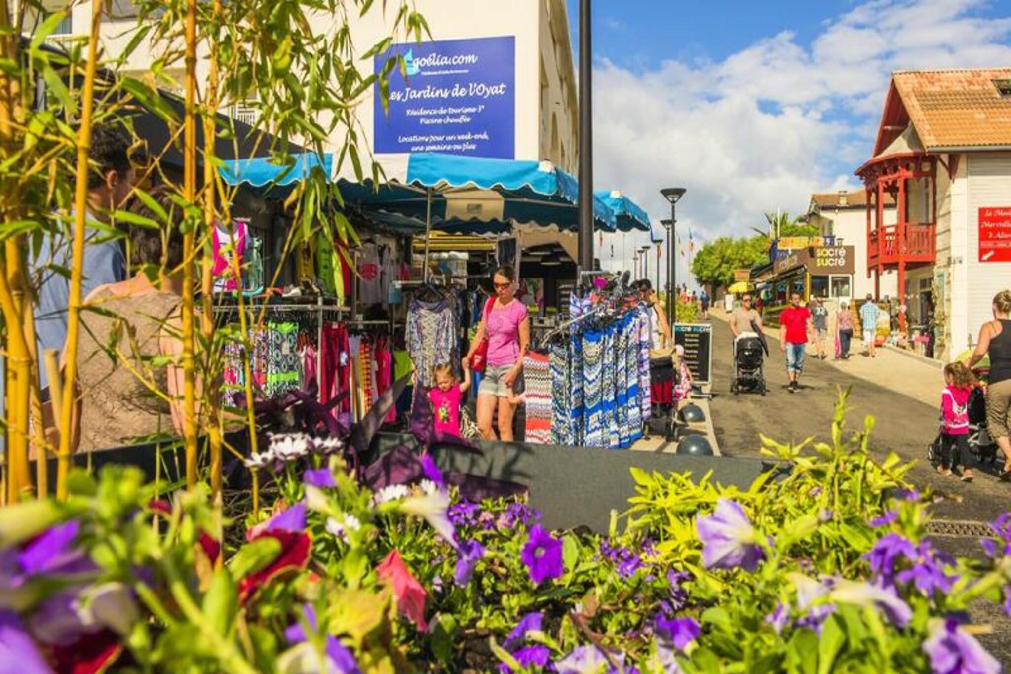 Hvor Atlanterhavets gyldne sand møder de frodige fyrreskove i Landes-regionen, tilbyder Goélia Les Jardins de l'Oyat*** en rolig oase kun 50 meter fra Mimizans uberørte strand. Dette charmerende kystnære tilflugtssted er perfekt placeret for dem, der søger en blanding af afslapning og eventyr, med de pulserende gågader og sæsonbestemte markeder i Mimizan Plage Nord kun en kort gåtur væk. Vågn op til lyden af ??bølger og fordyb dig i den rolige kystatmosfære, der definerer denne idylliske destination. \n\nResidensen har 80 veludstyrede lejligheder fordelt på fire bygninger, inklusive muligheder med balkoner til at nyde den friske havbrise. Hver lejlighed er omhyggeligt designet med en stue, en sovesofa, et udstyret køkken og et hyggeligt soveværelse med en dobbeltseng, hvilket sikrer komfort for op til fire gæster. Gæsterne kan slappe af i den opvarmede udendørs swimmingpool, der er åben fra maj til midten af ??september, eller holde sig aktive i stedets fitnessrum. Yderligere faciliteter inkluderer parkeringskælder, Wi-Fi-adgang og kæledyrsvenlig indkvartering, hvilket gør det til et alsidigt valg for familier, par eller solorejsende. Mimizan er et paradis for friluftsentusiaster og tilbyder en række aktiviteter såsom surfing, bodyboarding, sejlads, cykling og endda faldskærmsudspring. Familier vil sætte pris på resortets