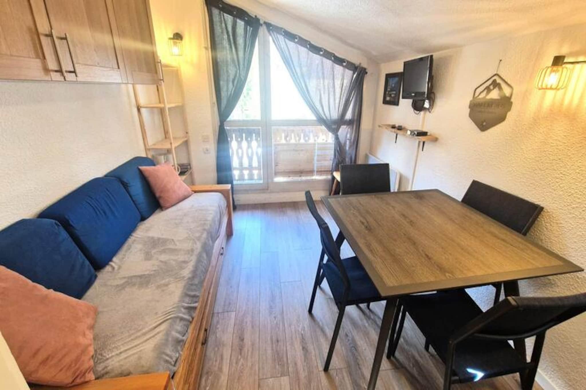 Højt over Tarentaise-dalen inviterer dette charmerende studie dig til at opleve magien i Les Arcs 1800. Badet i sollys og med en betagende udsigt fra sin sydvendte balkon er dette hyggelige tilflugtssted perfekt til par eller små familier, der søger en rolig alpin ferie. Med pisterne og skilifterne kun få skridt væk, befinder du dig i hjertet af en af ??de mest berømte skisportssteder i de franske alper. Uanset om du er her for vintersport eller sommereventyr, sikrer beliggenheden, at hvert øjeblik er fyldt med spænding og skønhed. \n\nIndenfor er studiet omhyggeligt designet til at maksimere komfort og praktisk anvendelighed. Opholdsstuen har en dobbelt udtræksseng, mens entréen tilbyder to praktiske Murphy-senge, hvilket gør den ideel til op til fire gæster. Tekøkkenet er udstyret med to kogeplader, køleskab og ovn, så du kan tilberede solide måltider efter en dag på pisterne. Badeværelset har badekar og toilet, hvilket sikrer en afslappende afslutning på dine aktive dage. For ekstra bekvemmelighed er der et skiskab i stueetagen, og lejligheden er strengt røgfri. \n\nTræd udenfor og oplev den pulserende atmosfære i Les Arcs 1800. Butikker, restauranter og afterski-muligheder er alle inden for rækkevidde, hvilket skaber en livlig landsbystemning. Om sommeren forvandles området til et paradis for vandrere og mountainbikere med stier, der snor sig gennem frodige landskaber og tilbyder en fantastisk udsigt over de omkringliggende tinder. Uanset om du glider ned ad snedækkede pister eller udforsker alpine enge, placerer denne bolig dig i centrum af det hele. \n\nVælg dette studie for dets uovertrufne beliggenhed, hyggelige atmosfære og løftet om uforglemmelige bjergminder. Les Arcs 1800 byder dig velkommen til en verden af ??eventyr og afslapning, hvor hver årstid bringer sin egen unikke charme.