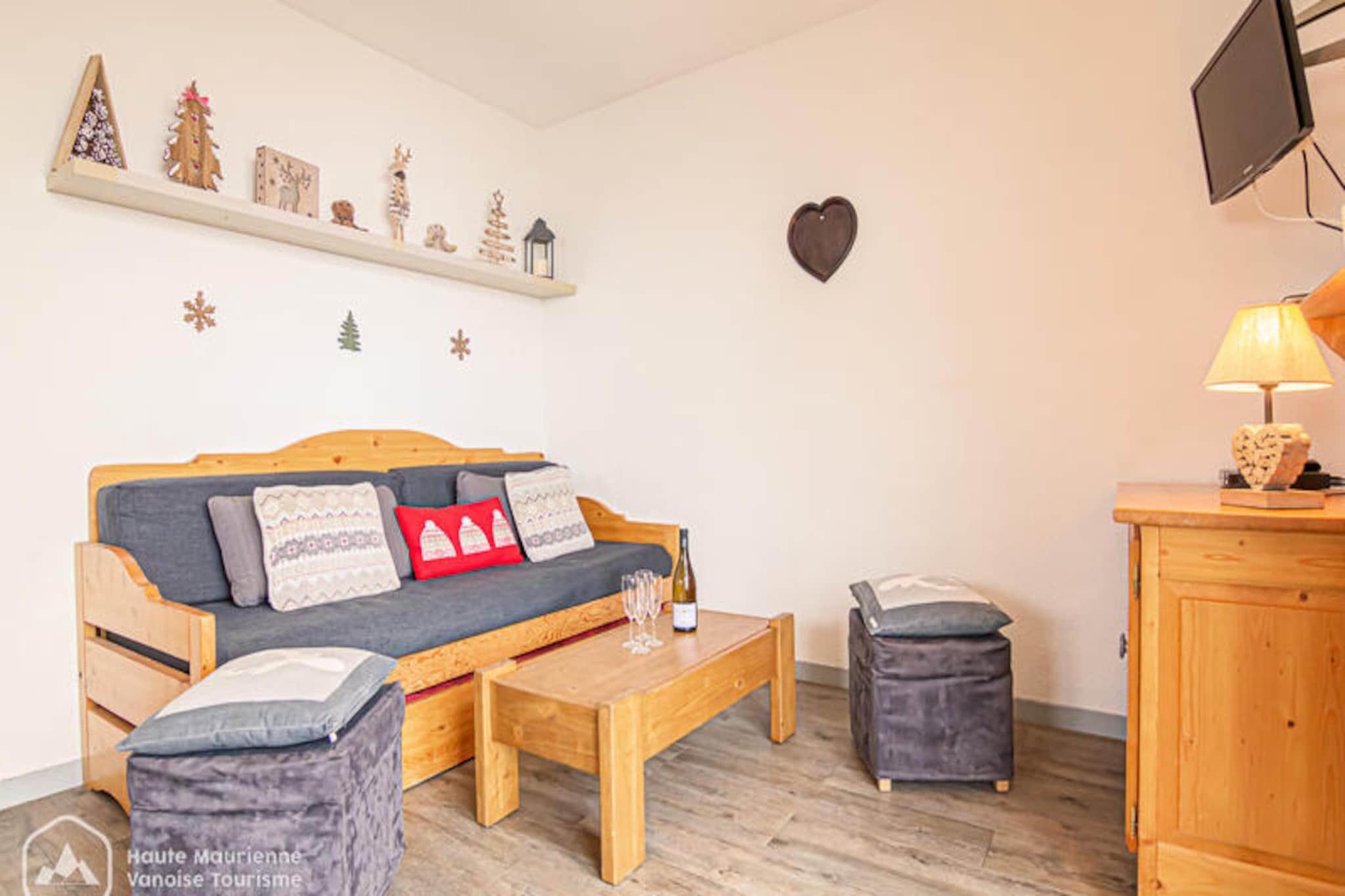 I hjertet af de franske alper, hvor den friske bjergluft møder charmen fra en traditionel alpelandsby, tilbyder denne dejlige lejlighed i stueetagen det perfekte tilflugtssted for familier og små grupper. Beliggende kun 100 meter fra Charmasson-pisten og 500 meter fra Valfréjus' livlige centrum, kombinerer den bekvemmelighed med roen ved en bjergferie. Uanset om du er her for spændingen ved skiløb eller roen ved sommervandreture, placerer denne bolig dig i centrum af det hele. Træd ind i denne fuldt renoverede lejlighed på 40 m², og føl dig straks hjemme. Den hyggelige stue inviterer dig til at slappe af med en udtrækssovesofa, tv, dvd-afspiller, smarthøjttaler og et udvalg af brætspil og bøger. Det åbne køkken er en kokkes drøm, udstyret med et stort køleskab, fryser, opvaskemaskine, varmluftsovn, mikrobølgeovn og endda specialapparater som et raclettesæt og en pandekagemaskine. Med to soveværelser - et soveværelse med en dobbeltseng og en udtræksseng og et kahytrum med køjesenge - kan dette rum komfortabelt rumme op til seks gæster. Moderne bekvemmeligheder såsom håndklædetørrer på badeværelset og Wi-Fi sikrer et behageligt ophold. Lejlighedens 20 m² store terrasse er et højdepunkt, perfekt til at nyde solen eller et måltid med udsigt over de omkringliggende tinder. Skientusiaster vil sætte pris på ski-in/ski-out-adgangen via Charmasson-stoleliften, mens Arrondaz-svævebanen og feriestedets centrum kun ligger en kort gåtur væk. Valfréjus tilbyder en række butikker, skiskoler og afterski-muligheder, hvilket gør det til en pulserende destination året rundt. Uanset om du er tiltrukket af tiltrækningen af ??snedækkede pister eller skønheden i alpine somre, tilbyder denne lejlighed en indbydende base for at skabe uforglemmelige minder. Med sin blanding af moderne komfort og uovertruffen beliggenhed venter dit bjergeventyr.