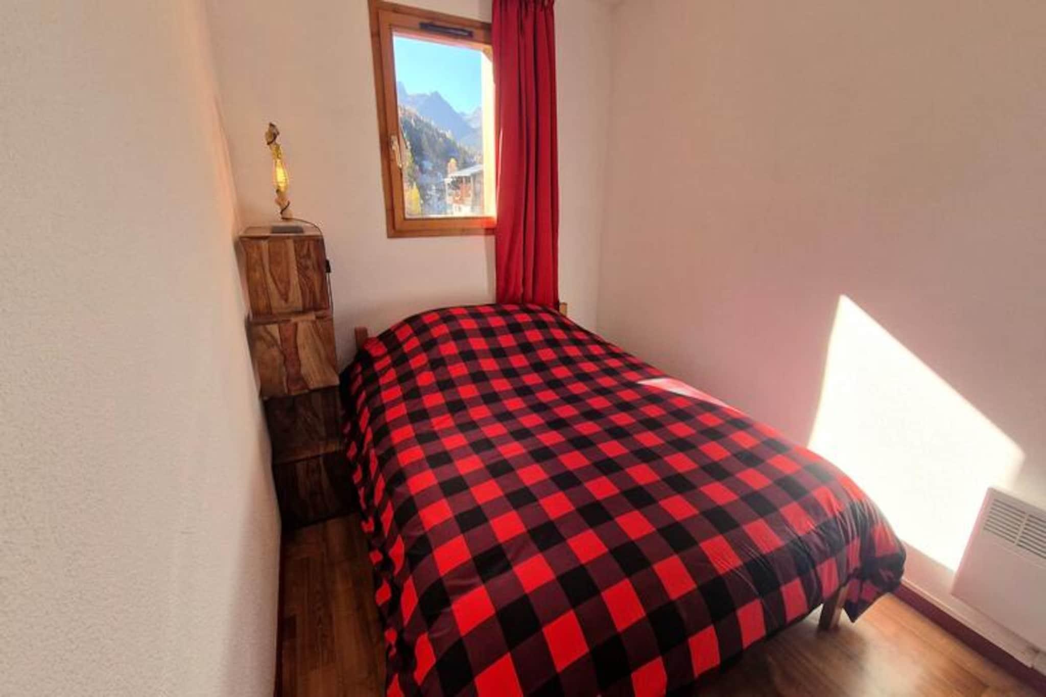 Højt over den charmerende alpelandsby Valfréjus tilbyder denne hyggelige lejlighed med to soveværelser et idyllisk tilflugtssted for både skientusiaster og naturelskere. Med sin førsteklasses beliggenhed kun 100 meter fra Charmasson-pisten og stoleliften er dit næste eventyr altid inden for rækkevidde. Boligen ligger på 7. sal og er tilgængelig med elevator. Fra den private balkon er der en fantastisk udsigt mod syd, hvor du kan nyde den friske bjergluft og det betagende landskab. Lejligheden er designet til komfortabelt at rumme op til seks gæster. Den har en varm og indbydende stue med en dobbelt sovesofa, et lille soveværelse med to køjesenge, perfekt til børn eller venner, og et soveværelse med en blød dobbeltseng. Tekøkkenet er fuldt udstyret med tre kogeplader, køleskab, mikrobølgeovn, miniovn, opvaskemaskine og kaffemaskine, hvilket gør det nemt at tilberede solide måltider efter en dag på pisterne. Et separat badeværelse og toilet bidrager til bekvemmeligheden, mens skiboksen i stueetagen sikrer, at dit udstyr er sikkert opbevaret. Træd udenfor, og du vil befinder dig kun 250 meter fra hjertet af Valfréjus, hvor hyggelige butikker, restauranter og livlige afterski-muligheder venter. Om vinteren tilbyder de snedækkede skråninger i Maurienne-dalen uendelige skiløbsmuligheder, mens sommeren forvandler området til et paradis for vandrere og mountainbikere. Den nærliggende Vanoise Nationalpark inviterer dig til at udforske dens uberørte landskaber og mangfoldige dyreliv. Uanset om du søger spændende udendørseventyr eller en fredelig alpin flugt, er denne lejlighed den perfekte base for uforglemmelige minder i de franske alper.