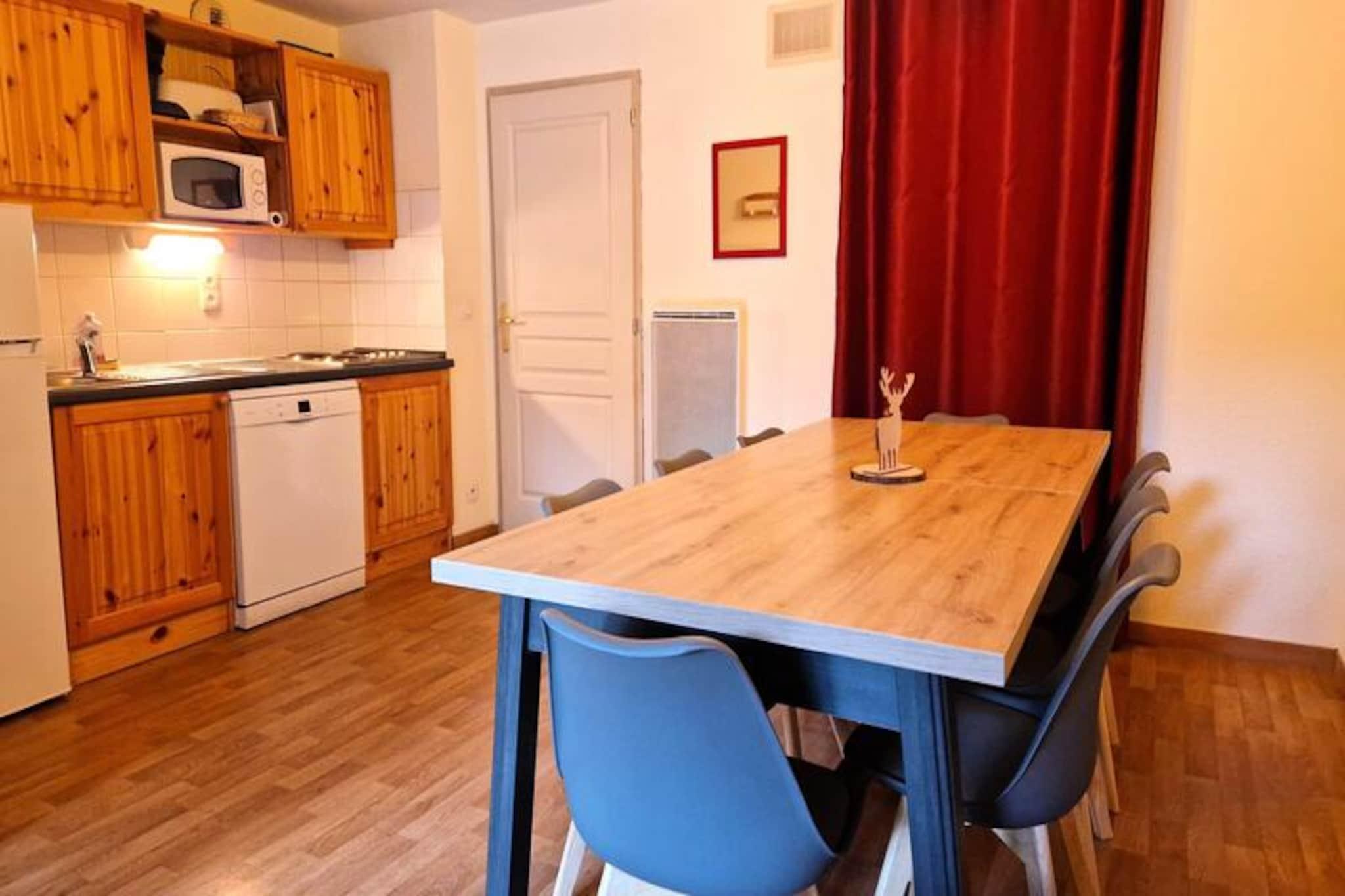 Forestil dig at vågne op til den friske bjergluft og træde ud på din private sydvendte terrasse, hvor de majestætiske tinder af de franske alper hilser dig velkommen. Denne charmerende lejlighed med et soveværelse og ekstra sovealkove er perfekt beliggende kun 30 meter fra svævebanen og tilbyder uovertruffen adgang til pisterne og det pulserende hjerte af feriestedet. Uanset om du er her for spændingen ved skiløb eller den fredfyldte skønhed i alpine somre, er denne bolig din port til uforglemmelige eventyr. \n\nLejligheden er designet til komfortabelt at rumme op til otte gæster og har en hyggelig stue med en dobbelt sovesofa, et soveværelse med en dobbeltseng og et bjerghjørne med køjesenge adskilt af mørklægningsgardiner for ekstra privatliv. Tekøkkenet er fuldt udstyret med moderne apparater, herunder opvaskemaskine, mikrobølgeovn og kaffemaskiner, hvilket gør det nemt at tilberede solide måltider efter en dag med udforskning. To badeværelser, herunder et ensuite med bruser og toilet, sikrer bekvemmelighed for alle gæster. \n\nTræd udenfor, og du vil befinder dig kun få øjeblikke væk fra skiskoler, butikker og restauranter, hvilket gør det nemt at fordybe dig i feriestedets livlige atmosfære. Om vinteren kan du nyde spændingen ved ski-in/ski-out-adgang, mens sommeren inviterer dig til at udforske vandrestier, mountainbikeruter og betagende udsigter. Ejendommen tilbyder også et skirum for din bekvemmelighed. \n\nUanset om du søger eventyr eller afslapning, kombinerer denne lejlighed komfort, bekvemmelighed og en fantastisk alpin udsigt og lover et mindeværdigt ophold i hjertet af de franske alper.