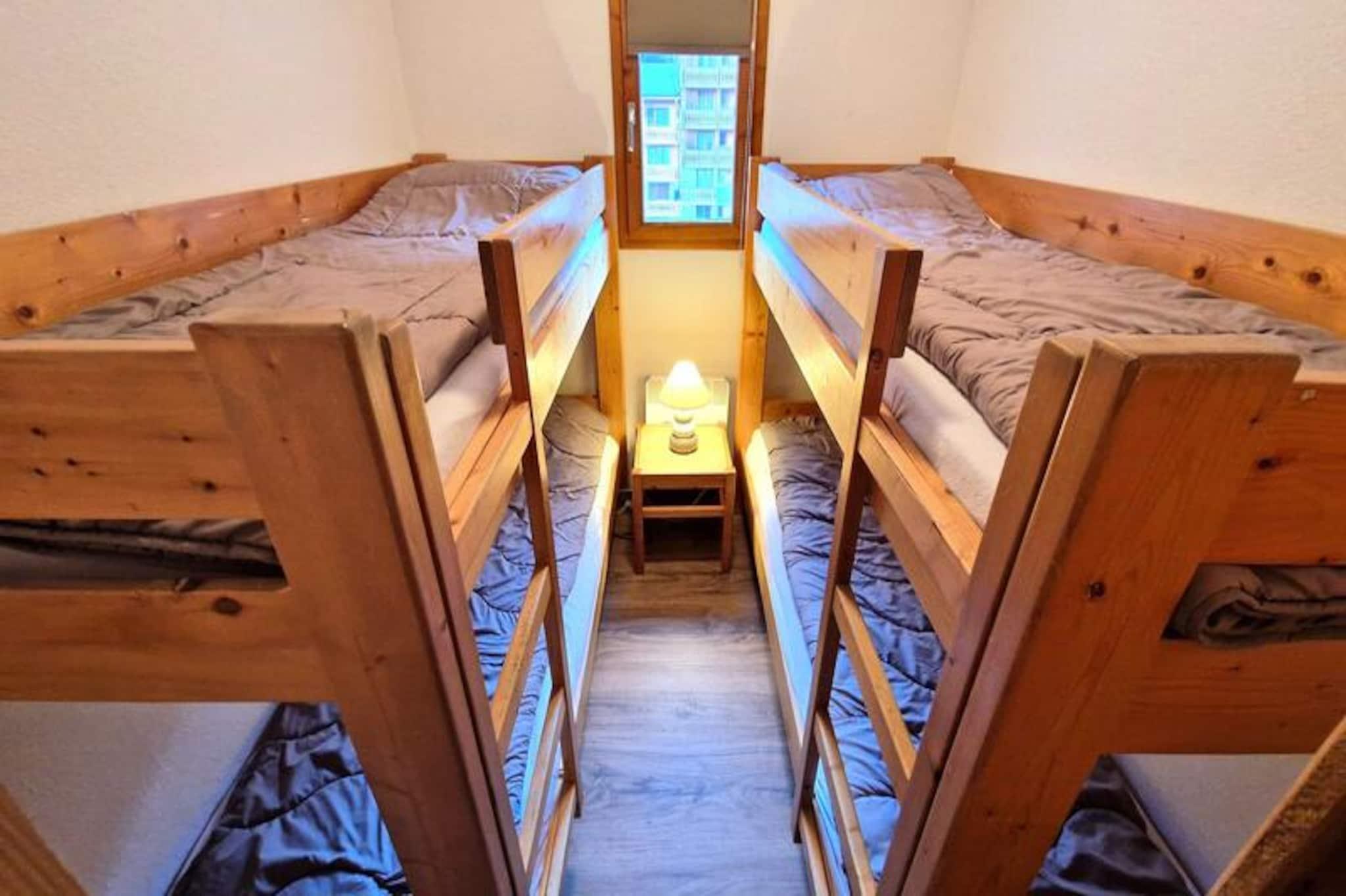 Midt i de franske alpers pulserende energi tilbyder denne charmerende bolig et perfekt alpint tilflugtssted for familier og grupper. Med sin førsteklasses beliggenhed kun få meter fra pisterne og svævebanen, vil du befinder dig midt i hjertet af feriestedet, omgivet af butikker, skiskoler og den betagende skønhed i Vanoise-massivet. Forestil dig at vågne op til panoramaudsigt fra din rummelige balkon, hvor den friske bjergluft stimulerer dine sanser, og de snedækkede tinder inspirerer dine dagens eventyr. Denne omhyggeligt designede lejlighed med et soveværelse og hytte har komfortabel plads til op til otte gæster. Stuen har en hyggelig dobbeltsovesofa, mens hytten tilbyder to køjesenge, perfekt til børn eller venner. Et separat soveværelse med en dobbeltseng sikrer privatliv og komfort. Det veludstyrede tekøkken med fire kogeplader, køleskab, ovn, opvaskemaskine og både Senseo- og traditionelle kaffemaskiner inviterer dig til at tilberede solide måltider efter en dag på pisterne. Med et badeværelse, et brusebad og et separat toilet sikrer planløsningen bekvemmelighed for alle gæster. Efter en spændende dag på ski eller på udforskning af stierne kan du slappe af på den store balkon og nyde den uhindrede udsigt over det majestætiske Vanoise-massiv. Boligen har også et skirum i stueetagen for ekstra bekvemmelighed. Denne ejendom er ikke-ryger og designet med komfort i tankerne, hvilket sikrer et afslappende og mindeværdigt ophold. Uanset om du er her for at grave dig gennem uberørt sne, udforske den charmerende landsby eller blot sole dig i den rolige alpine atmosfære, er denne bolig din port til en uforglemmelig bjergflugt.