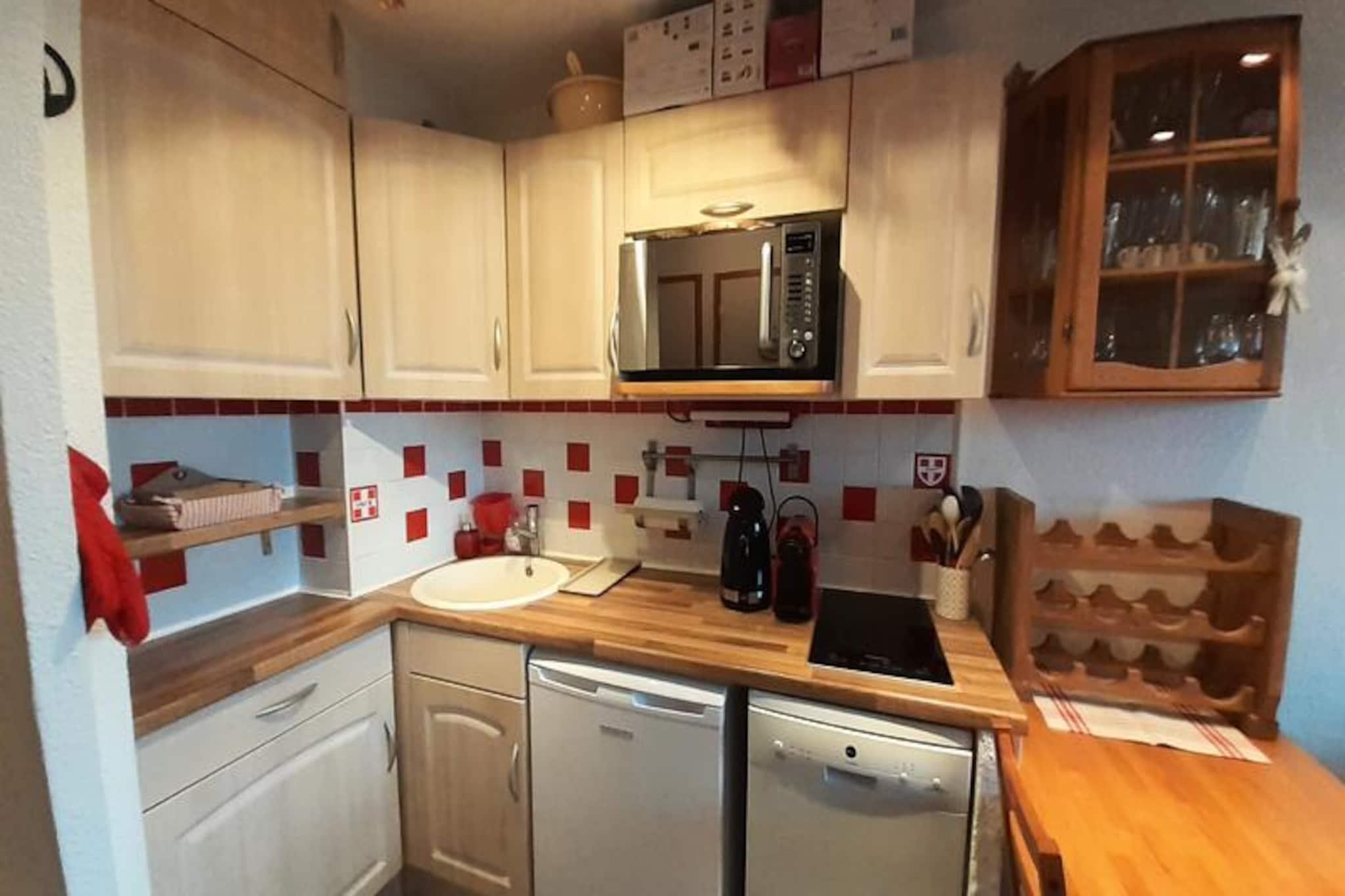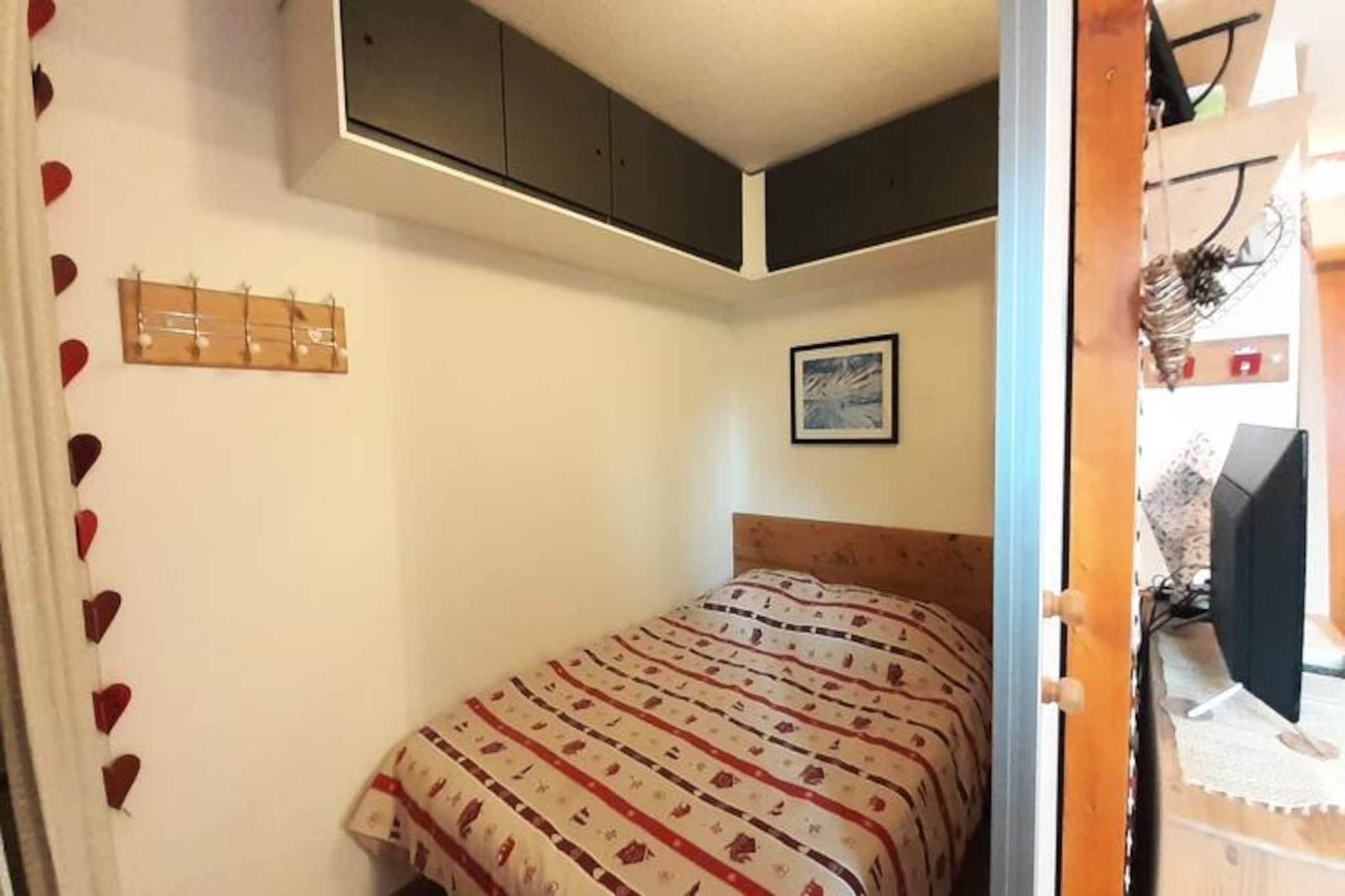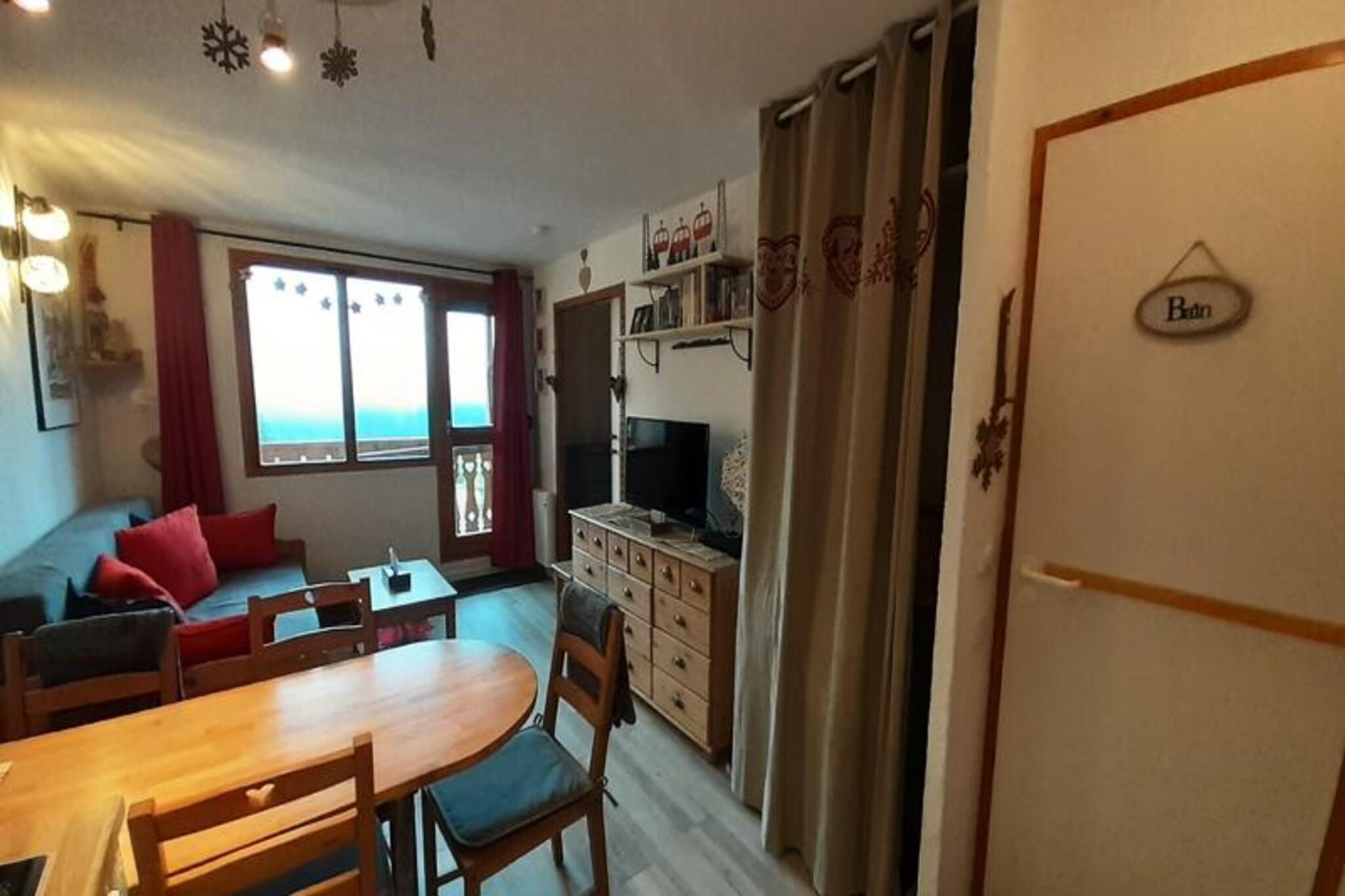 Denne charmerende studiolejlighed ligger højt oppe i den maleriske landsby Valfréjus og tilbyder et hyggeligt tilflugtssted for op til fire gæster. Med en betagende udsigt over dalen og Vanoise Nationalpark fra sin vestvendte balkon er boligen perfekt beliggende kun 100 meter fra Arrondaz-svævebanen og lokale butikker og kun 50 meter fra skiskolerne, hvilket gør den til en ideel base for både vinter- og sommereventyr. Uanset om du søger spændende dage på pisterne eller rolige vandreture gennem alpine stier, placerer denne ejendom dig i hjertet af det hele. \n\nIndvendigt er lejligheden omhyggeligt designet til at maksimere komfort og bekvemmelighed. Det udstyrede køkken har moderne apparater, herunder keramisk kogeplade, kombineret mikrobølgeovn, køleskab, opvaskemaskine og endda et raclette-sæt til en autentisk bjergmadoplevelse. Opholdsstuen indbyder til afslapning med et tv, dvd-afspiller og en sovesofa, der kan laves om til to enkeltsenge. Soveværelset i hytten har en hyggelig dobbeltseng med et vindue for naturligt lys, mens badeværelset har badekar, håndvask og hårtørrer. Yderligere faciliteter inkluderer vaskemaskine, Nespresso-kaffemaskine og støvsuger, hvilket sikrer et problemfrit ophold.\n\nResidensen tilbyder også praktiske faciliteter såsom et skirum og gratis udendørs parkering. For ekstra bekvemmelighed kan gæsterne få adgang til valgfrie tjenester som overdækket parkering, rabatter på skiudstyr og aktivitetspas. Om sommeren forvandles regionen til et paradis for naturelskere med endeløse stier og panoramaudsigt.\n\nUanset om du besøger stedet for spændingen ved skiløb eller roen i alpine landskaber, lover dette studie en uforglemmelig ferie i hjertet af de franske alper.