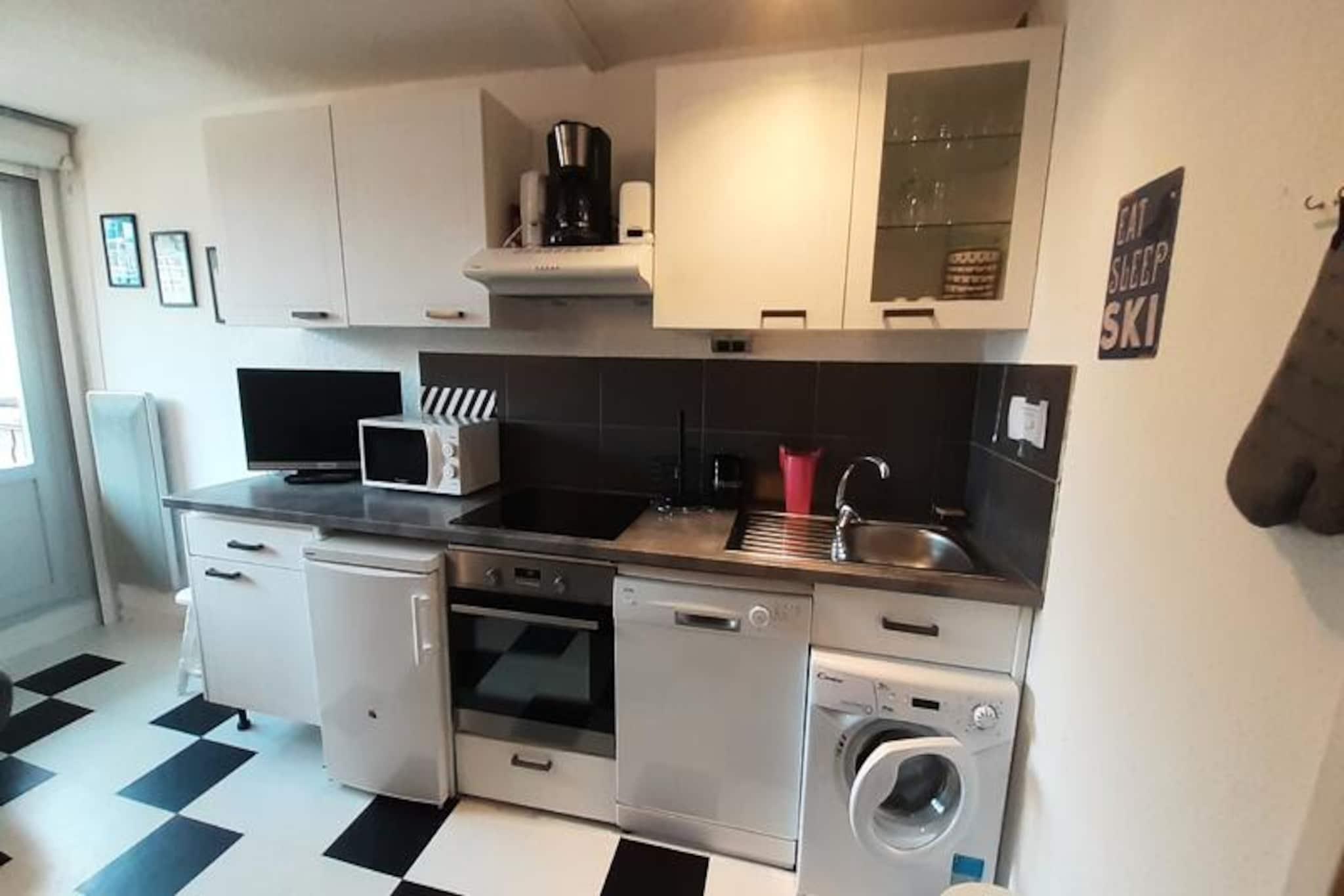 I den charmerende alpelandsby Valfréjus, omgivet af de betagende landskaber i Vanoise Nationalpark, tilbyder denne hyggelige studiolejlighed et idyllisk tilflugtssted for par eller små grupper, der søger en bjergflugt. Med sin førsteklasses beliggenhed kun 20 meter fra Arrondaz-svævebanen og en kort gåtur til butikker og skiskoler, er ethvert eventyr lige uden for døren. Uanset om du er her for at grave dig gennem uberørte pister om vinteren eller udforske naturskønne vandrestier om sommeren, er dette den perfekte base for din alpine ferie. \n\nDet 19 m² store studio, der ligger på første sal i Résidence Thabor, er omhyggeligt designet til at maksimere komfort og bekvemmelighed. Den nordvendte terrasse tilbyder en fantastisk udsigt over de omkringliggende tinder, mens det veludstyrede køkken inviterer dig til at tilberede solide måltider efter en dag med udforskning. Opholdsstuen har en hyggelig sovesofa, en enkelt sammenklappelig seng i entréen og moderne bekvemmeligheder såsom et fladskærms-tv. Badeværelset er udstyret med bruser, håndvask og toilet, hvilket sikrer et behageligt ophold. Dyner, tæpper og puder er inkluderet, og lagner er inkluderet for din bekvemmelighed. Valfréjus er et paradis for friluftsentusiaster. Om vinteren kan du nyde problemfri adgang til skiløjperne og afterski-aktiviteter, mens sommeren forvandler regionen til et paradis for vandreture, mountainbiking og naturudforskning. Den nærliggende Vanoise Nationalpark tilbyder uendelige muligheder for at observere dyreliv og rolige øjeblikke i naturen. Gratis udendørs parkering og valgfri overdækket parkering sikrer problemfri rejse. Uanset om du er tiltrukket af spændingen ved pisterne eller roen på alpine stier, kombinerer denne studiolejlighed komfort, bekvemmelighed og en uovertruffen beliggenhed for at skabe uforglemmelige minder i hjertet af de franske alper.