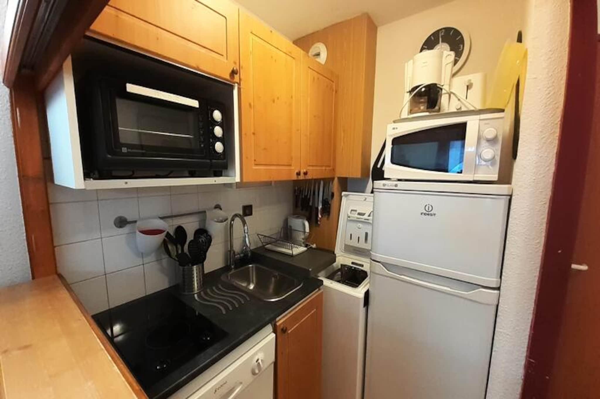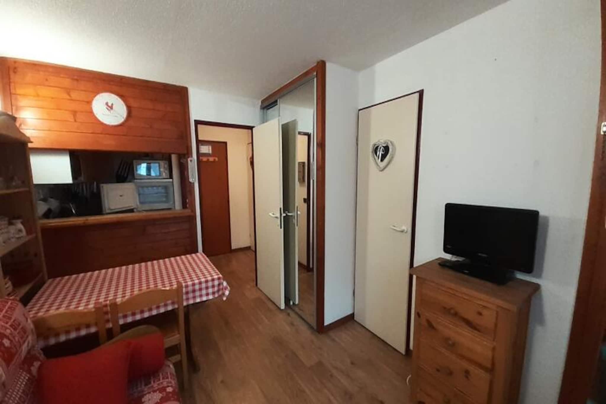 På Valfréjus' solrige skråninger tilbyder dette charmerende studie med hytte et hyggeligt tilflugtssted, kun 50 meter fra Arrondaz-svævebanen, skiskoler og lokale butikker. Perfekt placeret på 4. sal i Résidence Chaviere, tilbyder den sydvendte balkon en fantastisk udsigt over feriestedet, der inviterer dig til at nyde den alpine atmosfære fra solopgang til solnedgang. Uanset om du er her for vintersport eller sommereventyr, sikrer denne ejendom komfort og bekvemmelighed på alle måder. \n\nIndenfor er den 22 m² store lejlighed omhyggeligt designet til at rumme op til fire gæster. Soveværelset i hytten har køjesenge med et vindue for naturligt lys, mens stuen har en komfortabel dobbeltsovesofa. Det veludstyrede køkkenområde kan prale af moderne bekvemmeligheder såsom keramisk kogeplade, opvaskemaskine, køleskab, fryser, ovn, mikrobølgeovn og specialprodukter som et fondue- og raclette-sæt til autentiske bjergmadoplevelser. Et separat badeværelse med badekar og håndvask samt et separat toilet bidrager til rummets praktiske anvendelighed. Yderligere detaljer som Wi-Fi, et tv og inkluderede lagner sikrer et problemfrit ophold. \n\nValfréjus er et paradis for friluftsentusiaster. Om vinteren kan du nyde direkte adgang til uberørte pister, skiundervisning og udlejning af udstyr, mens sommeren forvandler området til et paradis for vandrere og naturelskere. Resortet tilbyder gratis udendørs parkering, og overdækket parkering er tilgængelig efter anmodning. Med nærliggende skibokse og nærhed til vigtige faciliteter er alt, hvad du behøver, inden for rækkevidde. \n\nUanset om du søger spændende nedkørsler, rolige alpine vandreture eller blot en fredelig flugt, er dette studie din port til uforglemmelige øjeblikke i de franske alper. Lad charmen ved Valfréjus og komforten ved Résidence Chaviere skabe varige minder til din næste ferie.