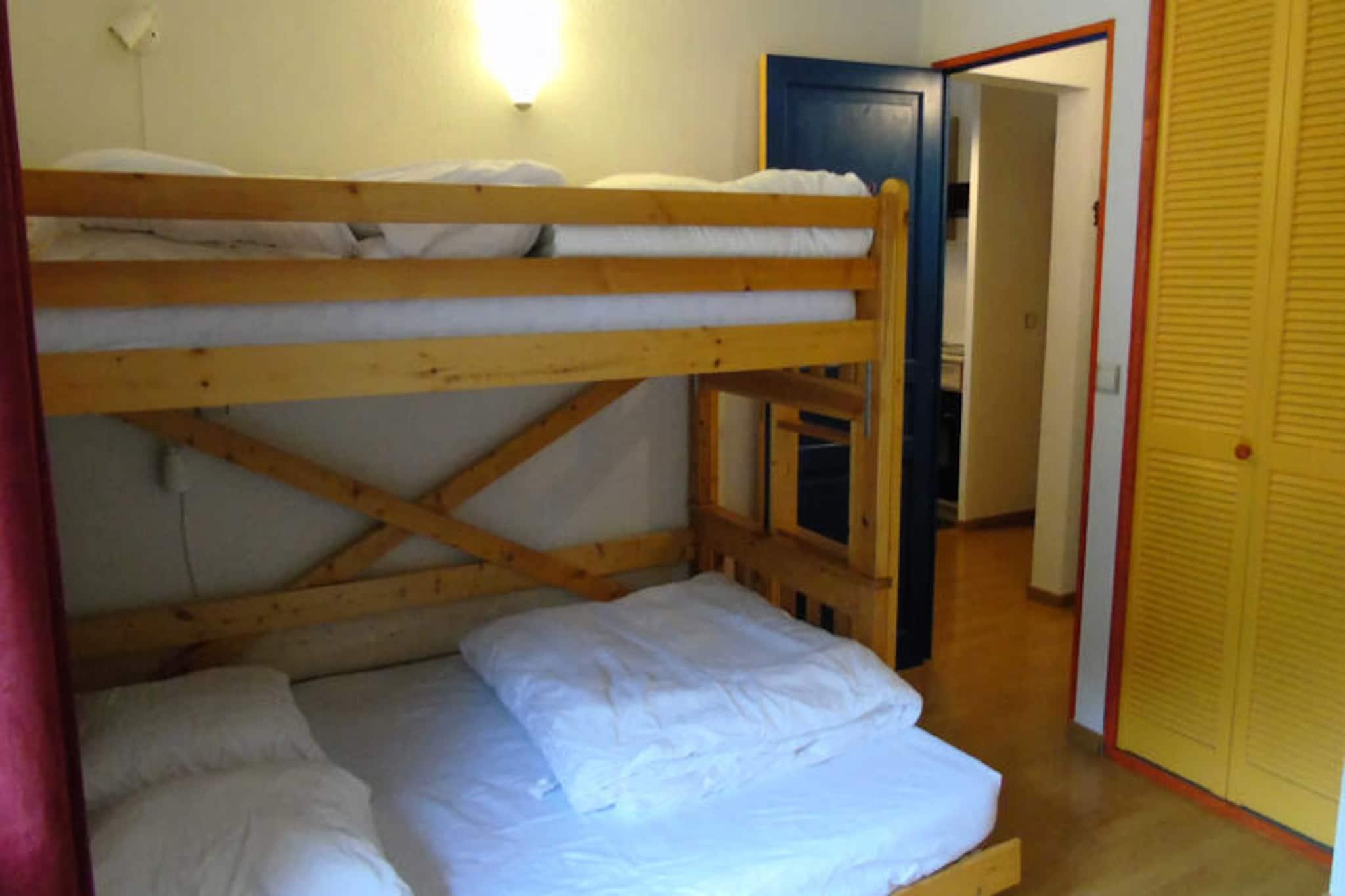 Denne dejlige 2-værelses lejlighed ligger midt i Valfréjus' maleriske charme og tilbyder et hyggeligt tilflugtssted for op til fire gæster. Beliggende i Résidence Charmaix, kan den prale af en misundelsesværdig beliggenhed kun 50 meter fra Arrondaz-svævebanen, skiskoler og lokale butikker, hvilket gør den til den perfekte base for både vintersportsentusiaster og sommereventyrere. Fra dens to sydvendte altaner kan du nyde den fantastiske udsigt over byen, mens du nyder den friske bjergluft. \n\nIndvendigt er lejligheden omhyggeligt designet til at kombinere komfort og praktisk anvendelighed. Det udstyrede tekøkken har moderne apparater, herunder keramisk kogeplade, mikrobølgeovn, ovn, køleskab, opvaskemaskine og kaffemaskine, hvilket sikrer, at du har alt, hvad du behøver til hjemmelavede måltider. Opholdsstuen indbyder til afslapning med sine hyggelige siddepladser og tv, mens badeværelset har badekar, hårtørrer og vaskemaskine for ekstra bekvemmelighed. Sovepladserne inkluderer en dobbeltseng og en enkeltseng på mezzaninen i soveværelset samt en dobbelt sovesofa i stuen, alt sammen suppleret med dyner og puder for en god nats søvn. Wi-Fi og et skirum er også inkluderet for at forbedre dit ophold. \n\nValfréjus er et paradis for friluftsentusiaster og tilbyder gratis udendørs parkering og nem adgang til pisterne om vinteren eller naturskønne stier om sommeren. Uanset om du står på ski ned ad uberørte pister, vandrer gennem frodige alpine landskaber eller blot udforsker den charmerende landsby, sikrer beliggenheden uforglemmelige oplevelser. Yderligere tjenester såsom liftkort, leje af udstyr og aktivitetskort er tilgængelige for at gøre din ferie problemfri og fornøjelig. \n\nMed sin blanding af moderne bekvemmeligheder, uovertruffen beliggenhed og betagende udsigt er denne lejlighed det ideelle valg til at skabe varige minder i hjertet af de franske alper.