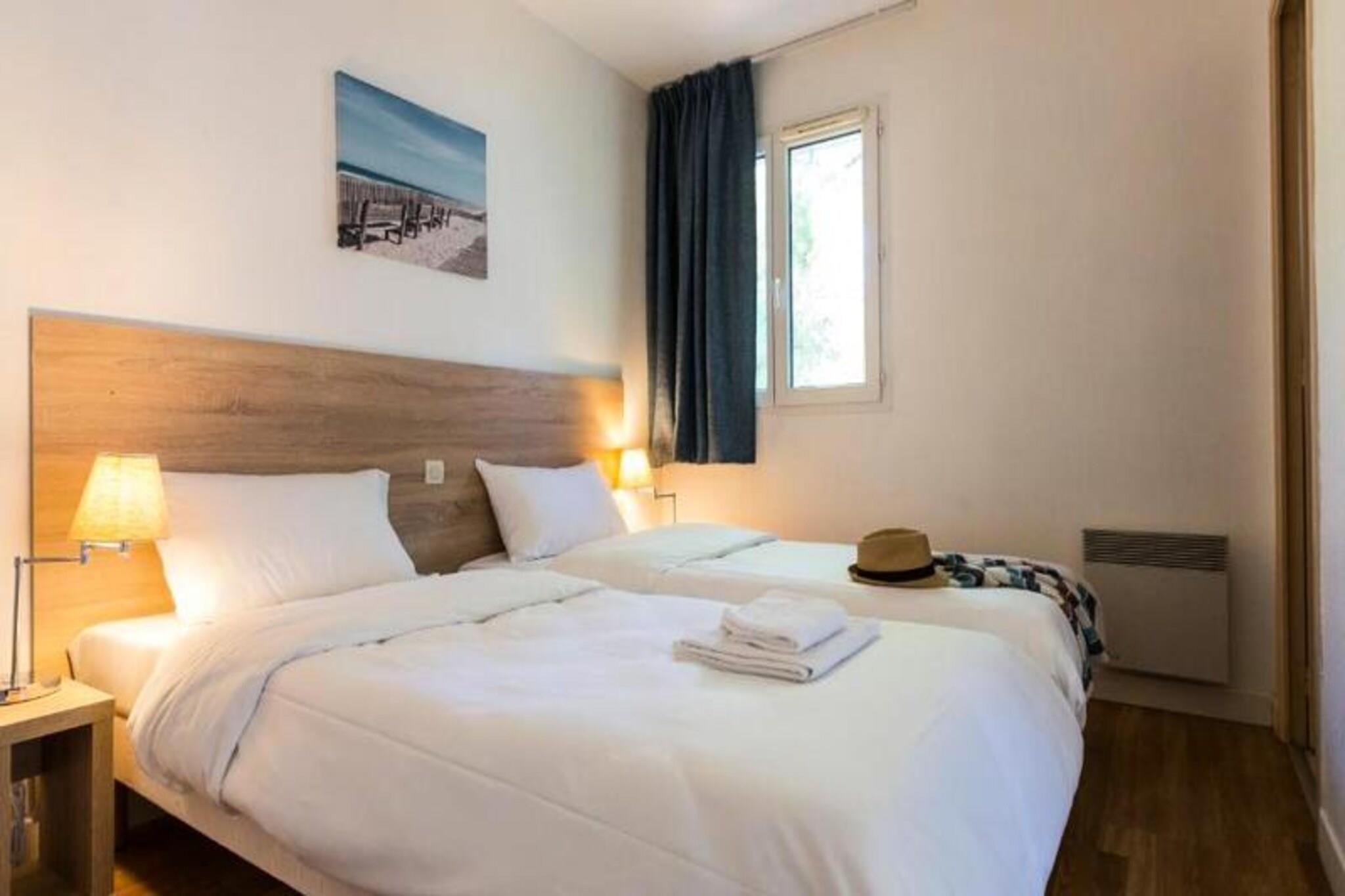 Odalys Bleu Océan*** Residence ligger i Moliets, en hyggelig badeby, der er travl med begivenheder og begivenheder, restauranter og sportsaktiviteter. De 11 hytter, der grænser op til Moliets golfbane, omfatter hver 8 lejligheder i boligen, og ligger i udkanten af ??skove, der kombinerer de naturlige omgivelser med fyrretræer og sand. Boligen har et soppebassin ved siden af ??den udendørs swimmingpool og et legeområde dedikeret til børn. Den store fine sandstrand er tilgængelig 350 m væk via en lille fodgængersti, som snor sig gennem midten af ??fyrretræer og egetræer. De nærmeste butikker ligger 200 m væk. For supermarkeder skal du gå længere (7/8 km) Du kan nyde forskellige aktiviteter uden for boligen for at forbedre dit ophold, såsom bådture på Huchet-strømmen fra Léon, ridning eller vandreture, cykeludlejning (Les Vélos du Golf: -20 % rabat på cykeludlejning for feriegæster i Odalys), drage ... 3 værelses hytte til 6 personer. Ophold. Udstyret køkken. Soveværelse med dobbeltseng og soveværelse med 2 enkeltsenge. Kahyt med 2 køjesenge. Separat badeværelse og toilet. Wifi-adgang - inkluderet (1 adgang pr. bolig) Kæledyr tilladt - EURO70/kæledyr/ophold (7 nætter og mere) - EURO15/nat (mindre end 7 nætter) (hunde holdt i snor i boligen) Depositum (ekstra) - 300 Slutrengøringspakke - inkluderet eksklusive køkken Babysæt - 9€/dag € 35 EURO/ophold Linnedsæt - sengelinnedsæt (lagner + pudebetræk) og toiletartikler: 24 EURO/skift Sengelinned - 16€ / skift / seng (lagner + pudebetræk) Håndklæder - EURO 10/skift Babyseng - 15€ / uge Parkering - fri afdækket, efter reservation Swimmingpool - gratis udendørs uopvarmet og åben fra midten af ??maj til slutningen af ??september - børnebassin Turistskat (ekstra gebyr) - betales på stedet i henhold til gældende takst Fjernsyn - gratis