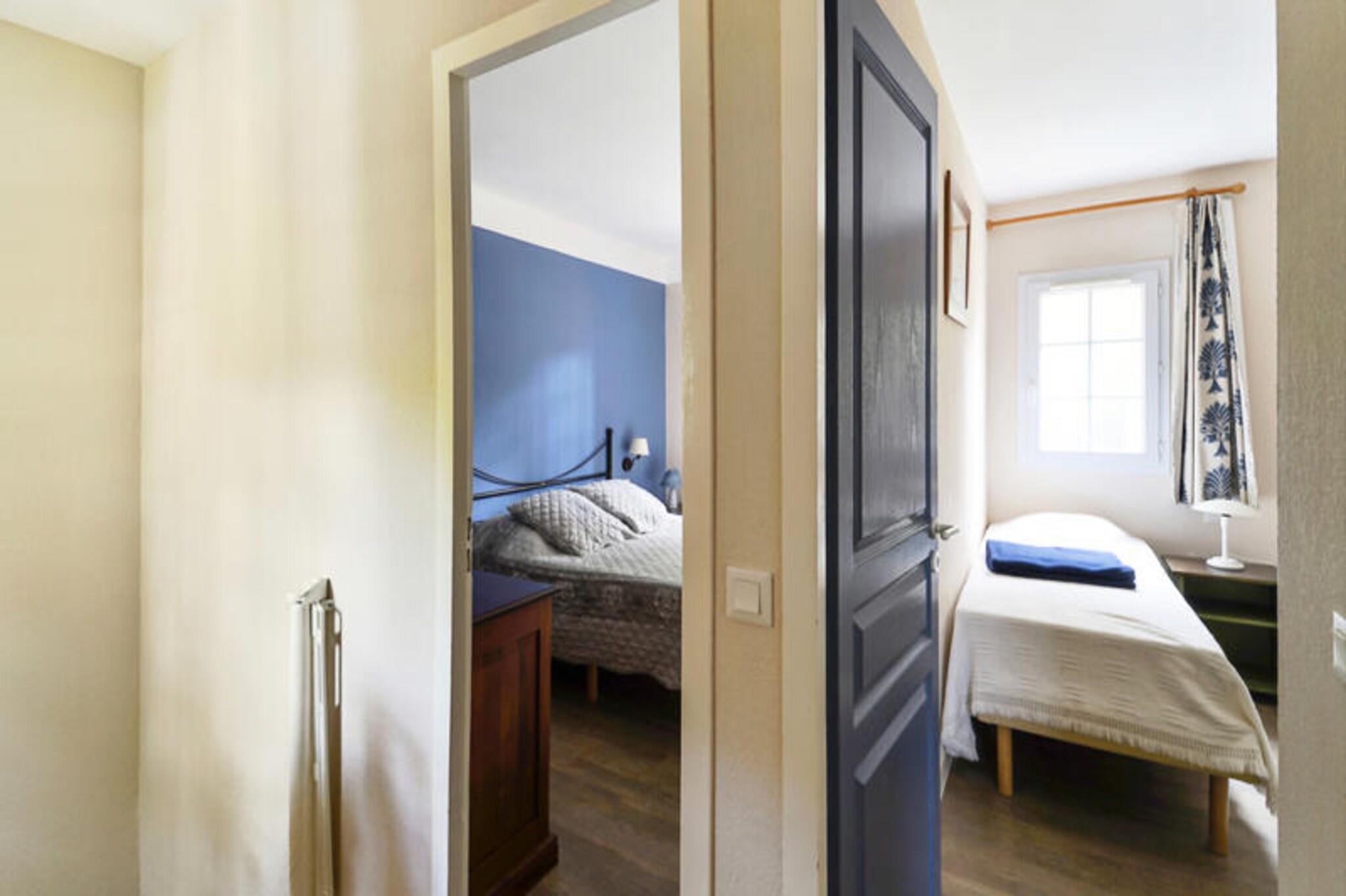 Dette charmerende feriehus ligger i hjertet af Moliets, omgivet af en smuk fyrreskov og med udsigt over en 27-hullers golfbane, der strækker sig ned til havet. Stranden ligger kun 1,5 km væk, let tilgængelig til fods eller på cykel. Boligen er perfekt for dem, der søger en blanding af afslapning og eventyr, og tilbyder en række aktiviteter såsom bodyboarding, karting og bueskydning (ekstra gebyrer). Gæsterne kan også udforske de nærliggende vandrestier eller besøge naturreservatet Courant d'Huchet, der er kendt for sin rige biodiversitet. På stedet finder du masser at nyde med adgang til fire swimmingpools, inklusive to opvarmede pools og en med dykkergrav. Landsbyen byder på en fredelig atmosfære med nem adgang til den omkringliggende skov Landes de Gascogne, hvilket giver de ideelle rammer for udendørsentusiaster. For yderligere afslapning tilbyder boligen moderne bekvemmeligheder og et indbydende miljø for både familier og par. Denne veludstyrede lejlighed på 45 m² omfatter en stue med en sovesofa, et fuldt udstyret køkken, to soveværelser (et med en dobbeltseng og et med to enkeltsenge) og et badeværelse med en kombination af badekar og bruser. Enheden har også balkon, terrasse og parkeringsplads. Valgfri tjenester såsom babysæt, sengelinned, håndklæder og rengøring er tilgængelige mod et ekstra gebyr. Gæsterne kan nyde gratis adgang til hotellets swimmingpool i de varmere måneder.