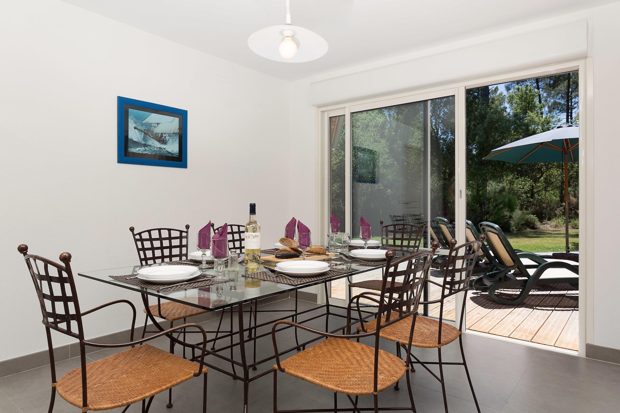 Velkommen til din fredfyldte flugt i hjertet af Moliets, beliggende mellem Atlanterhavet og et hav af fyrretræer. Denne smukke villa i Landes-stil blander rustik fransk charme med moderne bekvemmeligheder og byder på en rummelig have, privat pool og hyggelig pejs. Uanset om du nyder morgenkaffe på træterrassen eller nyder et aftenbad i boblebadet, er hver detalje designet til afslapning. Villaen sover op til 8 og tilbyder fleksible sovearrangementer perfekt til familier eller grupper. Beliggende lige ved Golf de Moliets-banen og kun 1,2 km fra uberørte strande via naturskønne cykelstier, er denne villa en drøm for udendørsentusiaster. Tilbring dine morgener med at tee ud, dine eftermiddage med at slappe af på det gyldne sand, og dine aftener med at spise under stjernerne. Du er også en kort gåtur fra tennisbaner, en indbydende hotelbar og en charmerende restaurant. For dagsture, udforsk nærliggende Biarritz, Saint-Jean-de-Luz eller den spanske grænseby Hendaye - hver kun en time væk. Tag din lodne ven med! Moliets er vidunderligt kæledyrsvenligt og tilbyder hundevenlige strande og fyrretræsduftende vandrestier som Courant d'Huchet naturreservat. Lokale caféer udstiller endda vandskåle og godbidder til firbenede gæster. Uanset om du er på eventyr med din hvalp eller slapper af ved poolen, tilbyder denne villa en virkelig inkluderende og uforglemmelig ferie ved Atlanterhavet.