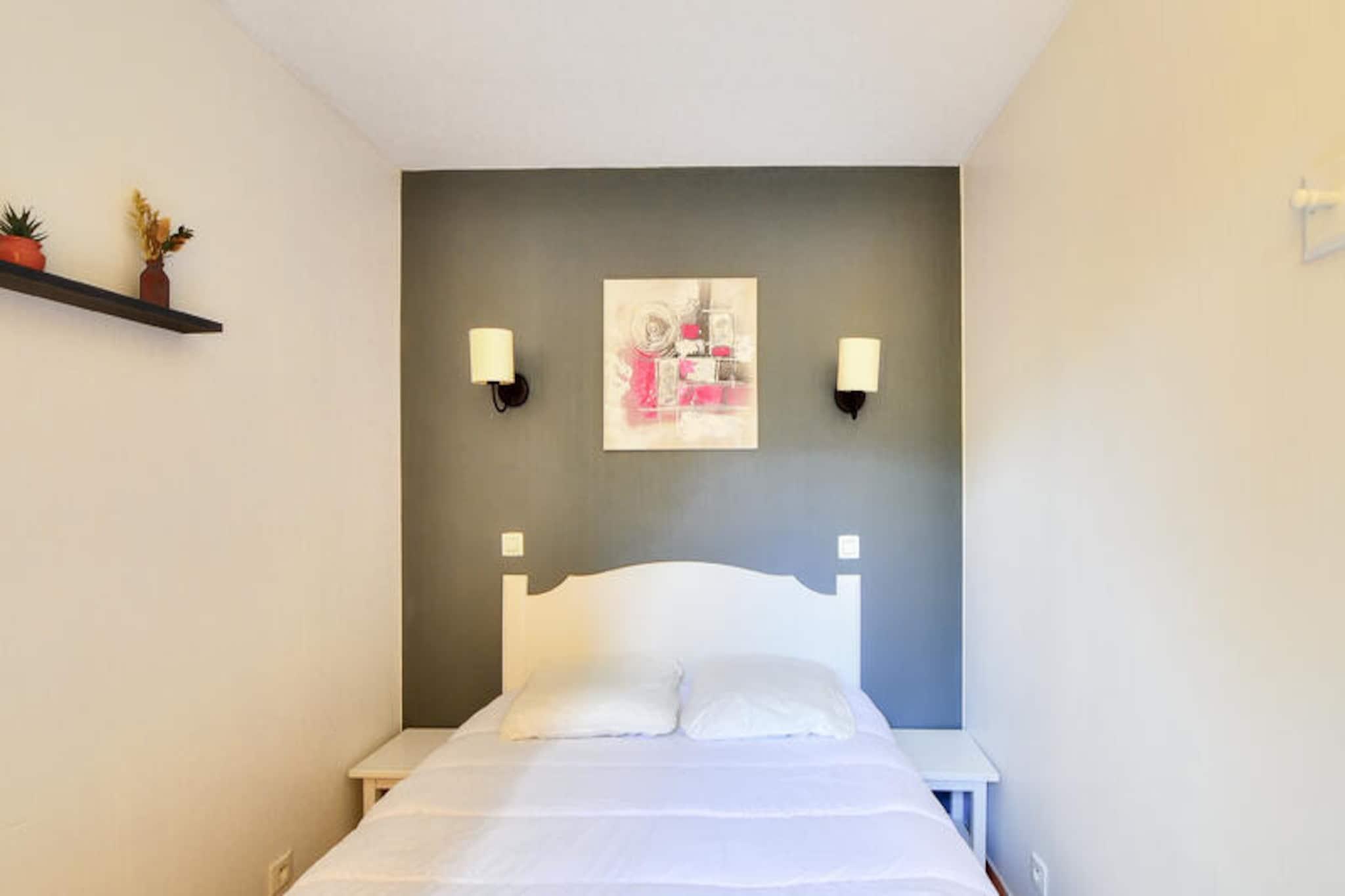 Midt i de bølgende bakker i Lot-et-Garonne-regionen tilbyder Résidence du Lac i Monflanquin en fredfyldt oase omgivet af frodigt grønt og en rolig sø. Denne maleriske landsby med sin middelalderlige arkitektur og charmerende atmosfære inviterer dig til at træde tilbage i tiden, mens du nyder moderne komfort. Uanset om du søger afslapning eller eventyr, lover denne destination en uforglemmelig oplevelse. Residensen har en opvarmet udendørs swimmingpool, åben fra midten af ??maj til slutningen af ??oktober, komplet med et børnebassin til de små og en solterrasse til at nyde solen. Sportsentusiaster kan spille bordtennis, petanque og bordfodbold, mens de nærliggende stier og veje er perfekte til vandreture og cykling. Selve lejligheden er designet til komfort og har plads til op til fire gæster. Den indeholder en hyggelig stue med sovesofa, et soveværelse med dobbeltseng, et badeværelse med badekar og et separat toilet. Den overdækkede nordvestvendte terrasse tilbyder en fredelig udsigt over den omkringliggende skov og skaber de perfekte rammer for morgenkaffe eller aftenafslapning. Et fuldt udstyret køkken med mikrobølgeovn, køleskab, kaffemaskine og opvaskemaskine sikrer et problemfrit ophold. Résidence du Lac ligger mindre end 500 meter fra lokale attraktioner og en kort køretur fra butikker og er ideelt placeret til at udforske regionens rige kulturarv. Oplev nærliggende slotte, nyd ridning, eller padle langs vandvejene med kano- og kajak-eventyr. Monflanquins charme kombineret med boligens faciliteter gør det til et ideelt valg for par, familier eller venner, der ønsker at slappe af og genoprette forbindelsen til naturen. Kæledyr er velkomne, og yderligere tjenester som babysæt og linnedudlejning er tilgængelige for at sikre en problemfri ferieoplevelse.