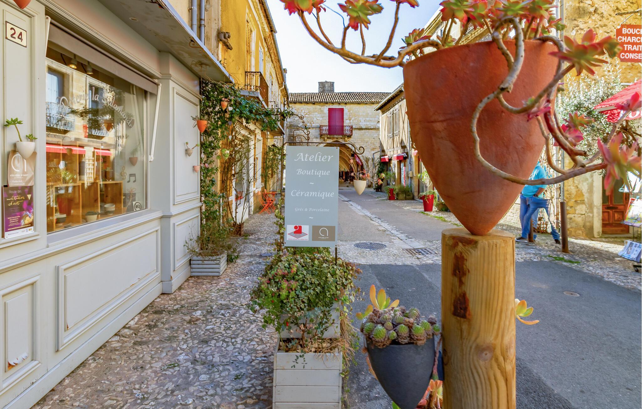 I Monpazier bor I kun få skridt fra det historiske centrum, hvor I kan udforske den gamle bydel med dens butikker, restauranter, barer og det livlige marked – alt tilgængeligt til fods. Området byder desuden på spændende udflugtsmuligheder: Udforsk de mange slotte, arkæologiske steder og museer i regionen, eller tag en tur til Parc du Bournat og Aquarium du Périgord i Le Bugue. For en aktiv oplevelse inviterer Dordogne-floden og dens landskab til uforglemmelige kanoture.