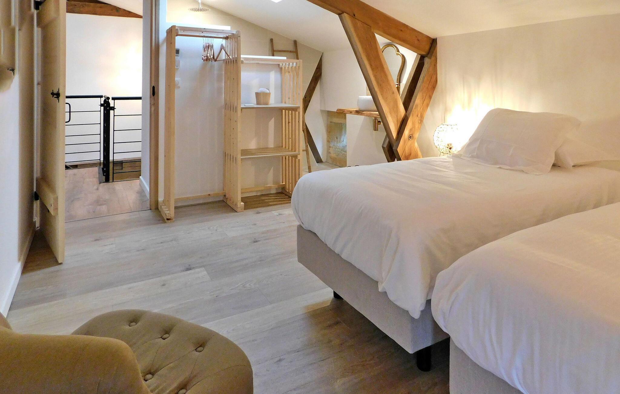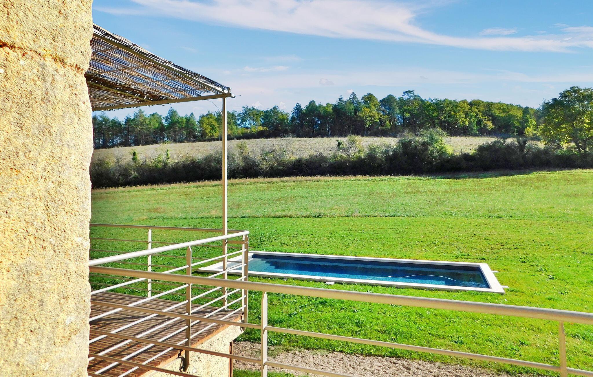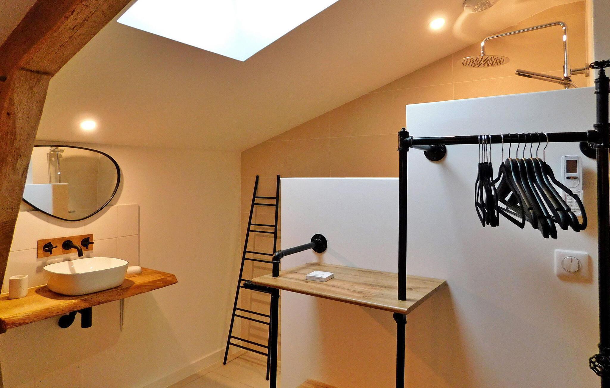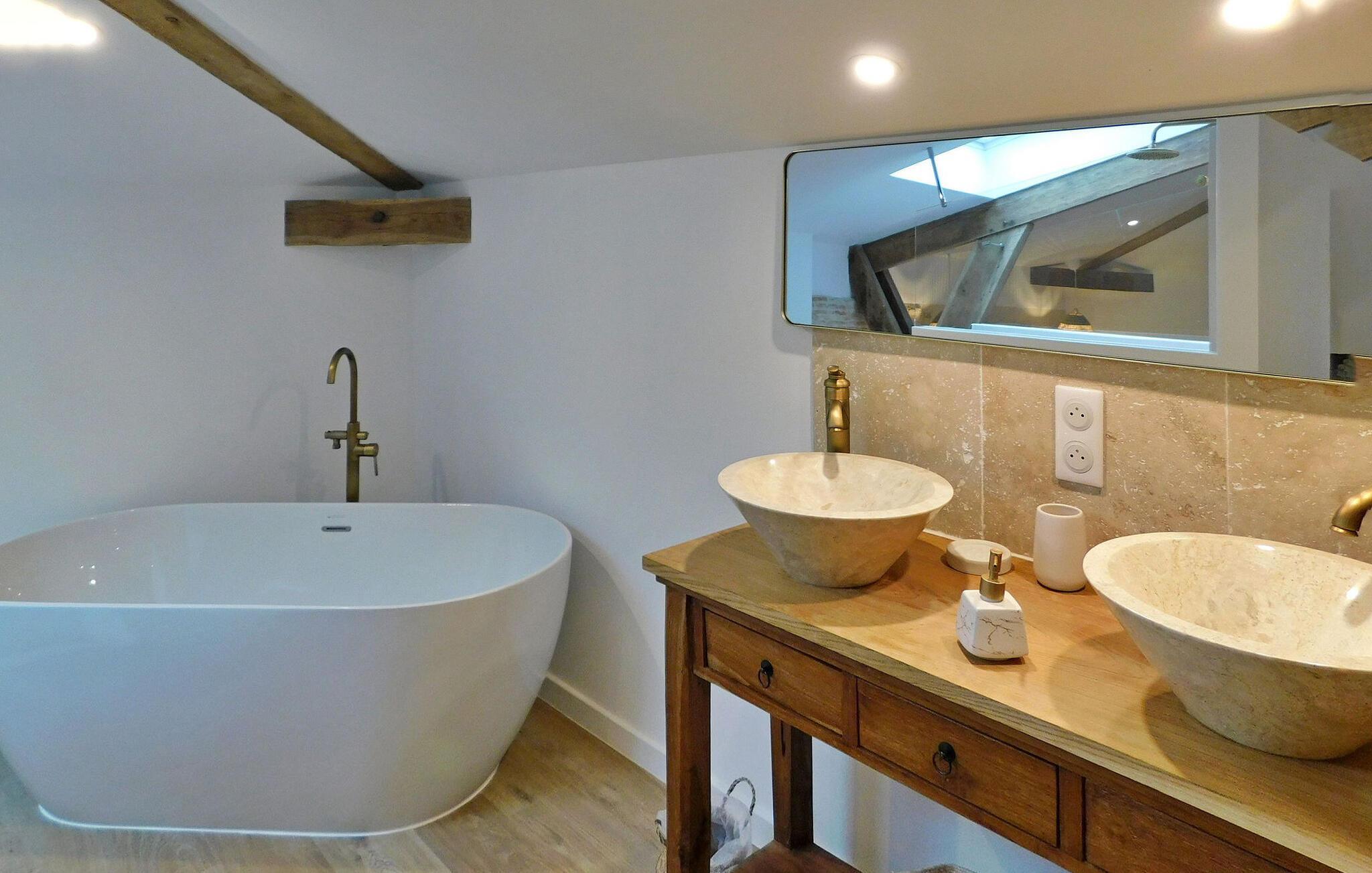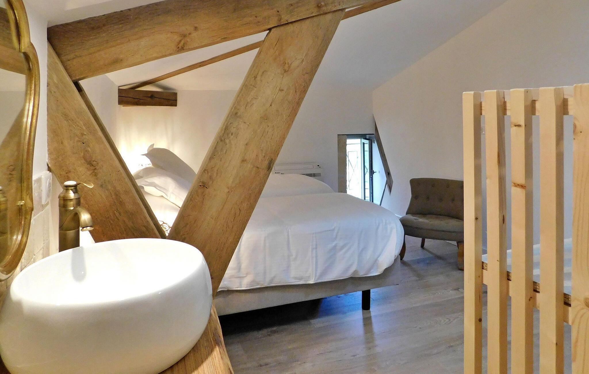 Denne nyligt restaurerede tidligere mølle i hjertet af naturen i Dordogne udstråler charmen fra Périgord med bevarede funktioner som synlige bjælker, en stenpejs og vægge. Stueetagen har en åben opholdsstue med opholdsområde, spiseplads, køkken og et toilet med vaskefaciliteter. Første sal byder på soveværelser med aircondition, hver med ensuite faciliteter. Udenfor er der en swimmingpool, terrasse med siddepladser og en stentrappe for adgang til huset. Bemærk venligst: ejendommen deler jorden med en anden feriebolig, også udstyret med en privat pool, som ligger ca. 10 m væk. Privatlivets fred mellem de to lejemål bevares dog, da de er placeret på en måde, der sikrer diskretion, med separat parkering og adgang for hver. Alle butikker omkring 2,5 km væk i den middelalderlige landsby Monpazier.