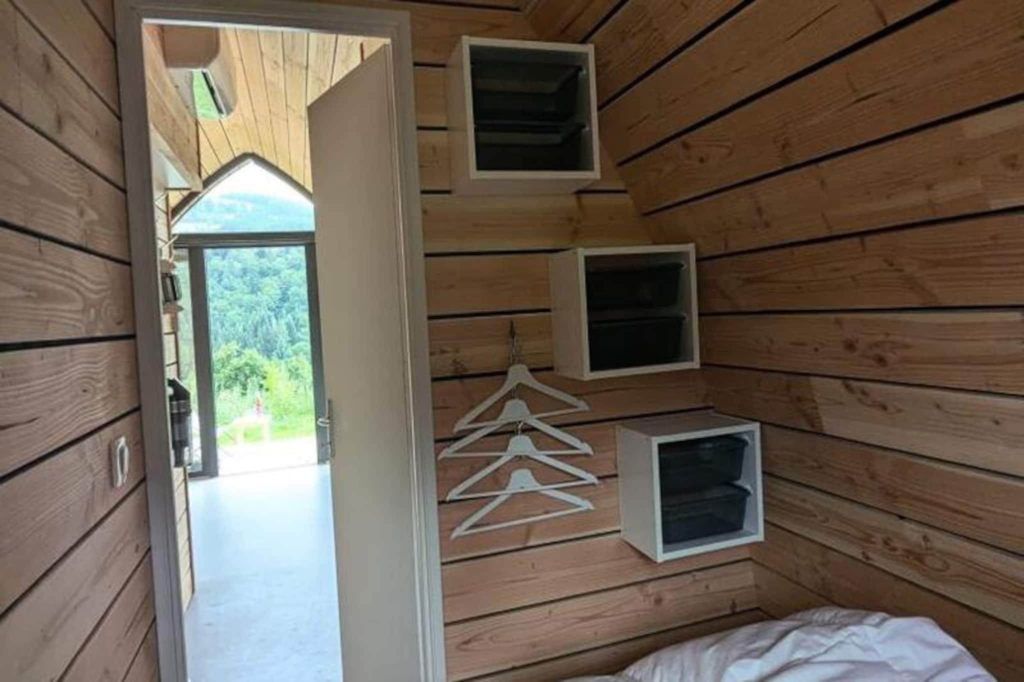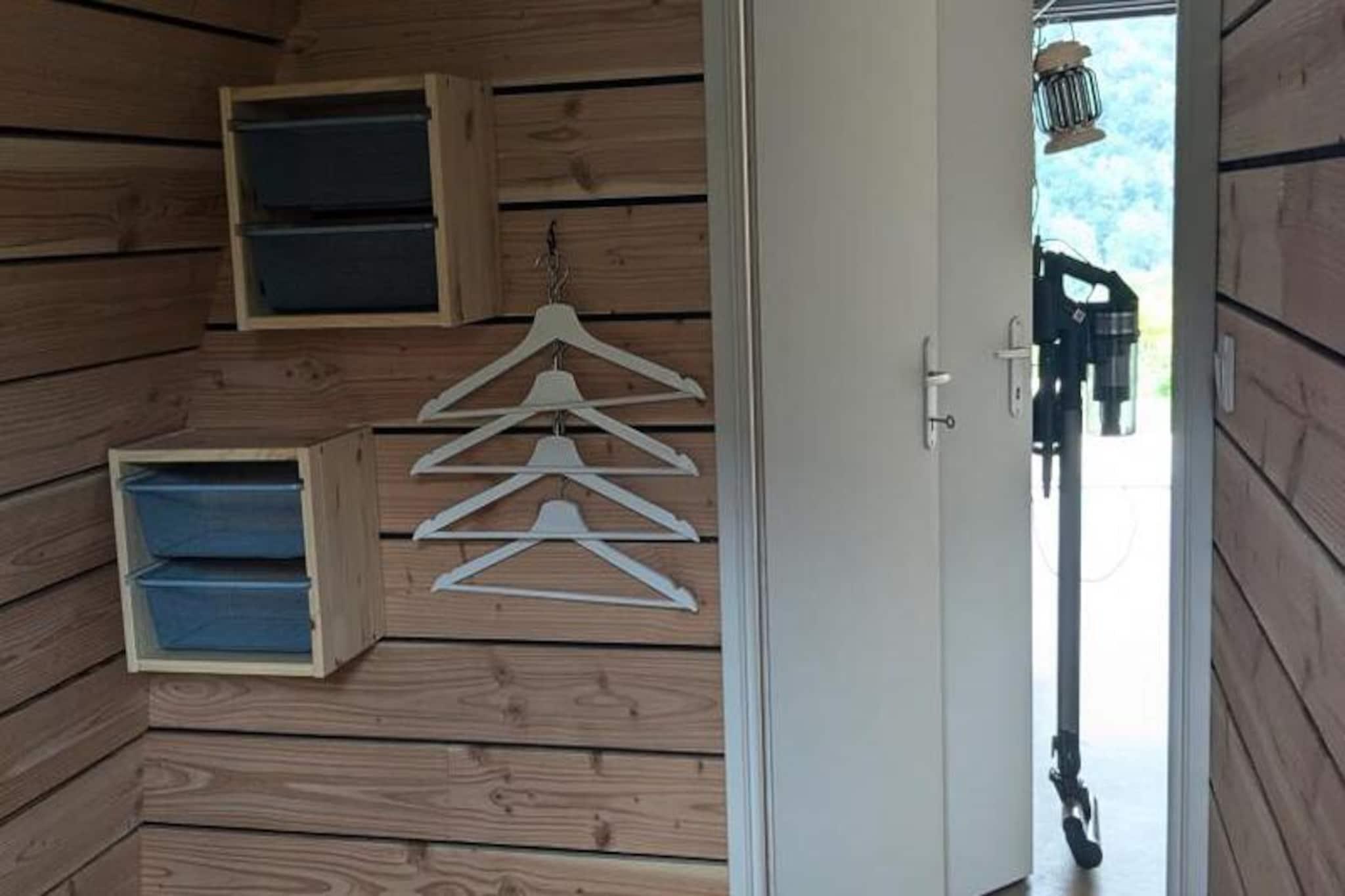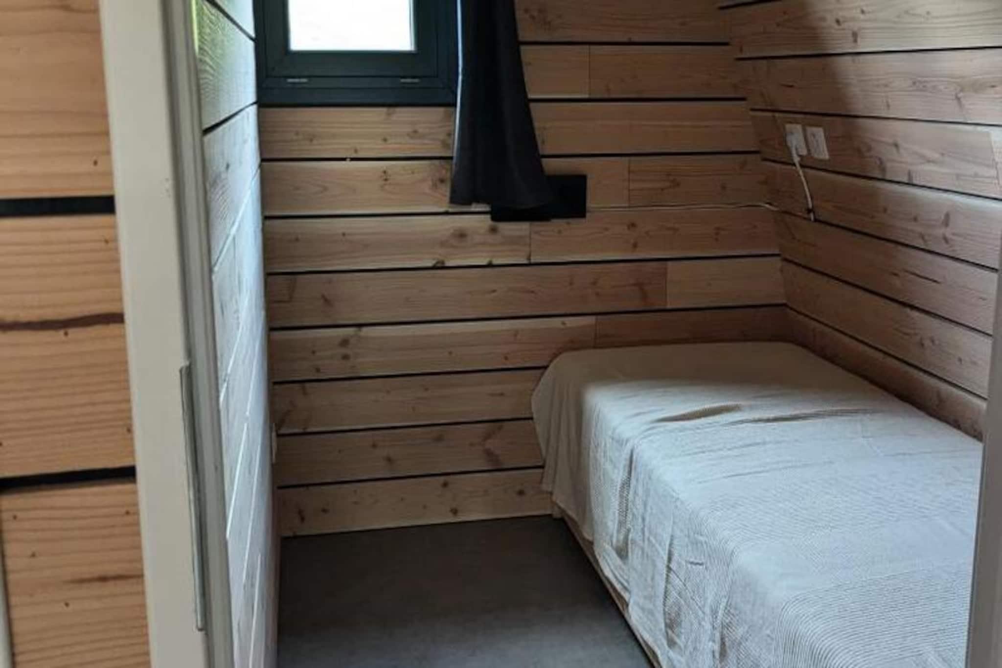 Gemt midt i det fredfyldte landskab i Sydfrankrig tilbyder denne charmerende træhytte en rolig oase for dem, der søger fred og komfort. Omgivet af frodigt grønt og badet i naturligt lys, inviterer hver Pigne dig til at slappe af og genoprette forbindelsen til naturen. Uanset om du nipper til kaffe på de udendørs liggestole eller nyder en stille aften i den hyggelige opholdsstue, lover dette tilflugtssted en forfriskende pause fra hverdagens travlhed. Indenfor kan hytten prale af en gennemtænkt planløsning på 34 m². To indbydende soveværelser giver afslappende nætter, hvoraf det ene har en dobbeltseng og det andet to enkeltsenge. Det moderne badeværelse med bruser og håndvask sikrer bekvemmelighed, mens det separate toilet tilføjer ekstra privatliv. Opholdsstuen kombinerer funktionalitet og charme med et tekøkken udstyret med køleskab, induktionskogeplade, mikrobølgeovn og kaffemaskine. Et spisebord til fire og et opholdsområde med en to-personers sofa og tv-møbel fuldender interiøret og skaber et rum, hvor afslapning kommer naturligt. Gå udenfor for at finde liggestole og sofaborde, perfekte til at nyde solskinnet eller et måltid under åben himmel. Med sengelinned, håndklæder og slutrengøring inkluderet, samt gratis toiletartikler såsom kaffebønner, te og sæbe, er hver eneste detalje omhyggeligt overvejet for at sikre et problemfrit ophold. Privat parkering er tilgængelig, hvilket gør det nemt at udforske det omkringliggende område. Uanset om du planlægger en romantisk ferie eller en familieferie, tilbyder denne hytte den perfekte blanding af komfort og natur. Flygt til denne idylliske oase og skab minder, der vil vare hele livet.