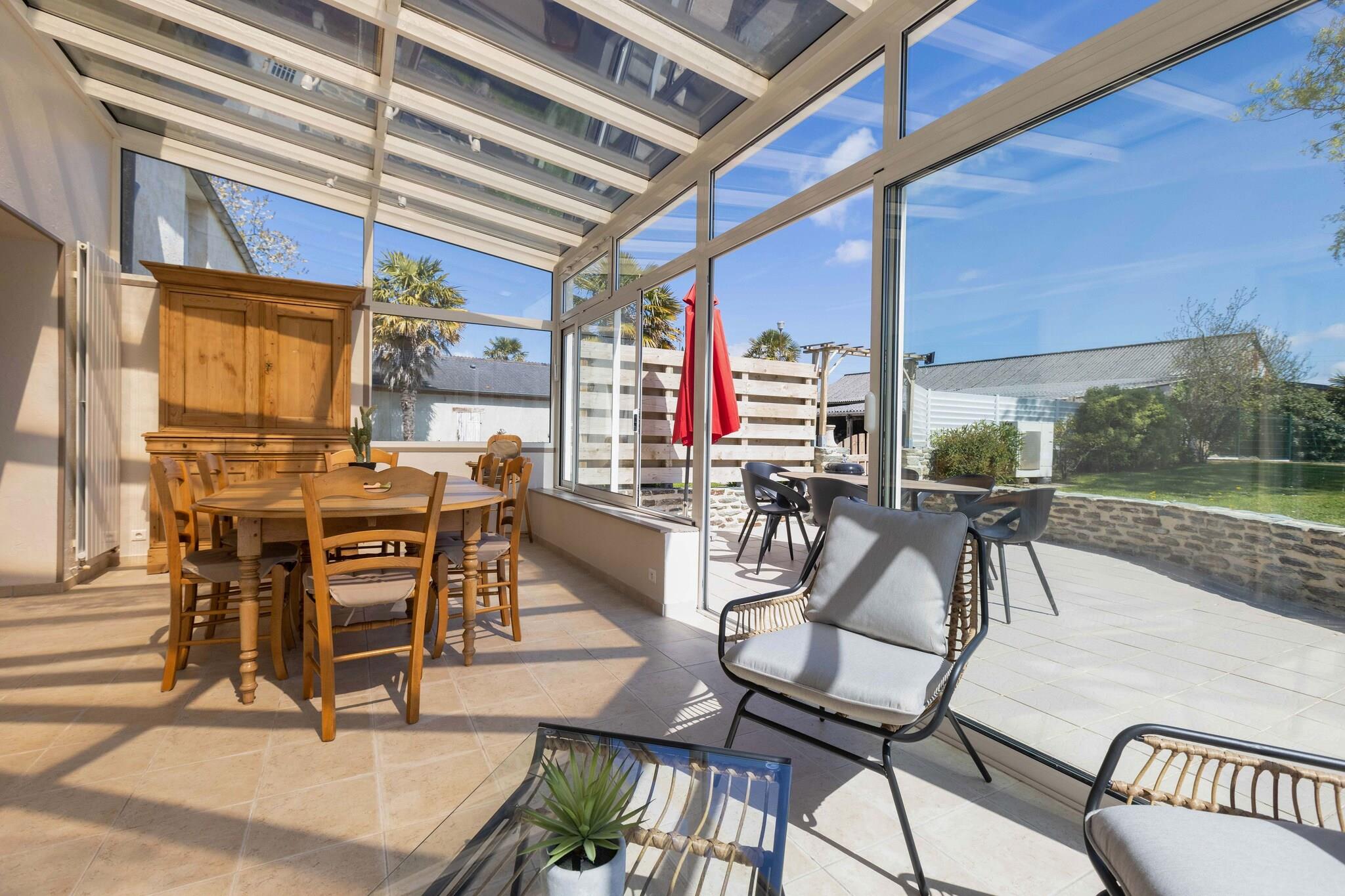 Stueetage: (Køkken(komfur, emhætte, kaffemaskine, ovn, mikrobølgeovn, køle-fryseskab, barnestol), stue / spisestue(dobbeltsovesofa, Fjernsyn(fladskærm, Smart-TV), spisebord, pejs, sofahjørne, trådløst musiksystem), veranda(spisebord), toilet) På 1. etage: (soveværelse(dobbeltseng), soveværelse(dobbeltseng), soveværelse(dobbeltfeltseng, tremmeseng), badeværelse(badekar, bruser, håndvask, håndvask), toilet) terrasse, have, grill, parkering, petanquebane, luft til luft-varmepumpe