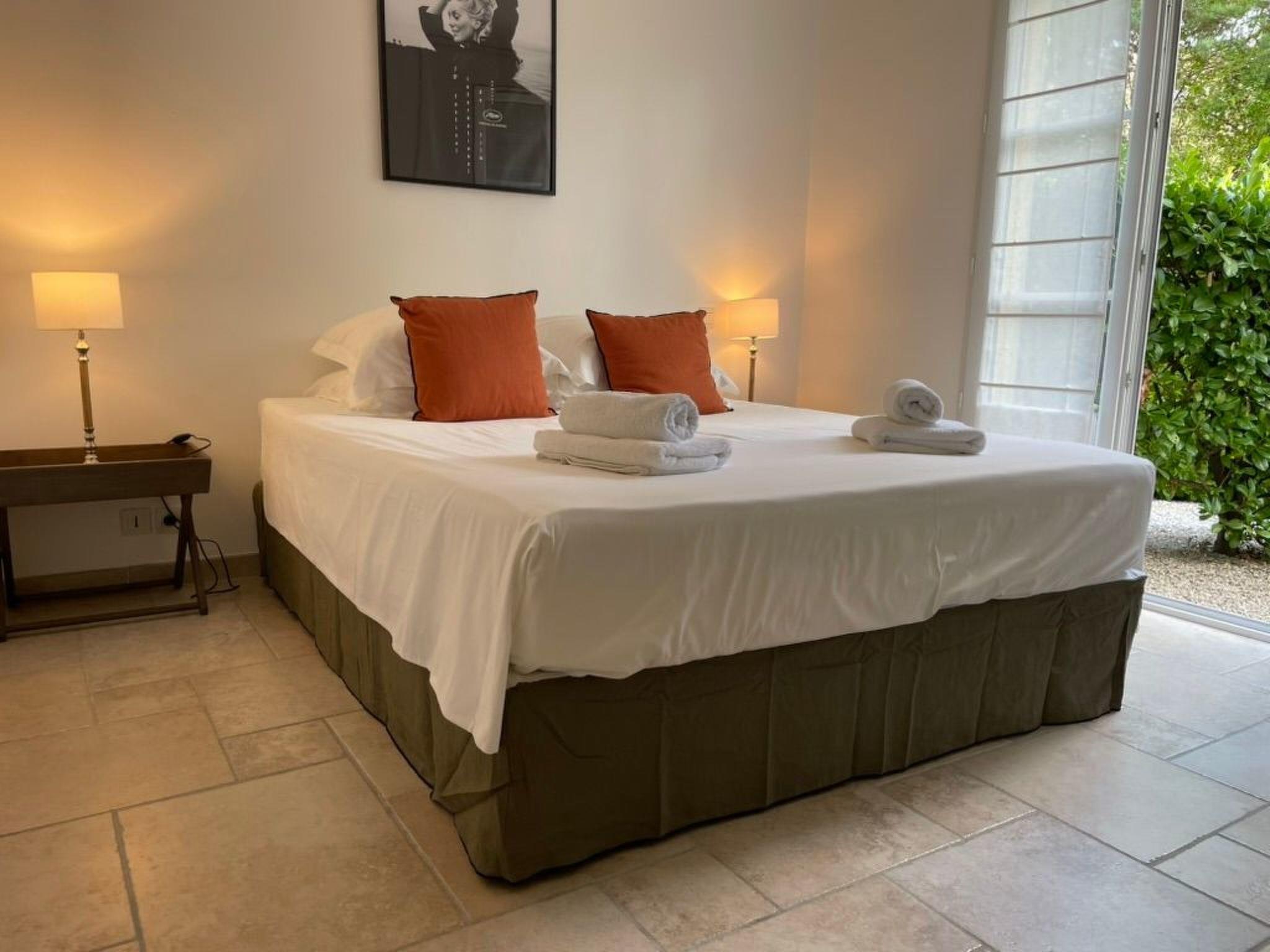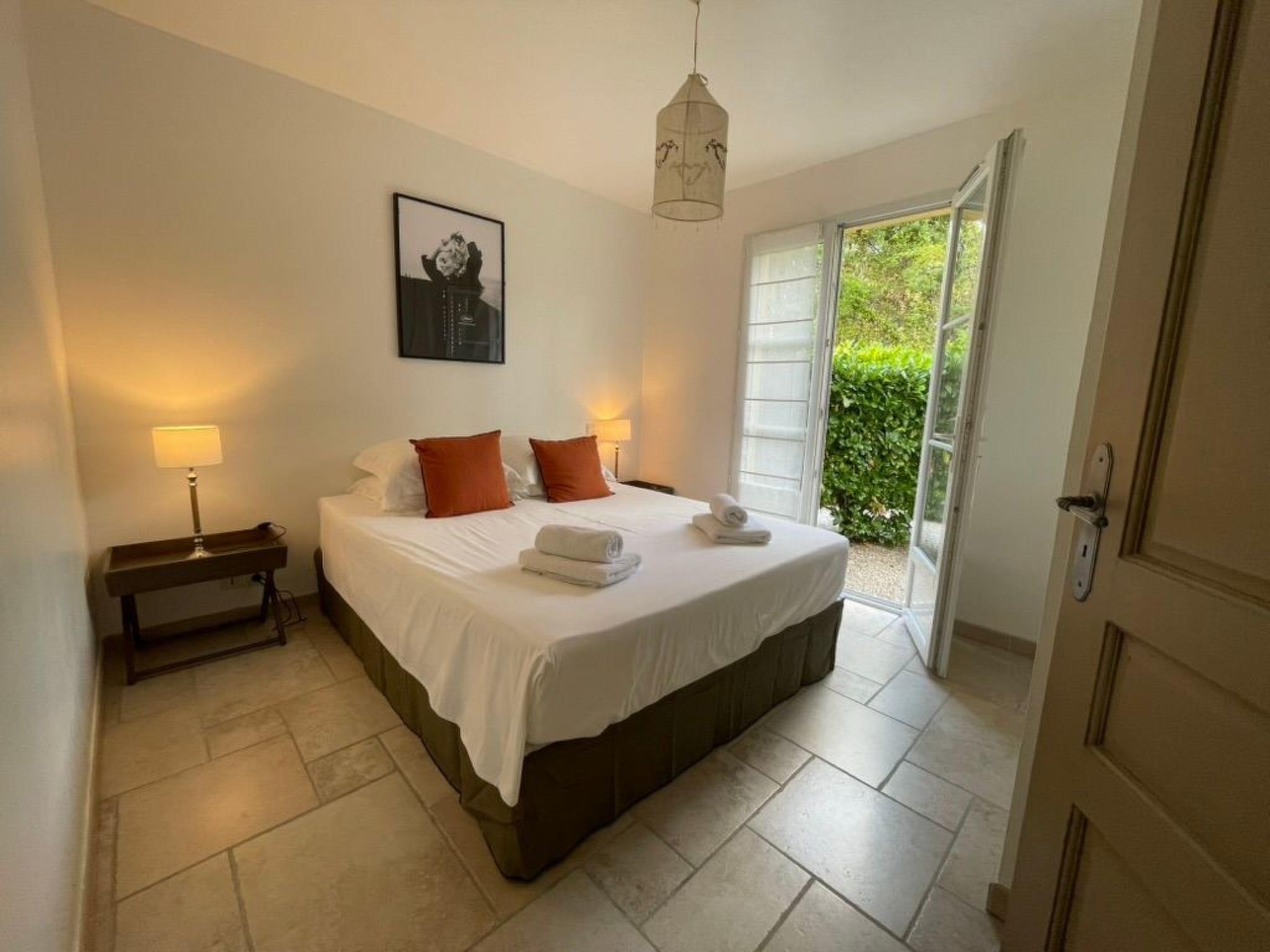 One bedroom has two single beds (90x190) and the other a double bed (160x200). The convertible sofa sleeps 2 (160*200) The master bedroom opens onto the garden through a French window.