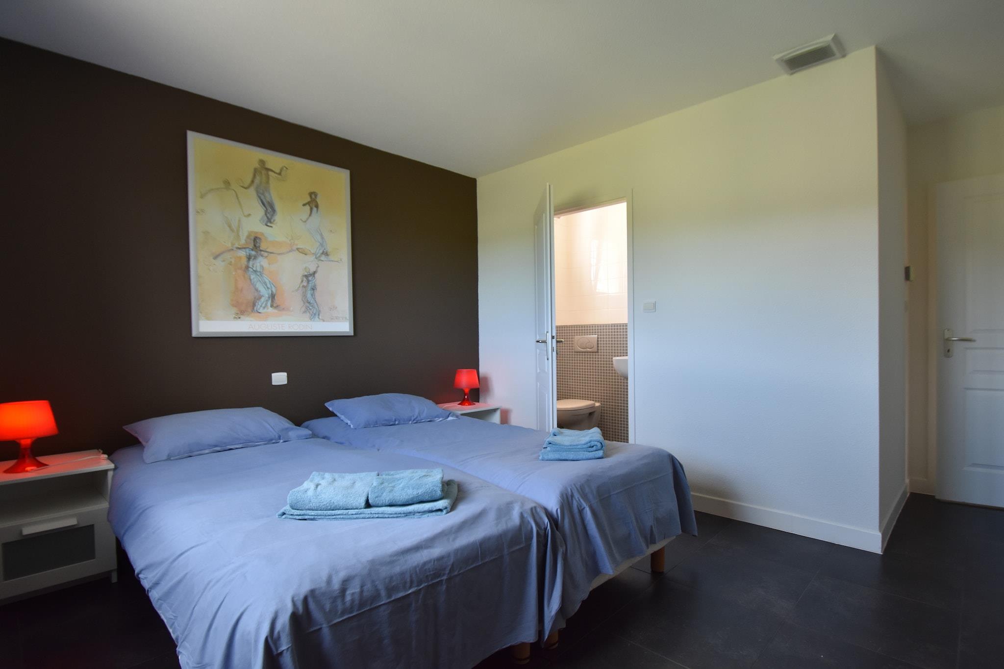 Gemt væk i hjertet af Montbrun-des-Corbières, denne 4-værelses villa blander moderne komfort med Languedocs afslappede charme. Designet til op til 8 gæster, det er perfekt til familier, venner og endda firbenede ledsagere. Nyd interiøret med aircondition, et fuldt udstyret køkken og et udvalg af solrige eller skyggefulde terrasser. Udenfor byder den anlagte have på en funklende privat pool, en boulebane og plads til udendørs spisning under stjernerne. Villaens beliggenhed inviterer til udforskning - til fods, på cykel eller med din hvalp på slæb. Gå en tur i de naturskønne landsbygader, vandre gennem nærliggende vinmarker, eller nyd kæledyrsvenlige stier rundt i naturparken Narbonnaise en Méditerranée (40 km). For vandelskere, tag til søstranden ved Homps (12 km) eller prøv vandsport i Puichéric (10 km). Sejlads langs Canal du Midi er et must - og kæledyr er velkomne ombord på mange lejemål! Inden for en kort køretur kan du opdage Homps' restauranter ved vandet (11 km), der serverer friske middelhavsfisk og skaldyr, eller forkæl dig selv med vinsmagning på nærliggende domæner. Hent frisk brød fra landsbyens bageri (1 km) og tilbered en grillfest tilbage ved villaen. Med Carcassonne kun 29 km væk, kan du nemt kombinere din afslapning ved poolen med slotbesøg, markedsvandring og livlig cafékultur.