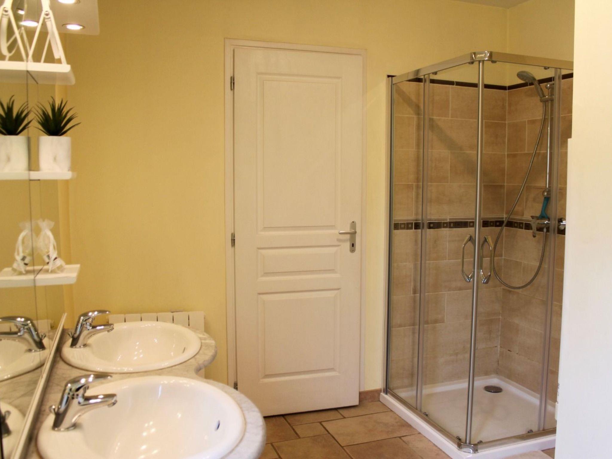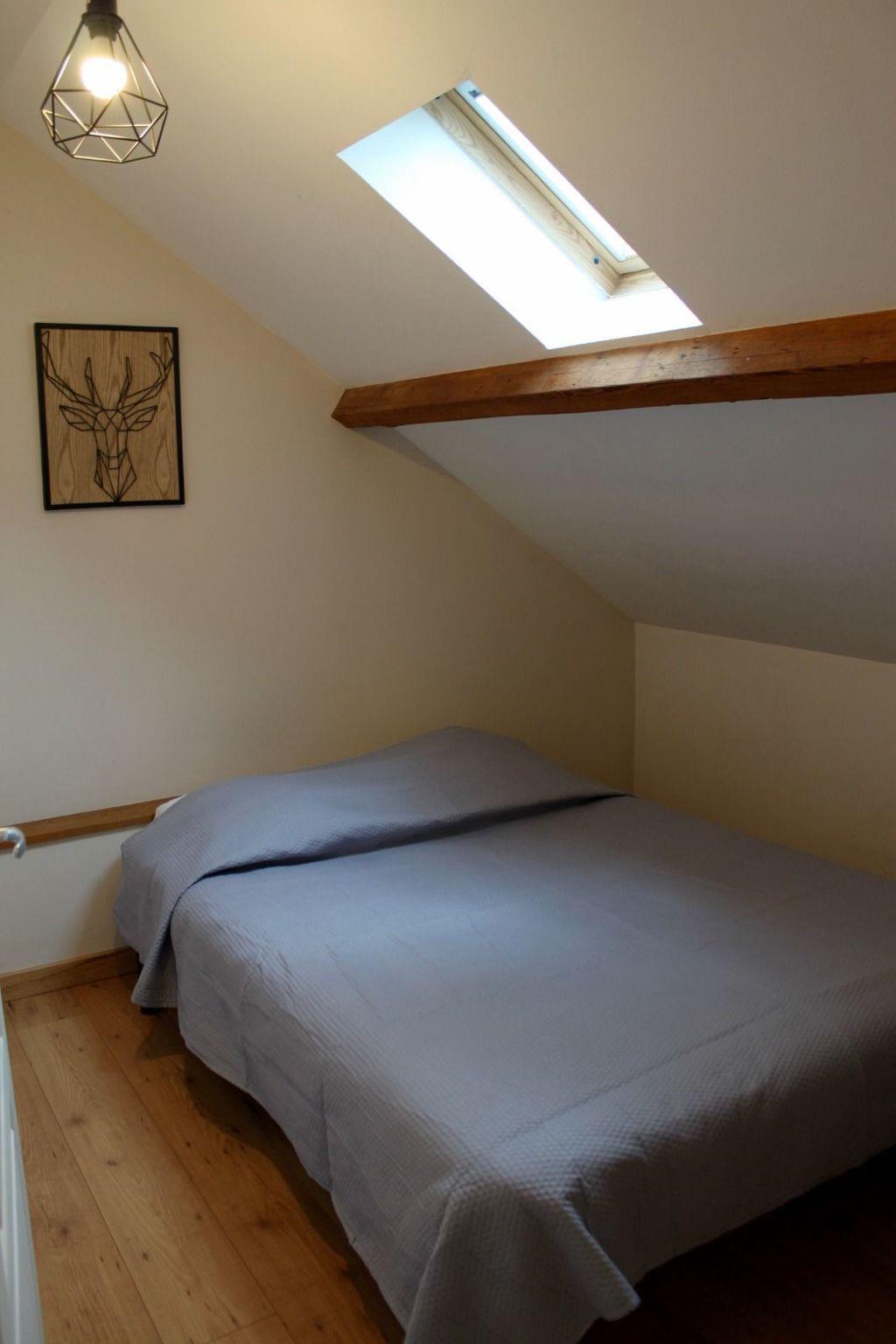 The gîte comprises a large living room of 36 m² with a corner sofa, a television (80 cm LCD screen) with Wifi and a kitchen area with hob, electric oven, microwave, dishwasher, fridge/freezer, coffee machine/toaster, raclette and fondue set and numerous kitchen utensils. The gîte is heated with electric fluid inertia radiators.Upstairs are three bedrooms, each with a 140 cm double bed, preceded by a small mezzanine with a double sofa bed.