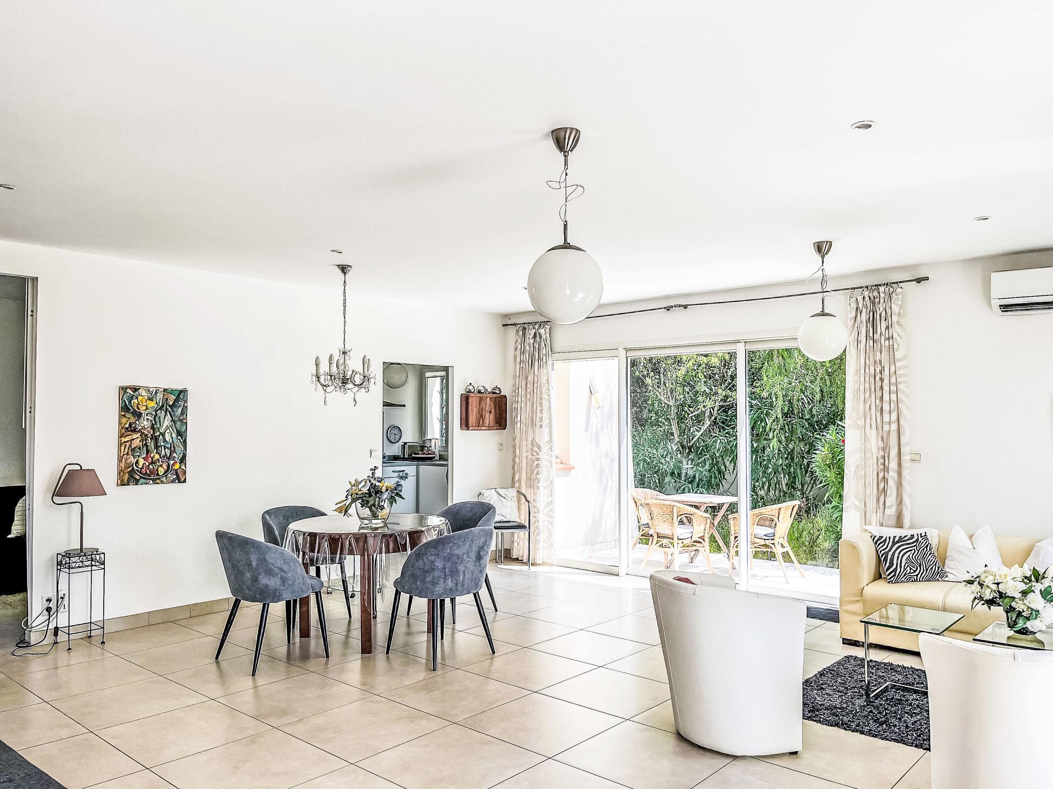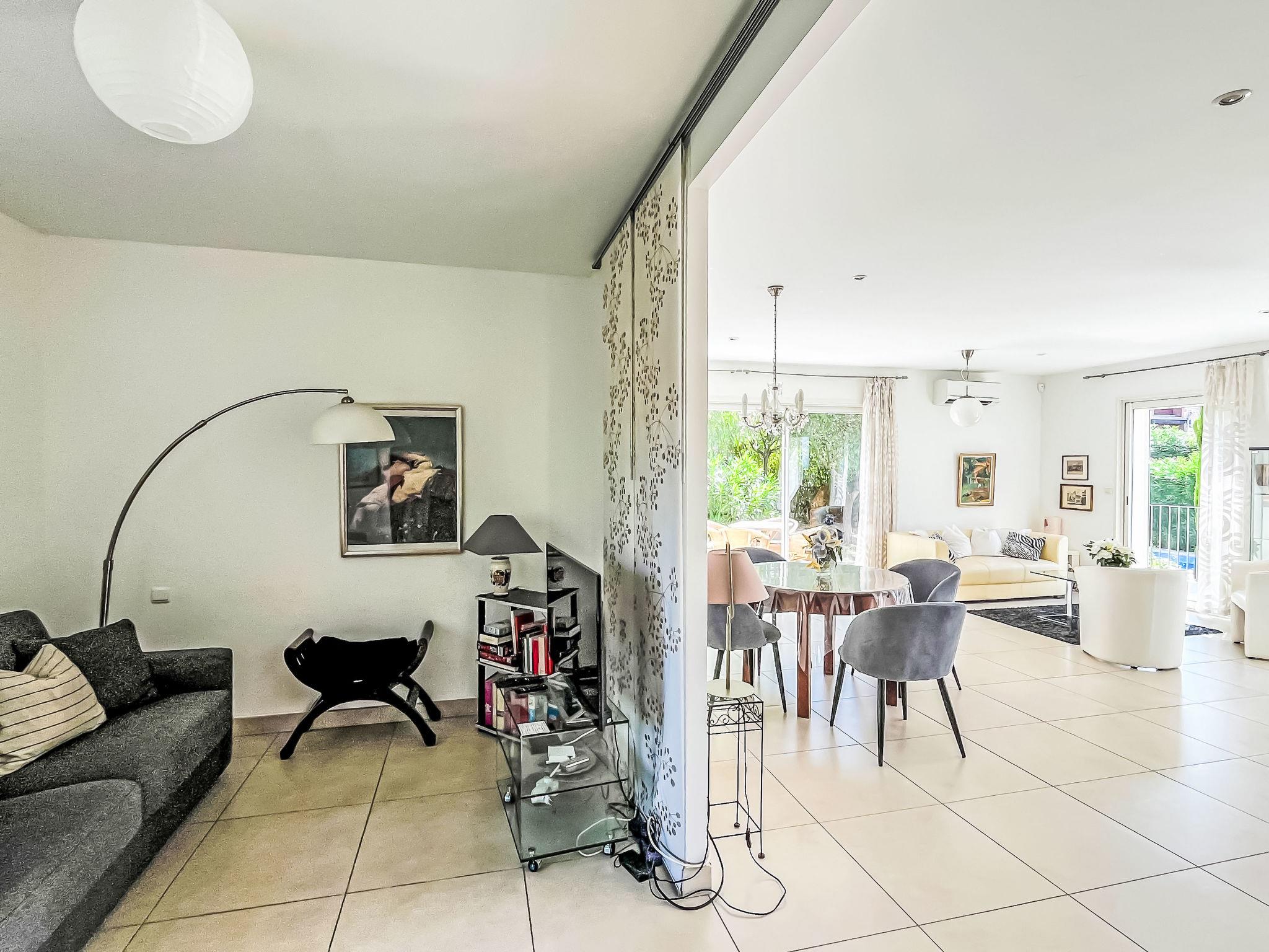 "Villa Montes", 3-room house 105 m2 on 2 levels. Bright, comfortable and tasteful furnishings: entrance hall. Upper floor: living/dining room with dining table and air conditioning. Exit to the terrace. Open living/sleeping room with curtain with 1 double sofabed (1 x 140 cm, length 200 cm), TV and satellite TV (flat screen). 1 room with 1 double bed (1 x 180 cm, length 200 cm). 1 room with 1 double bed (1 x 160 cm, length 200 cm). Exit to the terrace. Open kitchen (oven, dishwasher, 3 induction hot plates, toaster, kettle, microwave, freezer, electric coffee machine). Bath/WC, shower/WC. Electric heating. Terrace 45 m2. Terrace furniture, deck chairs (4), sitting area. Partial view of the mountains. Facilities: washing machine, dryer. Internet (WiFi, free). Parking (fenced). Please note: smoke alarm.