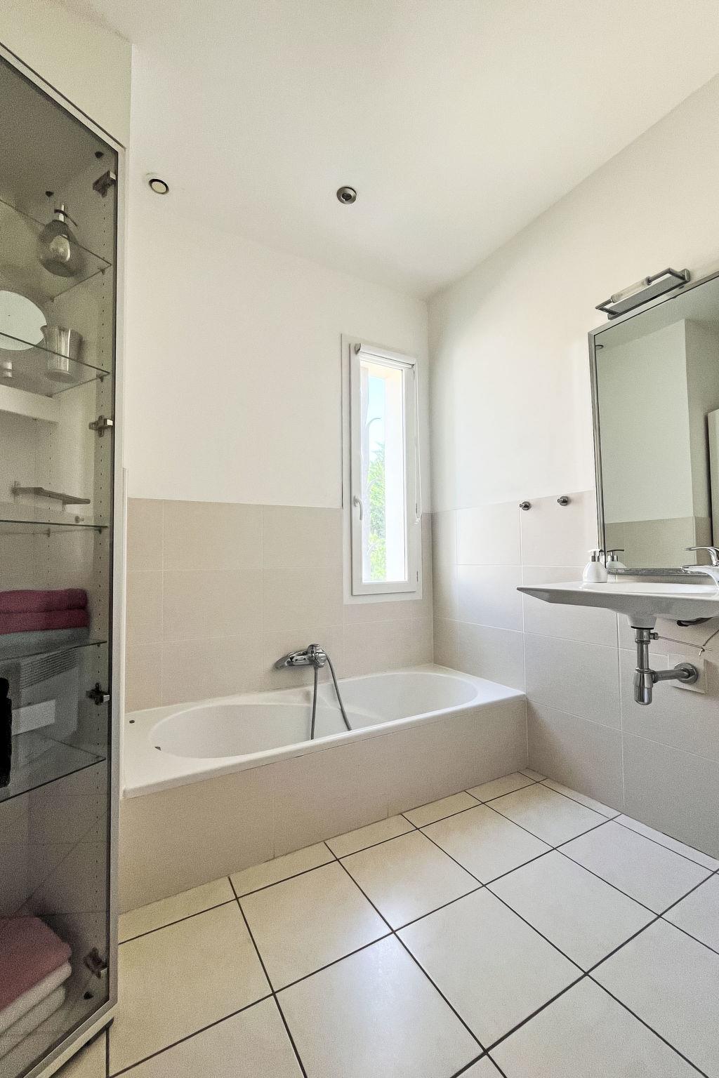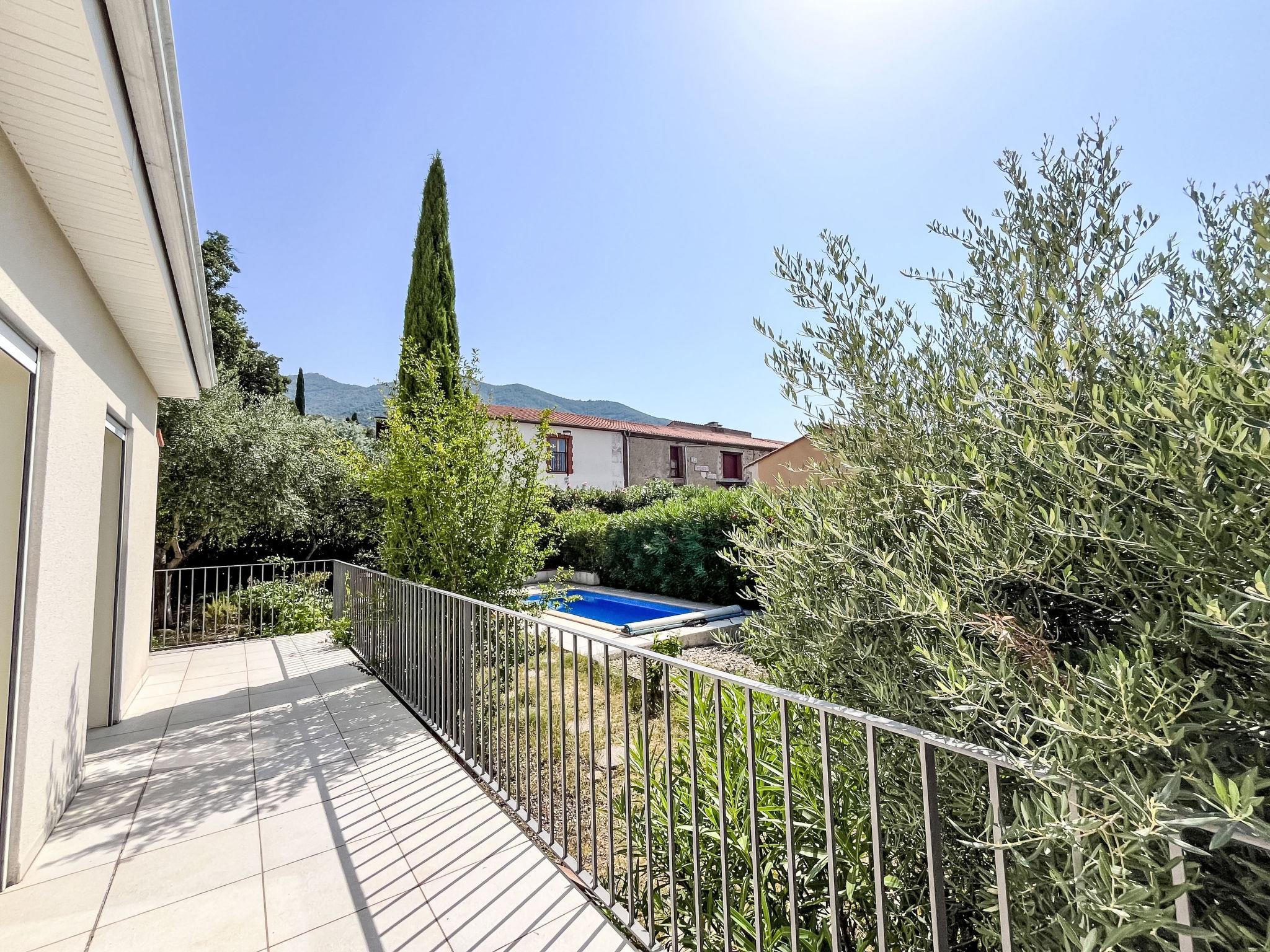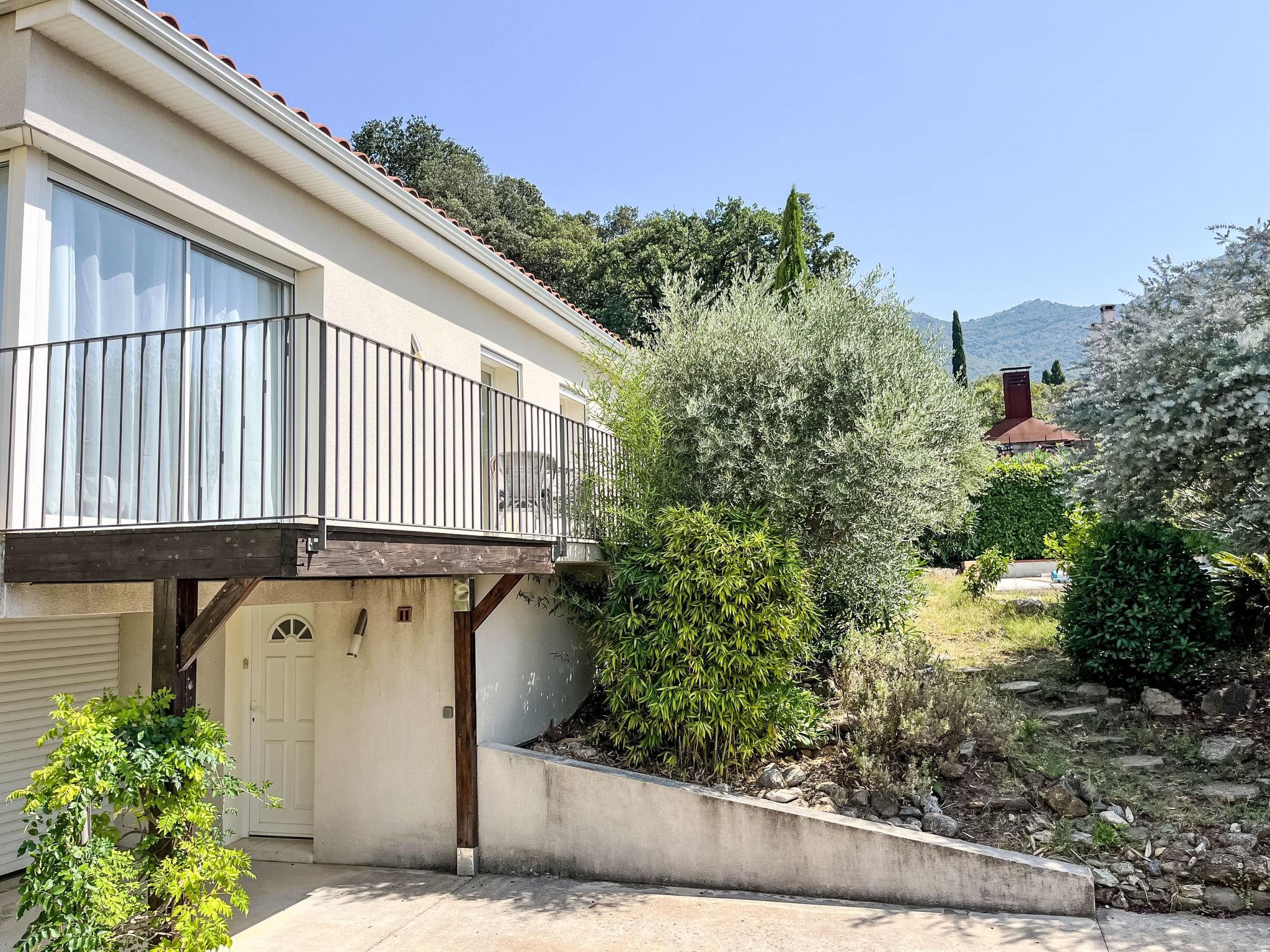 Montesquieu 16 km from Argelès sur mer: Cosy, comfortable single-family house "Villa Montes", 2 storeys. 200 m from the centre of Montesquieu-des-Albères, 16 km from the centre of Argelès-sur-Mer, 27 km from the centre of Perpignan, in the residential district, 16 km from the sea, 16 km from the beach, in a cul-de-sac. Private: garden 630 m2 (fenced) with wildlife garden and trees, swimming pool angular, secured (6 x 3 m, depth 140 - 165 cm, seasonal availability: 01.May. - 15.Oct.) with internal staircase and shutter cover. Parking on the premises. Shop 500 m, supermarket 2 km, bus stop 300 m, railway station 14 km, sandy beach "Plage du Racou" 20 km. Nearby attractions: Collioure 22 km, Côte Vermeille 27 km.