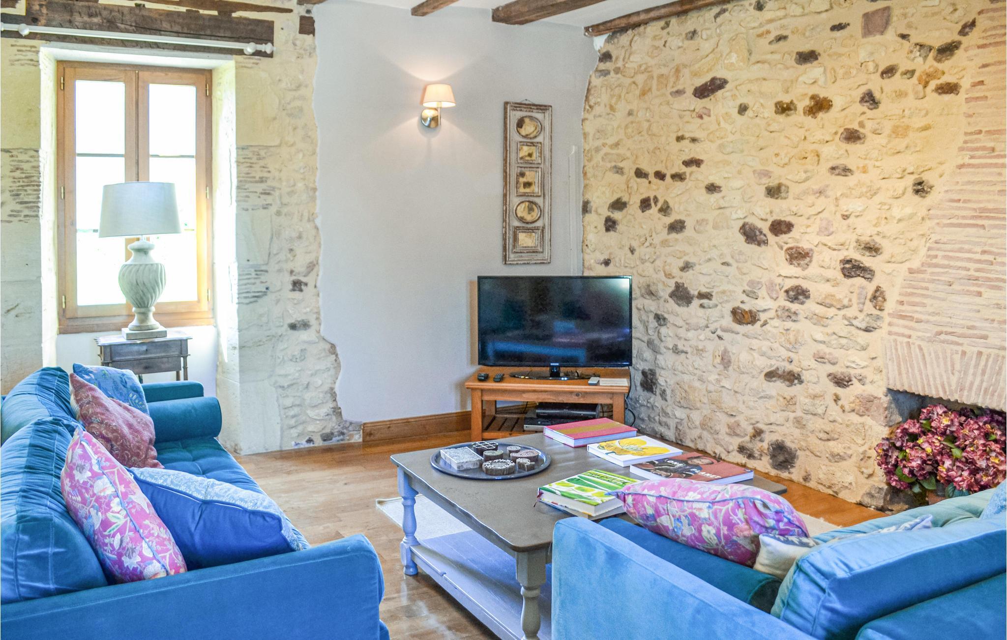 Dette charmerende naturstenshus fra 1800 med synlige bjælker og rå mure i flere rum er det perfekte domicil til jeres ferie i Frankrig.