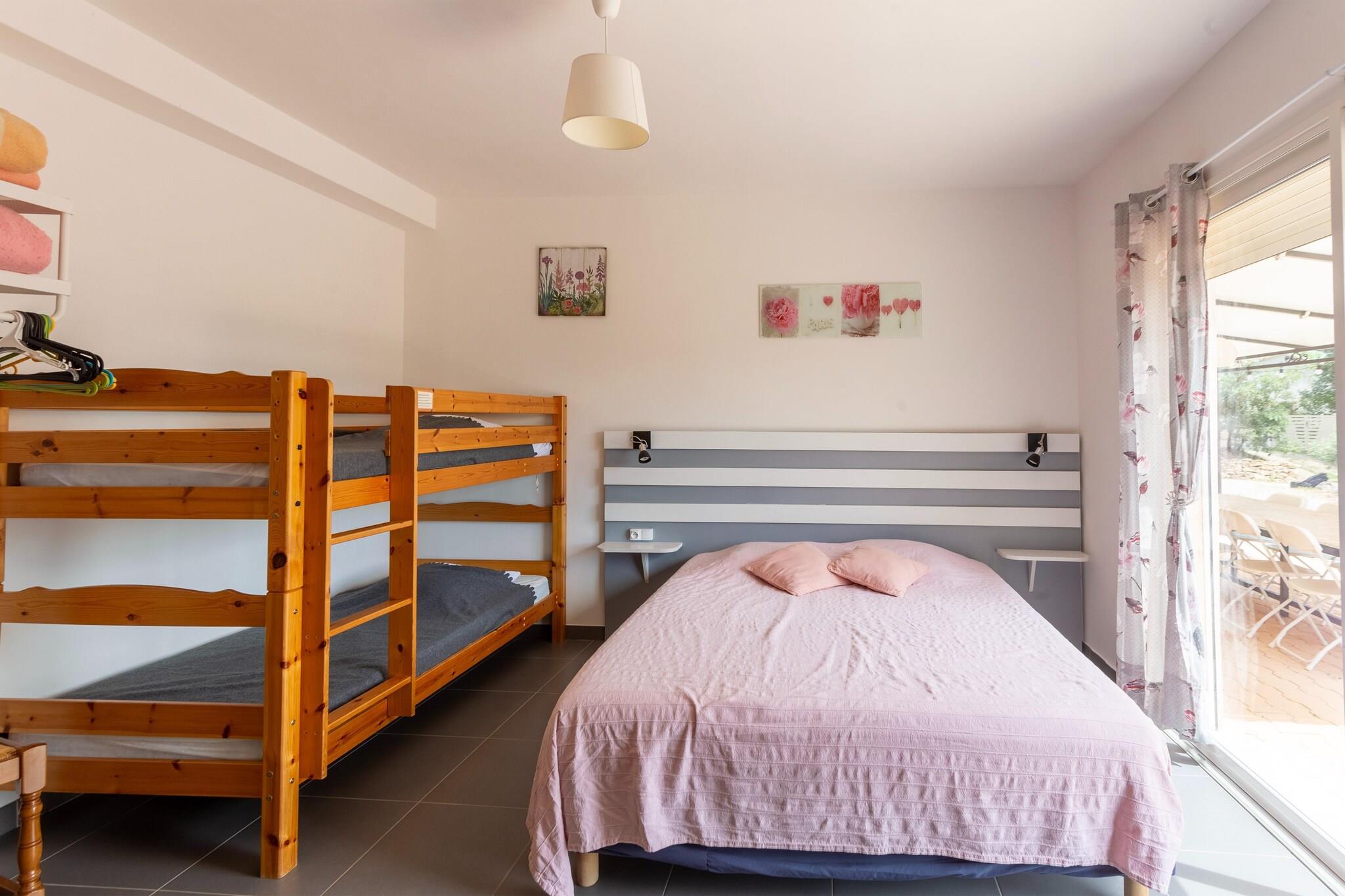 Stueetage: (åbent køkken(elkedel, brødrister, komfur(Komfur med fire kogeplader, glaskeramisk), emhætte, kaffemaskine(kopper, kaffetragt), ovn, mikrobølgeovn, opvaskemaskine , køle-fryseskab), stue / spisestue(dobbeltsovesofa(140 x 190 cm), Fjernsyn, spisebord, DVD-afspiller, klimaanlæg), soveværelse(dobbeltseng(160 x 200 cm)), soveværelse(dobbeltseng(140 x 200 cm)), Soveværelse med badeværelse(dobbeltseng(160 x 200 cm), køjeseng, bruser, håndvask, toilet), badeværelse(badekar, bruser, 2x håndvask), toilet, vaskerum (vaskemaskine, legeredskaber, strygebræt, strygejern, hyggespil), havedøre) terrasse, terrasse(overdækket), have(privat, indhegnet, 900 m2), havemøbler, solstole, grill(gas), swimmingpool(privat, 4 x 4 m., opened from May upto and including Sep), petanquebane, legeredskaber, hyggespil