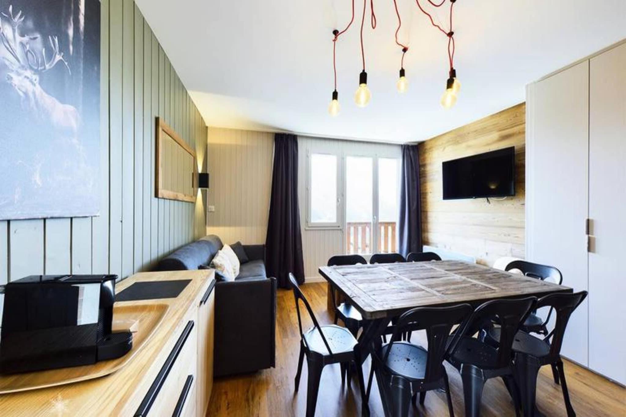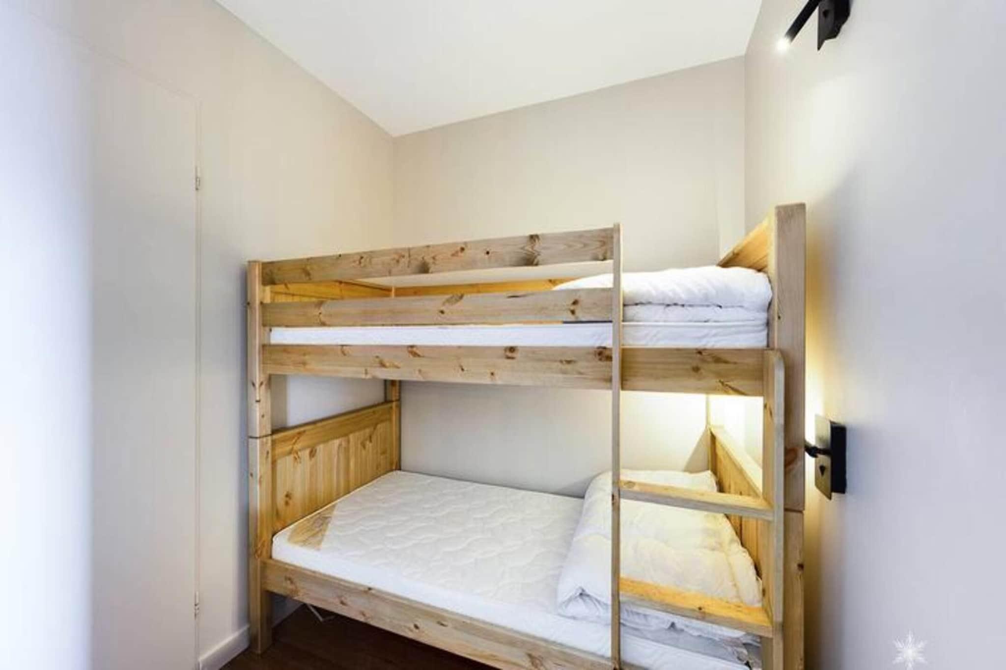 Denne ski-in/ski-out lejlighed, beliggende i Chavonnes Hautes-distriktet, tilbyder et behageligt ophold for op til 6-8 personer, med maksimalt 4 voksne. Lejligheden på 46 m² har et veldesignet opholdsrum, herunder et soveværelse med en 160x200 cm dobbeltseng, et kabineområde med to køjesenge og en sovesofa i stuen. Lejligheden er fri for kæledyr og har væsentlige faciliteter såsom vaskemaskine, tv og hårtørrer. Lejligheden er beliggende på første sal i en gennemrenoveret bygning, med to altaner mod syd og vest, der byder på masser af naturligt lys. Ejendommen er bekvemt beliggende kun 150 meter fra dagplejen og 250 meter fra lokale butikker. Gæsterne har let adgang til pisterne, hvilket gør det ideelt for skientusiaster. Kvarteret byder på en række attraktioner, herunder nærliggende caféer, restauranter og butikker for nemheds skyld. Uanset om du skal ud på pisterne eller udforske byen, er beliggenheden perfekt til både vintersport og lokale oplevelser. Lejligheden har et fuldt udstyret køkken med induktionskomfur, ovn, mikroovn, opvaskemaskine og fryser, perfekt til selvforplejning. Badeværelset og separat brusebad med toilet giver ekstra bekvemmelighed. Derudover kan gæsterne nyde kollektiv Wi-Fi i hele boligen og drage fordel af en kælderparkeringsplads for nem adgang til ejendommen.