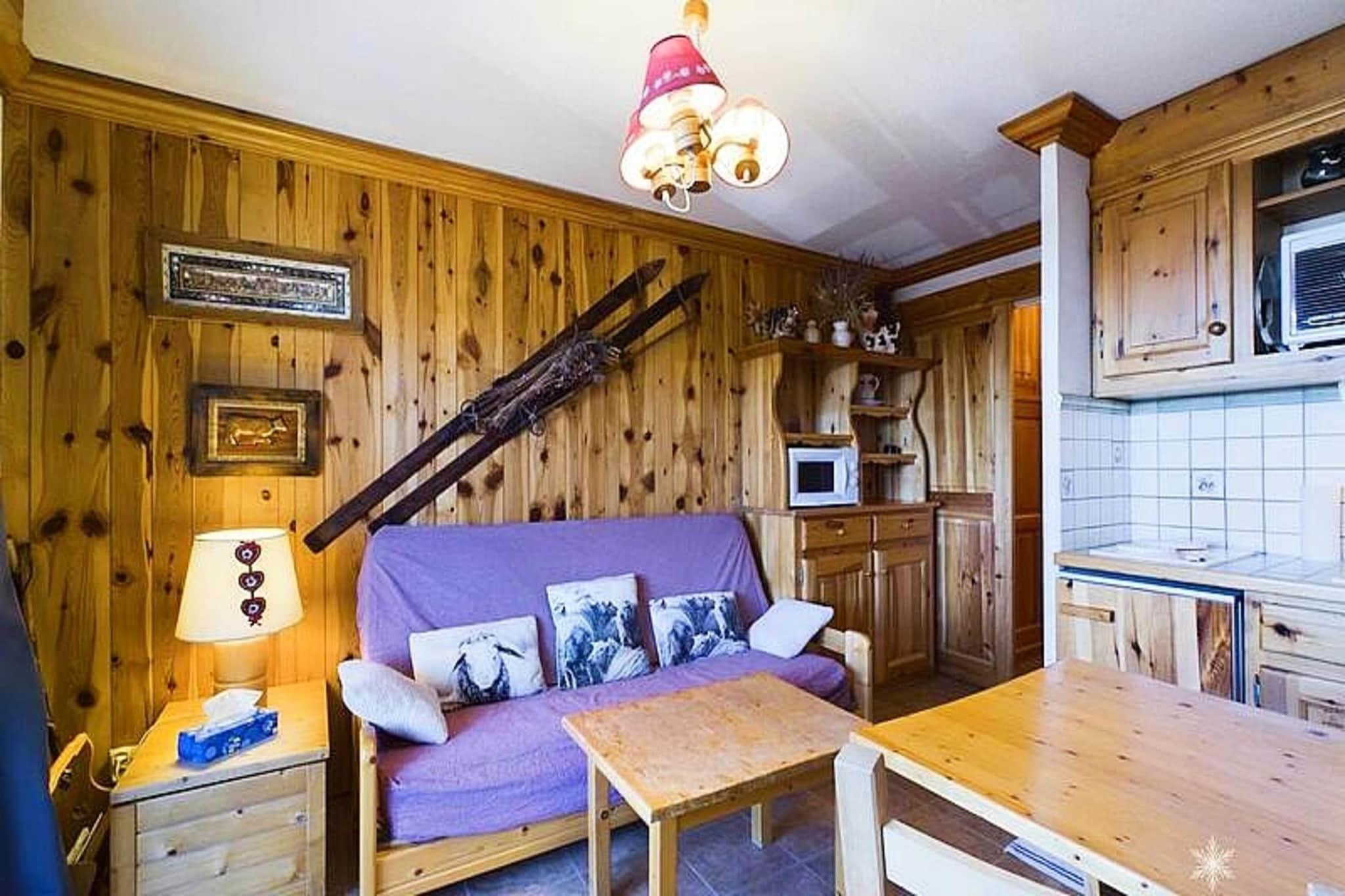 **Les Hauts de la Rosière-boligen** er ideelt placeret ved foden af ??pisterne og kun 50 meter fra lokale butikker, der tilbyder nem adgang til både pisterne og faciliteterne. Boligen er udstyret med en elevator, der giver direkte adgang til pisterne fra niveau 6, hvilket gør den perfekt til en skiferie. HTR208 studiehytten har plads til 4 til 5 personer og har en sydvestvendt balkon med en fantastisk udsigt over dalen. Denne studiohytte på 27 m² omfatter et bjerghjørne med en enkelt sammenklappelig seng, et brusebad og et separat toilet. I stuen er der en sovesofa til to personer, mens tekøkkenet er udstyret med 2 elektriske kogeplader, en grill og et køleskab. Kabinen har også en dobbeltseng i et separat soveområde, hvilket giver god plads til gæsterne. Der er fladskærms-tv til din underholdning, og lejligheden har et skiskab til opbevaring af udstyr. Ud over disse funktioner tilbyder boligen en kælderparkeringsplads, hvilket gør det bekvemt for dem, der rejser i bil. Bemærk venligst, at slutrengøring, lagner og håndklæder ikke er inkluderet i lejeprisen og er tilgængelige mod et tillægsgebyr.
