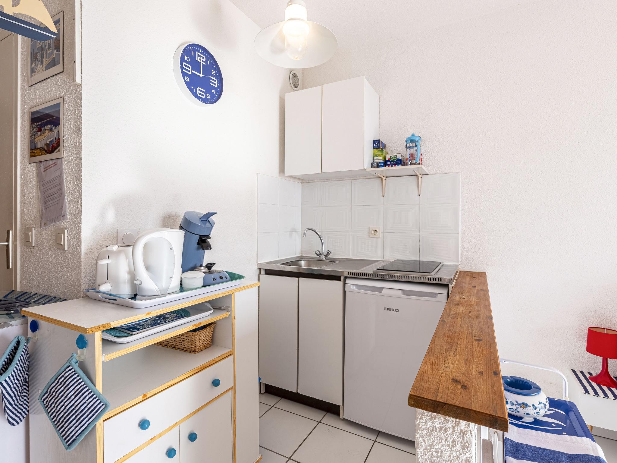 1-room studio 30 m2 on 1st floor. Beautiful furnishings: Studio with 1 double sofabed (140 cm, length 190 cm), dining table and TV (flat screen). Exit to the balcony. Kitchenette (2 ceramic glass hob hotplates, toaster, kettle, microwave, electric coffee machine). Shower/WC. Electric heating, air-conditioning. Balcony. Balcony furniture, sitting area. Beautiful panoramic view of the sea. Facilities: hair dryer. Internet (WiFi, free). Parking. Please note: smoke alarm. Offer by a private individual according to Art. 155, IV of CGI.