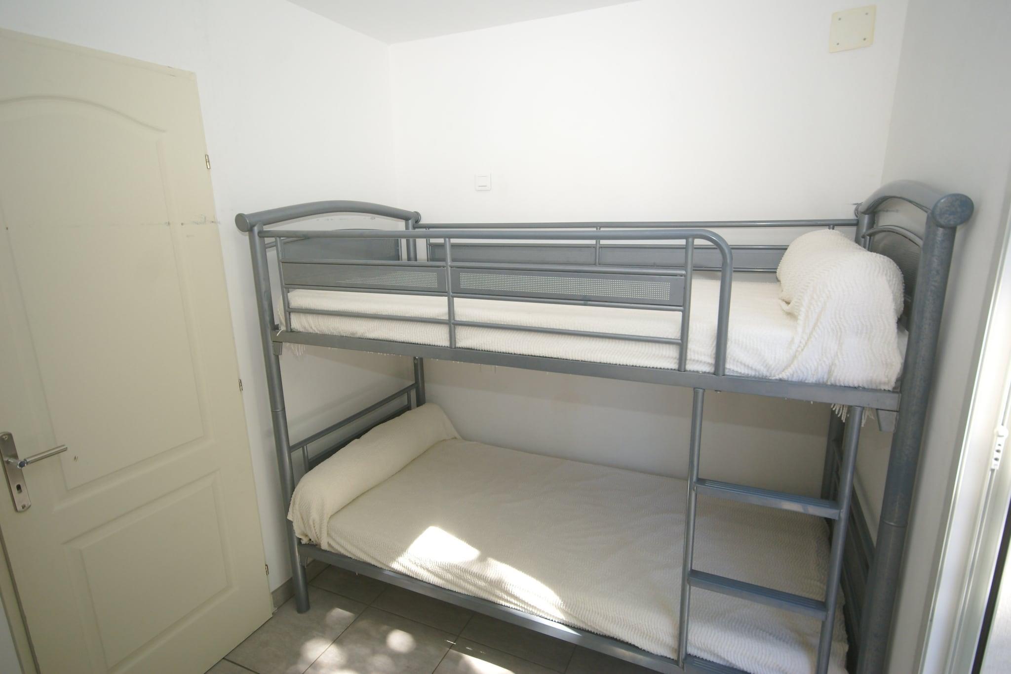 Dit strandferiested er kun få skridt væk, når du bor i denne lejlighed i Moriani-Plage. Denne ejendom med 1 soveværelse kan rumme 3 personer og er et behageligt ophold for en familie. Du kan køle af i den fælles swimmingpool efter hjemkomsten fra stranden. Beliggende nær stranden i feriestedet Moriani-Plage på Costa Verde. Det omkringliggende område byder på adskillige sports- og fritidsaktiviteter: golf, tennis, rafting, fiskeri, skiløb, ridning, svømning, mountainbiking, vandsport, vandreture, kurbade (termiske bade), naturisme, biografer og underholdning. Besøg byerne Cervione (10 km) og Aleria (30 km). Lejligheden ligger på første sal i en lille bygning ved siden af den fælles swimmingpool. Det har et soveværelse med to senge og en sovesofa i stuen. En stor altan byder på en storslået udsigt over parken. Du kan slappe af på liggestolene omkring swimmingpoolen. Parken er bilfri, da alt er inden for gåafstand. Du kan derfor gå til stranden eller til restauranterne i badebyen Moriani-Plage. For ankomster og afgange uden for de sædvanlige ankomst-/afgangstider opkræves et gebyr på 45 EURO (der betales på stedet).