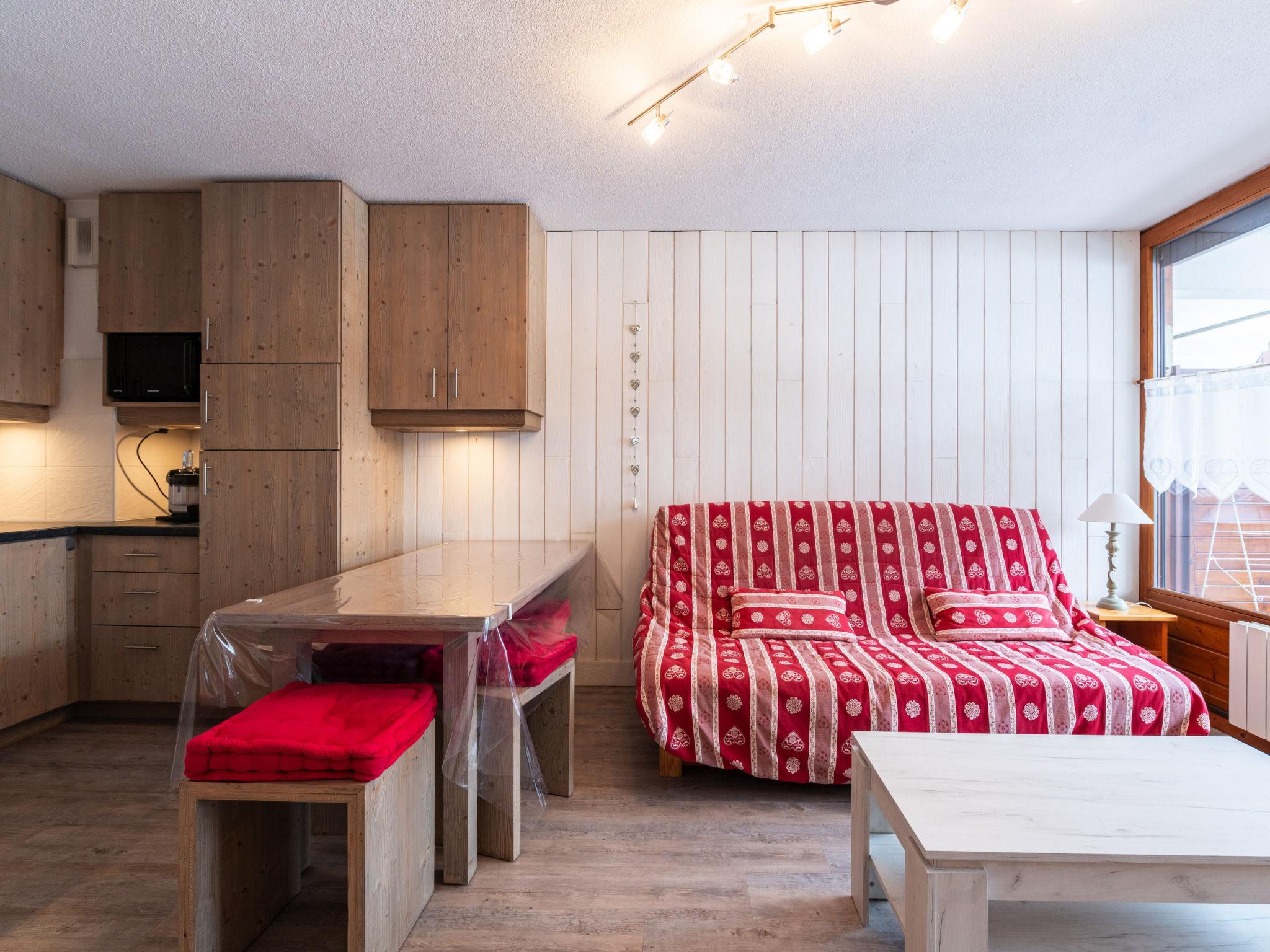 "Les Sitelles", 2-room apartment 32 m2 on 3rd floor. Object suitable for 6 adults. 1 room with 1 double bed. Living room with 1 sofabed and 1 x 2 bunk beds, 1 pull-out bed. Kitchen (4 hot plates, dishwasher, microwave, freezer, electric coffee machine). Shower/WC. Balcony. View of the mountains, the ski run and the swimming pool. Please note: non-smokers only. Offer by a commercial proprietor according to Art. 155, IV, CGI 74190000660EF