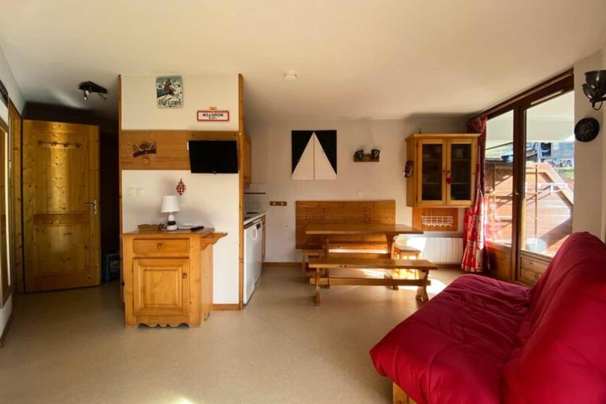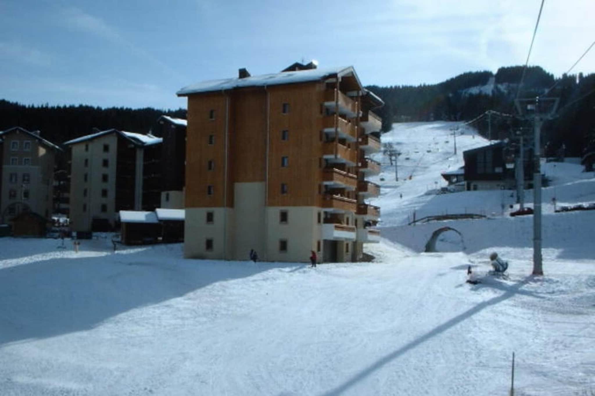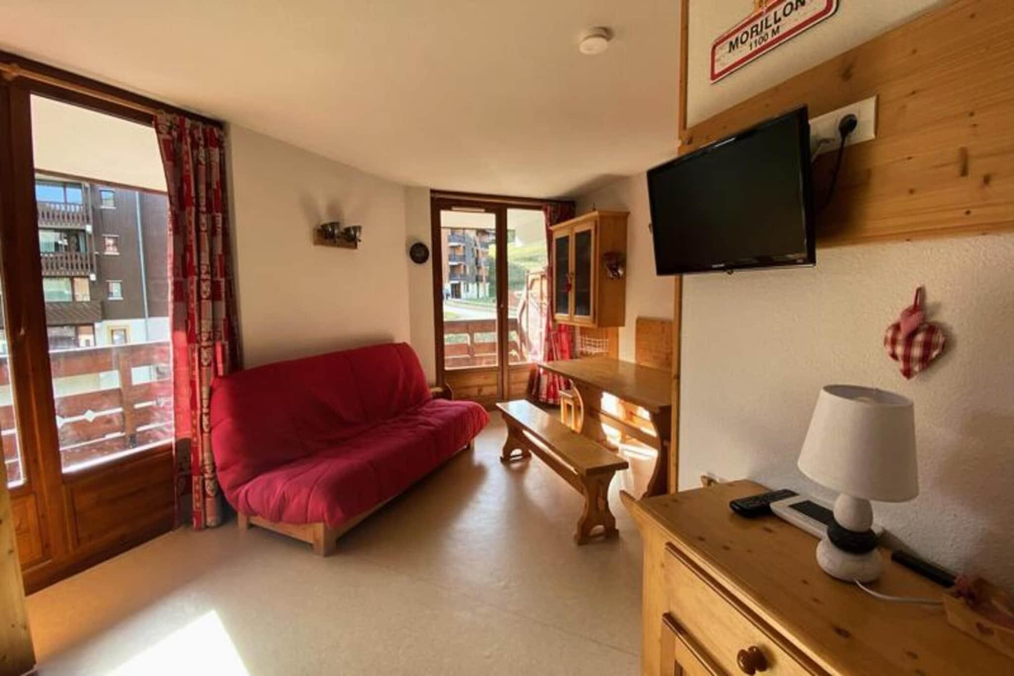 Beliggende ved foden af ??skiløjperne i Morillon 1100, er denne rummelige 34 m² store lejlighed det perfekte tilflugtssted for op til 6 gæster. Ejendommen er beliggende på anden sal i en bolig med elevator, hvilket giver nem adgang. Indenfor finder du et veldesignet layout med et bjerghjørne med en dobbelt køjeseng, et hyggeligt soveværelse med en dobbeltseng, en stue med en sovesofa og et tv. Lejligheden er ikke-ryger og tillader ikke kæledyr, hvilket sikrer et fredeligt ophold. Et depositum på EURO 300 kræves ved reservation. Lejligheden er ideelt beliggende nær skiløjperne, med begynderområdet og børnehaven kun få skridt væk, perfekt til familier. Det giver nem adgang til udendørs aktiviteter og en fantastisk udsigt over bjergene. Efter skiløb kan gæsterne slappe af på lokale caféer eller udforske nærliggende butikker og markeder For ekstra bekvemmelighed er lejligheden fuldt udstyret med alt hvad du behøver for et behageligt ophold. Køkkenet indeholder et TOP-køleskab, en 3-brænder keramisk kogeplade, en opvaskemaskine, en mikroovn og en Tassimo elektrisk kaffemaskine. Der er også et separat brusebad og toilet for ekstra komfort. Den østvendte altan med havemøbler er det perfekte sted at slappe af og nyde udsigten. Yderligere faciliteter inkluderer et skiskab til dit udstyr, en støvsuger og en tørretumbler. Bemærk venligst, at lejligheden ikke har internetadgang.