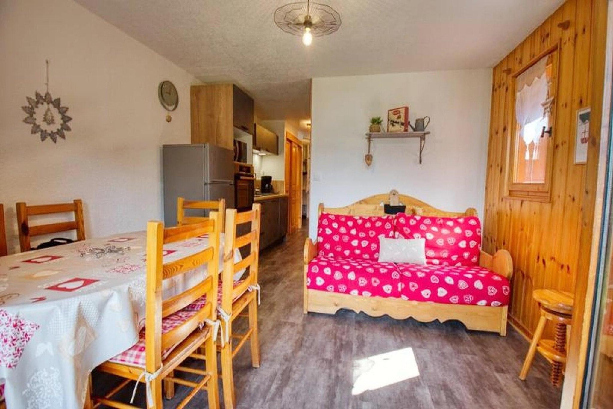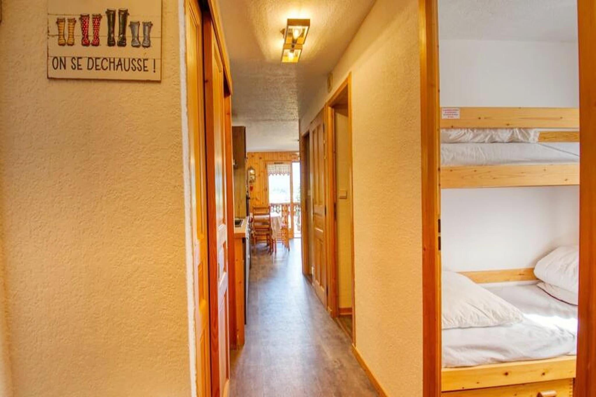 Denne lejlighed på 31 m² ligger på første sal i en bolig og kan rumme 5 til 6 personer. Den har et soveværelse med en 140x190 seng, en kahyt med 70x190 køjesenge (bemærk, at den øverste køje ikke er egnet til børn under 6) og en stue med en 140x190 rapido sofa. Lejligheden er ikke-ryger og kæledyrsfri, hvilket sikrer et behageligt miljø for alle gæster. Opholdsstuen er udstyret med et fjernsyn, og lejligheden tilbyder væsentlige faciliteter, herunder sengetøj, madrasser, dyner og firkantede puder på alle senge. Lejligheden ligger mindre end 500 meter (5 minutters gang) fra gondolstationen, som giver nem adgang til skiområdet. Landsbyens centrum er kun en kort gåtur væk, hvor gæsterne kan nyde lokale butikker, caféer og Morillons livlige atmosfære. Den østvendte balkon byder på en fantastisk udsigt over de omkringliggende bjerge, hvilket gør det til et ideelt sted at slappe af efter en dag med aktiviteter. Lejligheden er udstyret med et fuldt funktionelt køkken, herunder et køleskab/fryser, to-brænder induktionskomfur, ovn, mikroovn, opvaskemaskine og elektrisk filter kaffemaskine. For ekstra bekvemmelighed omfatter badeværelset brusebadeværelse med vaskemaskine, og gæsterne har et skiskab. Ejendommen tilbyder ikke internetadgang, men sikrer alle bekvemmeligheder for et afslappende ophold i hjertet af Morillon.