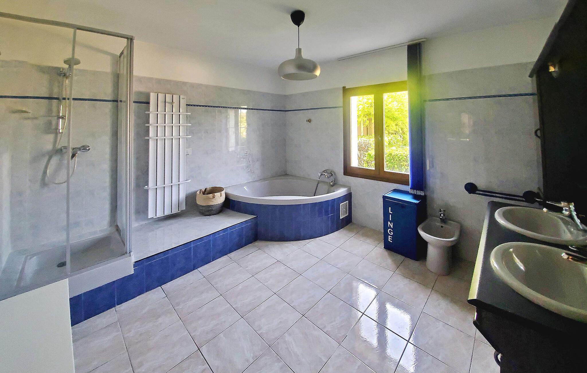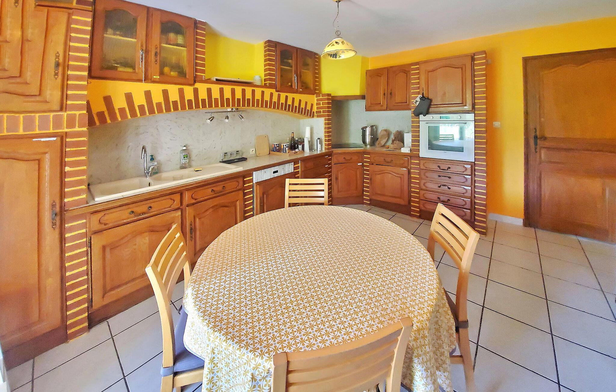 Glæd jer til en dejlig ferie i dette rummelige feriehus med pool.