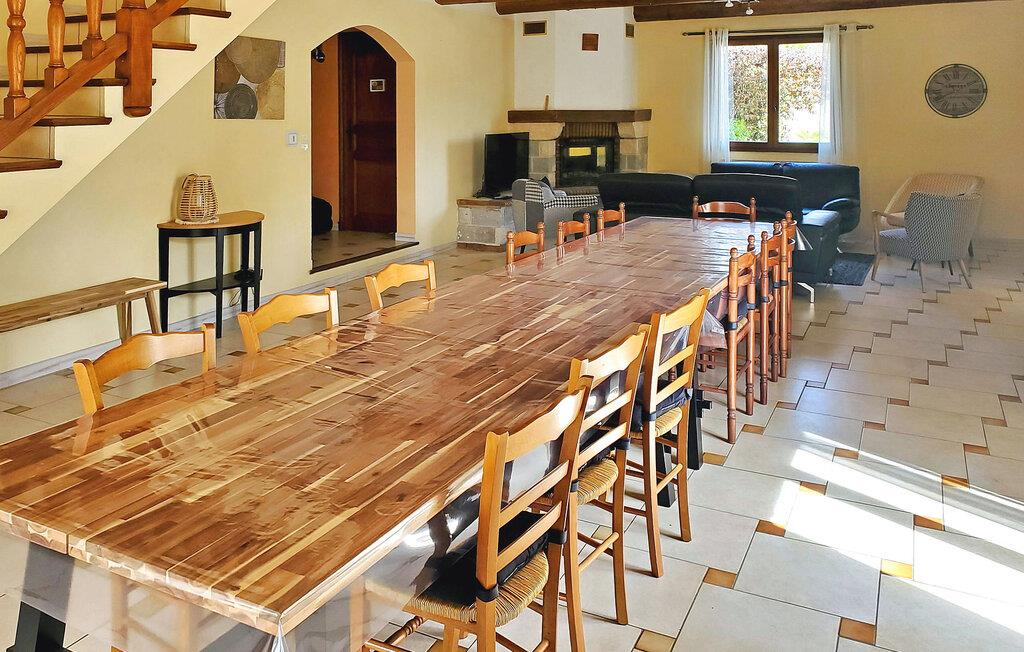 Det indbydende hus byder sine gæster velkommen midt i et idyllisk landskab og giver jer rummelige og komfortable rammer for jeres ferie. Hyggelige værelser og den hjemlige, autentiske indretning giver huset en behagelig atmosfære og gør det til det ideelle sted for en afslappende pause. Nyd hyggelige aftener i godt selskab ved det lange spisebord i stuen eller på komfortable sofaer.