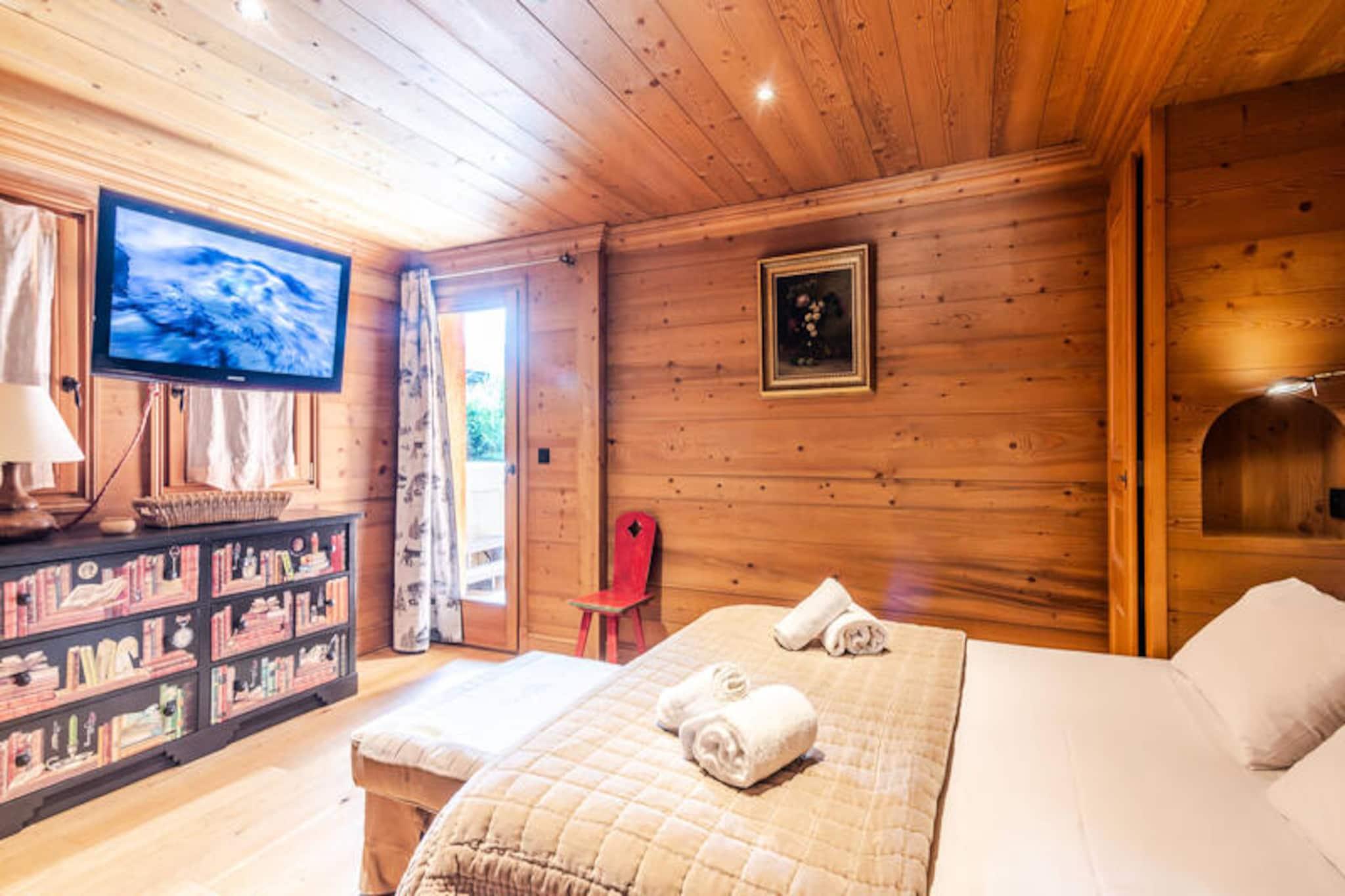 Denne luksuriøse 4-stjernede chalet tilbyder eksklusiv indkvartering på tre niveauer og en mezzanin med en elevator for nem adgang. Beliggende i Mas Metout-området i Morzine, har hytten et samlet areal på 250 m² og kan prale af en betagende udsigt med sin sydvestlige eksponering. Det kan komfortabelt rumme op til 12 gæster i sine fem rummelige soveværelser, hver udstyret med rigelig opbevaring og private en-suite badeværelser med walk-in bruserum eller badekar. Hyttens beliggenhed er yderst bekvem, idet den kun er 400 meter fra gangbroen og 500 meter fra Super Morzine-gondolen, hvilket giver nem adgang til pisterne og skiområderne. Landsbyens centrum med dets butikker, restauranter og attraktioner er kun en kort afstand. Denne førsteklasses beliggenhed giver gæsterne mulighed for at nyde både roen i hyttens omgivelser og Morzines livlige aktiviteter. De sydvestvendte balkoner giver en fantastisk udsigt, og ejendommen er perfekt beliggende til at nyde områdets naturlige skønhed. Det fuldt udstyrede køkken har avancerede apparater såsom en kaffemaskine, elkedel, opvaskemaskine, ovn og endda en fonduemaskine og crepemaskine til specielle måltider. Hytten er designet til komfort med moderne bekvemmeligheder, herunder Wi-Fi og et vaskerum med vaskemaskine og tørretumbler.