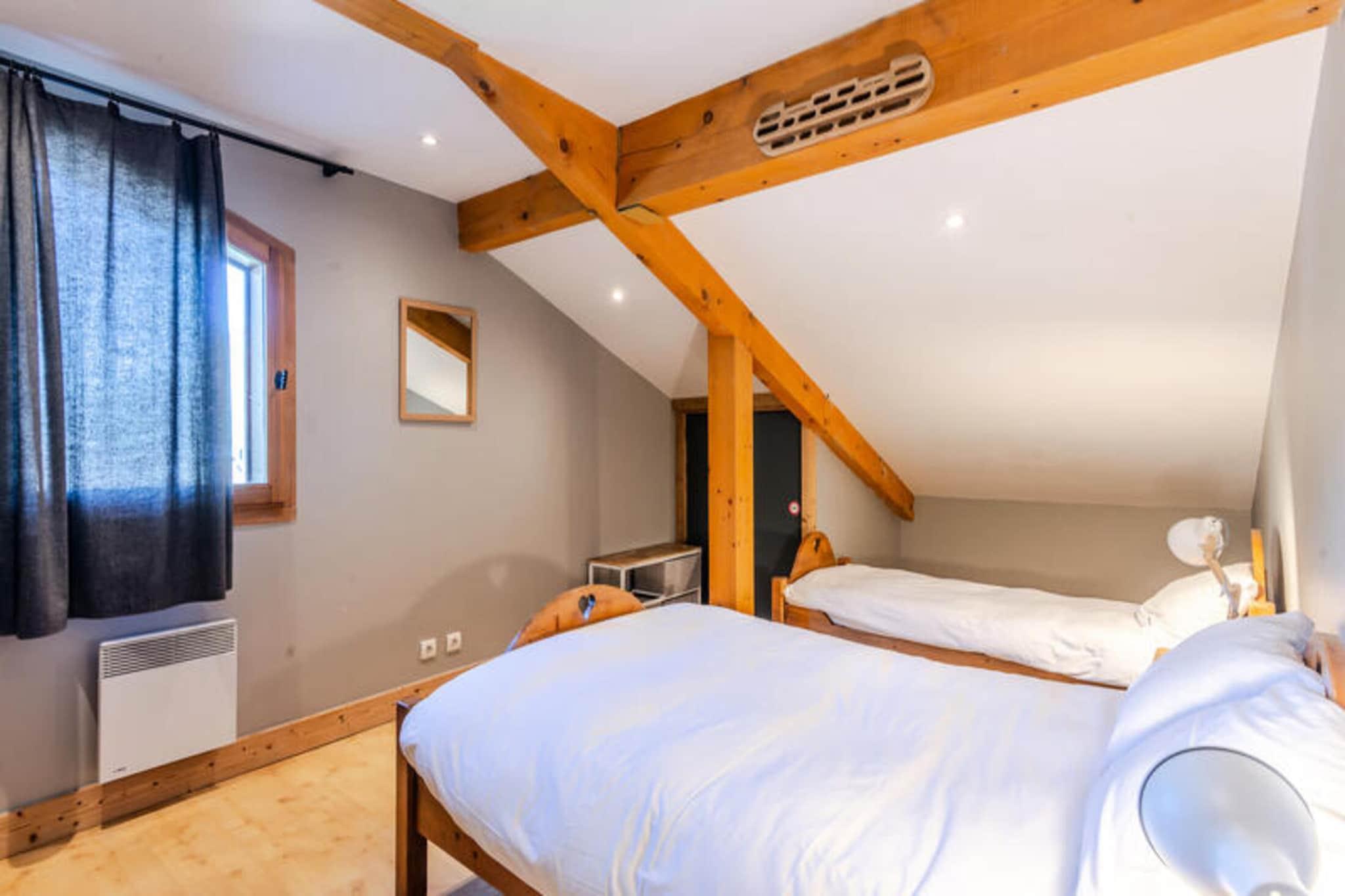 Ejendommen sammen med et rummeligt layout giver et behageligt ophold for op til 10 gæster i en 120 m² duplex lejlighed. Første sal byder på en hyggelig stue med pejs og fjernsyn, der åbner ud til en terrasse med havemøbler, perfekt til at slappe af efter en dag på ski. Lejligheden indeholder fire soveværelser: et med køjesenge, et med en dobbeltseng og en enkeltseng, et med en dobbeltseng og et en-suite brusebad, og et med en dobbeltseng plus en mezzanin enkeltseng. Yderligere faciliteter omfatter en privat garage, husholdnings- og håndklæder samt opredte senge ved ankomsten. Kæledyr er tilladt mod et ekstra gebyr, og rygning er påkrævet i hele lejligheden. Der tilbydes slutrengøring, eksklusive køkkenet. Beliggende kun 600 meter fra skilifterne og 800 meter fra centrum af Morzine, tilbyder lejligheden nem adgang til både pisterne og byens attraktioner. Området er godt betjent af offentlig transport, og lokale butikker, restauranter og underholdning er inden for gåafstand. Morzine er en del af det større skiområde Portes du Soleil, som giver rigelige muligheder for skiløb, vandreture og andre udendørs aktiviteter. De nærmeste lufthavne er tilgængelige med bil, hvilket gør dette til en bekvem beliggenhed for både vinter- og sommerferier. Lejligheden har et fuldt udstyret åbent køkken med moderne apparater, herunder en induktionskomfur, ovn, mikroovn og opvaskemaskine, ideel til at tilberede måltider under dit ophold. Et separat spisekammer tilføjer bekvemmelighed med ekstra apparater såsom en kaffemaskine og fonduesæt. Andre faciliteter omfatter en vaskemaskine, et tv i opholdsstuen og soveværelserne samt et spillelokale til underholdning. Ejendommen er designet til komfort med varme, badeværelsesprodukter og rengøringsartikler inkluderet.