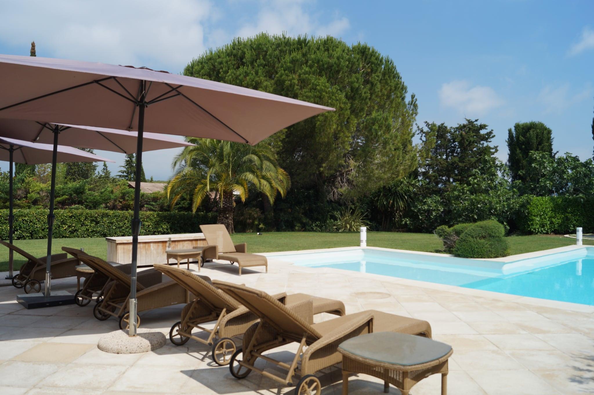 Elegant Escape i Mougins Velkommen til en stilfuld 6-værelses villa i Mougins - din private oase i den franske riviera. Huset er designet til familier og grupper og har en funklende 12 m privat pool, trampolin, udendørs bruser og frodige indhegnede haver. Med aircondition overalt og rummeligt interiør tilbyder det moderne bekvemmeligheder i smarte, fredfyldte omgivelser (kæledyr er ikke tilladt). Prime Riviera Location Kun 3 km fra den maleriske landsby Mougins og en kort køretur til Cannes og Grasse, er villaen perfekt placeret til at udforske det bedste i regionen. Tilbring dagen med at solbade på strandene i Cannes, tee ud på nærliggende golfbaner eller opdage charmen ved Valbonne og Antibes. Supermarkeder, restauranter og tennisbaner er alle inden for rækkevidde. Spis og slap af med stil Villaens åbent køkken er ideelt til gruppemåltider, mens de overdækkede terrasser tilbyder det perfekte sted til udendørs spisning. Nyd vin ved solnedgang, grill på gasgrillen, eller nyd en bog i skyggen, mens børnene hopper på trampolinen. Fra høje stole til køjesenge, der er tænkt på alle detaljer - hvilket gør dit ophold i Riviera lige så afslappende som luksuriøst.