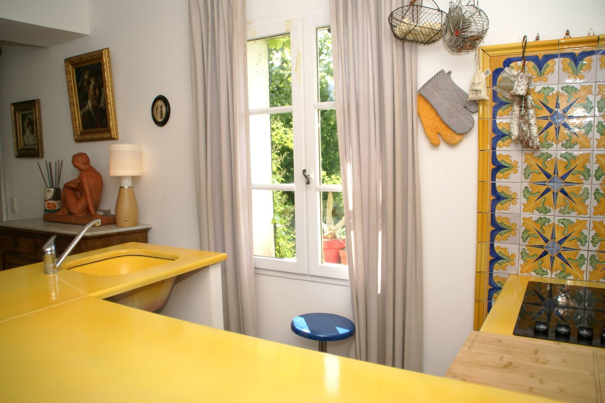 Her finder du den perfekte kombination af plads, fred og ro. I den store græshave (ca. 3000 kvm) med frugttræer, vil du helt sikkert finde et sted at slappe af på din lounger. Hvis du ser dig omkring, har du panoramaudsigt over det smukke landskab, de omkringliggende skove og maleriske bjergtoppe. Nyd et spil af jeu de boules, med lukket privat swimmingpool eller et lækkert måltid i vinterhaven. Huset udstråler en behagelig og afslappet atmosfære; Det er helt og kærligt dekoreret, malerier og samlinger gør det til en attraktiv helhed. Denne villa er beliggende i Moustiers-ste. Marie (3 km). Kun 3 km fra Lac de Ste. Croix. Endnu tættere er den mindre sø "Le Petit Lac". Moustiers-Ste. Marie er et ideelt udgangspunkt for at udforske den 21 km lange Grand Canyon du Verdon, det er stedet, hvor nord- og sydruten kommer langs det største kalkstensrev i Europa. Canyon er bedst beundret til fods, for daredevils en tur med kano er en mulighed. Den bedste rute med bil er i retning af Castellane (Route des Crêtes), den løber langs spektakulære udkigssteder.