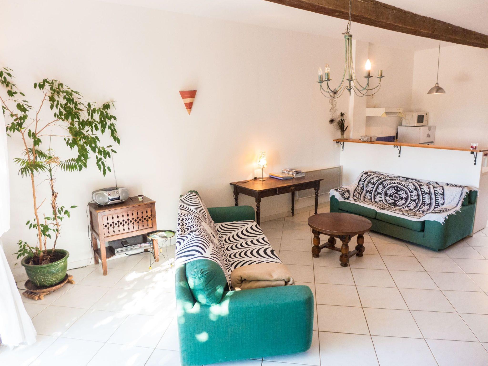 This charming gîte is located on a working wine estate in Murviel les Béziers. This large property, part of which has been converted into 2 adjoining gîtes, is set in a calm and peaceful environment surrounded by vineyards and olive groves. It's the perfect place to relax and unwind, an invitation to immerse yourself in the heart of nature, with plenty of opportunities for walks, particularly in the nearby Parc Régional du Haut Languedoc, renowned for its hiking trails. There's also a white-water sports centre nearby. And if you're a history buff, all you have to do is venture into the surrounding medieval villages, renowned for their circulades. This 72 m² gîte sleeps 4 comfortably, with a private terrace facing the setting sun. The views over the surrounding countryside are exceptional. The swimming pool area, to be shared, is in a peaceful setting, just a few dozen metres from the gîte and surrounded by nature. It has an American beach, ideal for small children with 0.20m of water. The gîte has been tastefully decorated. The combination of noble building materials and the warmth of the chosen colours gives it a great deal of charm, character and conviviality. Ground floor: large 35 m² living room with lounge, dining area and open-plan kitchen. 1st floor: 1 bedroom with 160cm bed, 1 bedroom with 2 single beds and shower room with WC. Uninterrupted view of the surrounding hills. Not overlooked by the other adjoining gîte. 1 pet allowed. The owner speaks English.