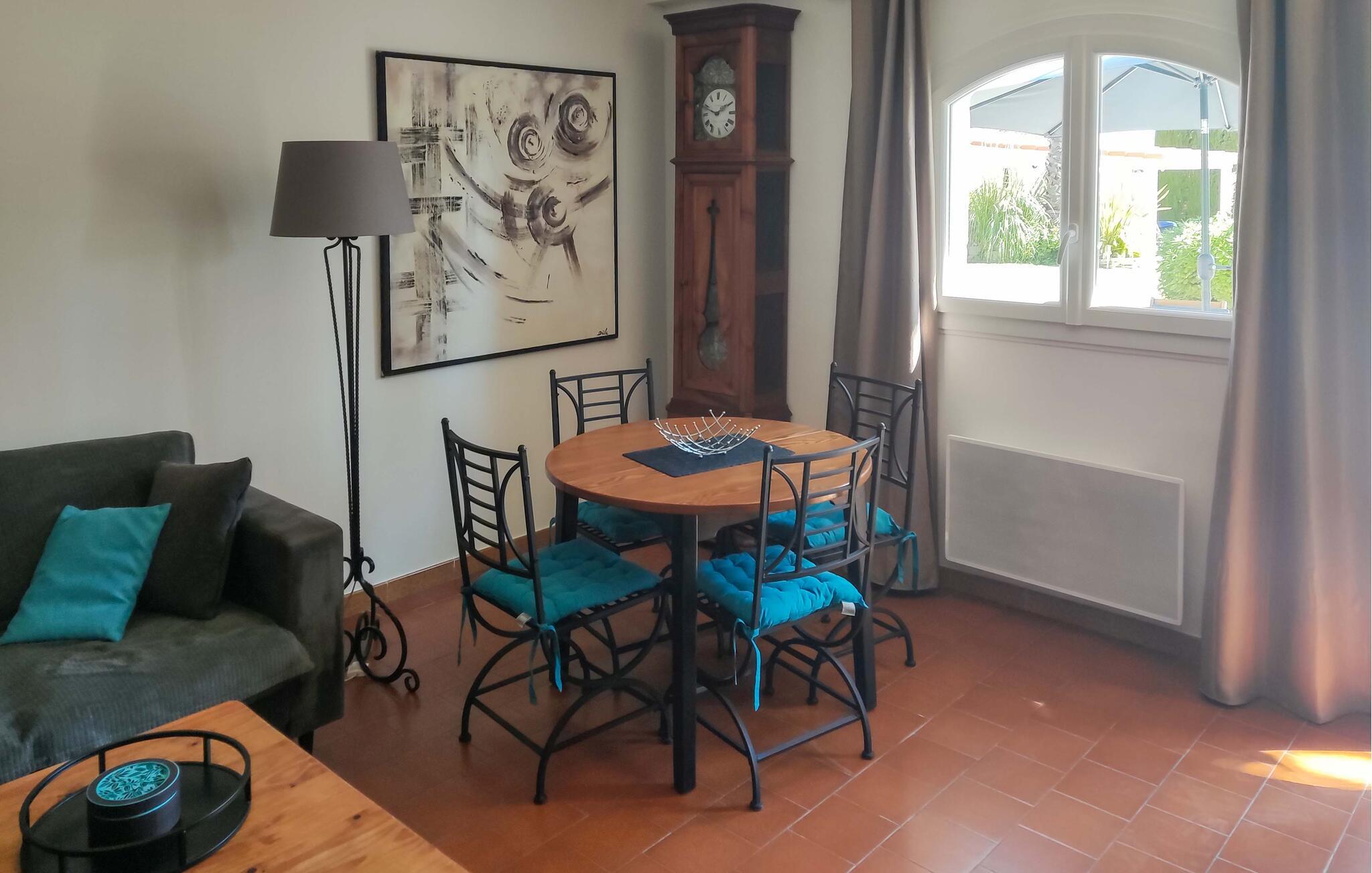 Lejligheden ligger i stueetagen til en bygning med privat pool. Den indhegnetde grund er i et roligt område, 25 minutter fra Montpelliers centrum og 30 minutter fra de smukkeste strande ved Middelhavet. Lejligheden har to soveværelser, et badeværelse, et køkken-alrum og et separat toilet.