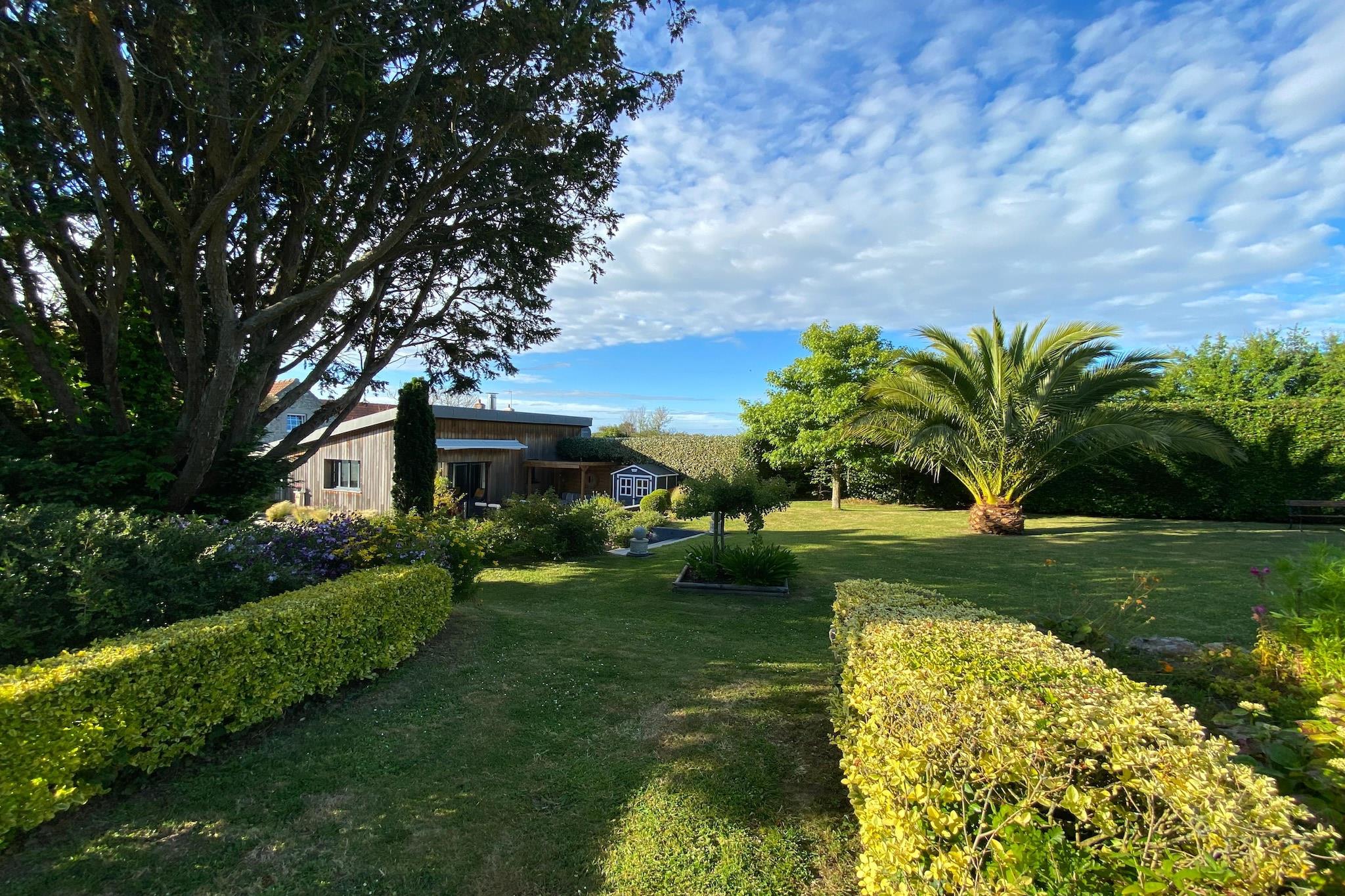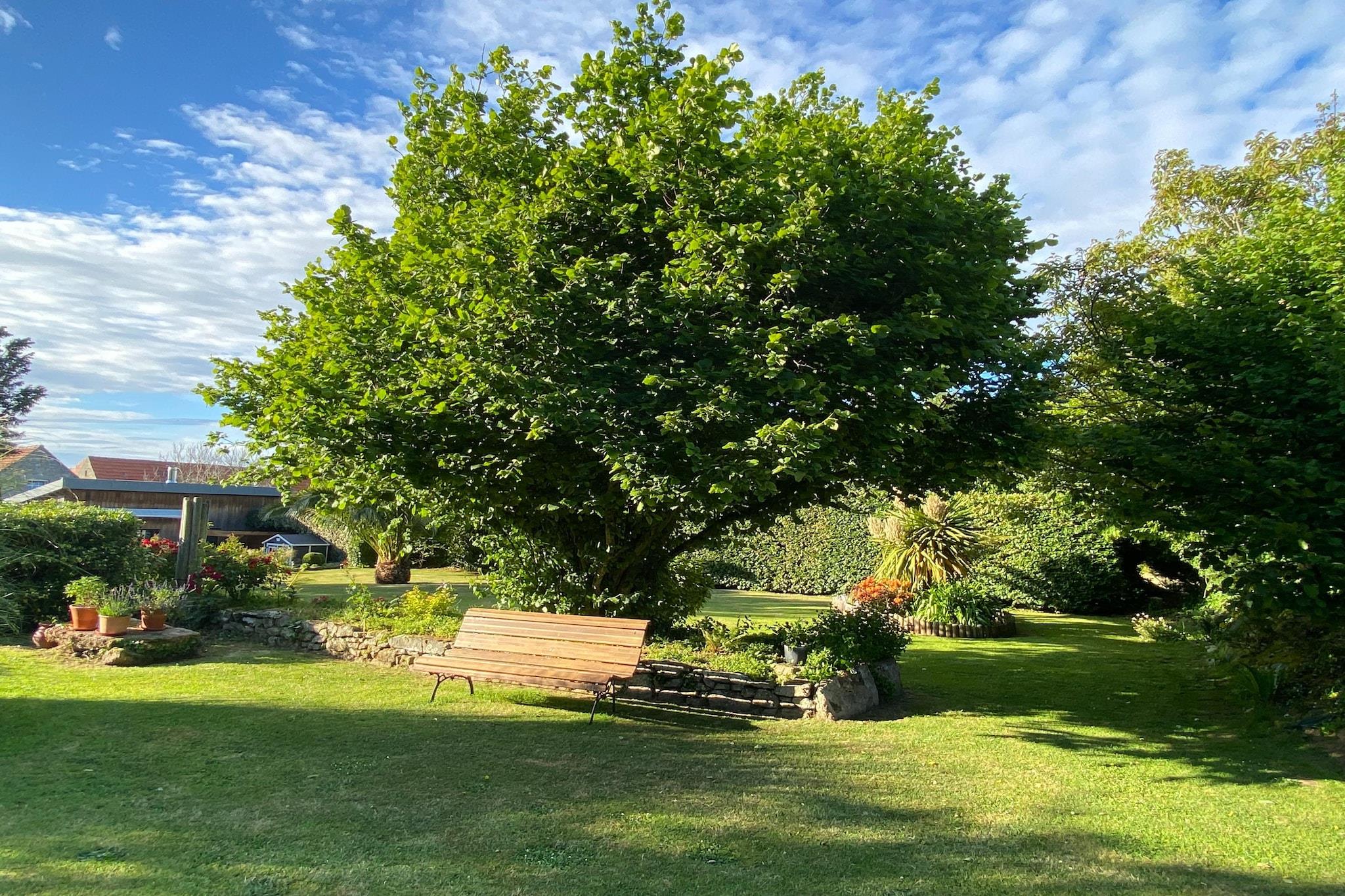 Dette charmerende feriehus, beliggende på en blomsterfyldt ejendom med to boliger, har en lys stue og en solrig terrasse med udsigt over haven. Beliggende i en fredelig normannisk landsby, kun få minutter fra Cotentins strande og byen Néville-sur-Mer i hjertet af Val de Saire. Perfekt til at udforske området med nem adgang til vandrestier, slotte og herregårde samt kulturelle byer som Bayeux, Avranches, Barfleur og Granville. Gå ikke glip af La Pernelle for en panoramisk udsigt over kysten fra 123 meters højde.