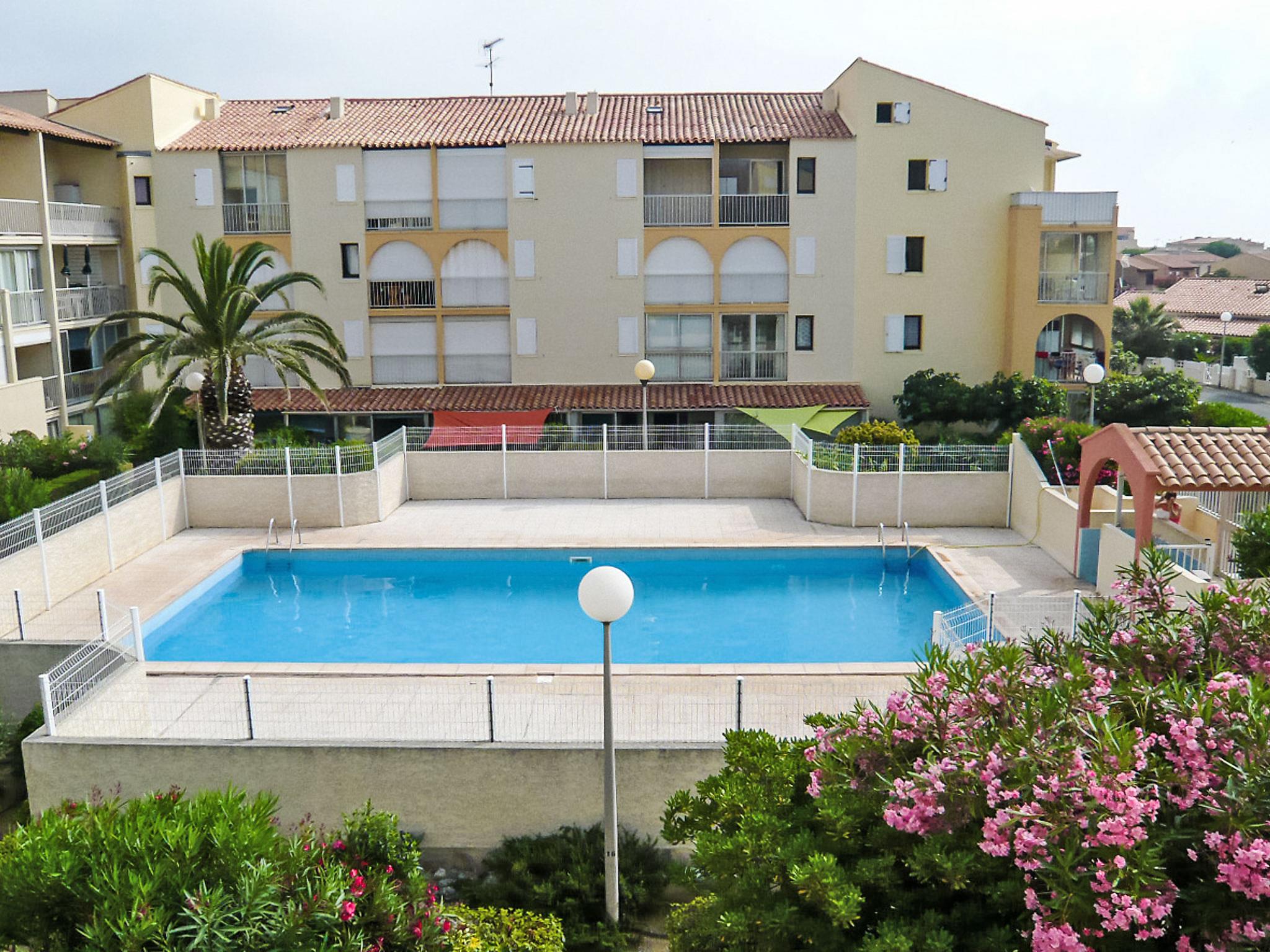 Residence "Les Maisons sur la Plage", 3 storeys. 1 km from the centre of Narbonne-Plage, in a sunny position, 350 m from the sea, 350 m from the beach, road to cross. For shared use: swimming pool (12 x 6 m, depth 140 - 180 cm, seasonal availability: 28.May. - 28.Sep.). Parking. Shop, grocery, restaurant, bar 200 m, bus stop 300 m, diving center 2 km. Sports harbour 2 km, sailing school 2 km, riding stable 5 km. Nearby attractions: Réserve Africaine de Sigean 33 km, Cité de Carcassonne 73 km, Espace balnéoludique de Gruissan 6 km. Swimming shorts prohibited.