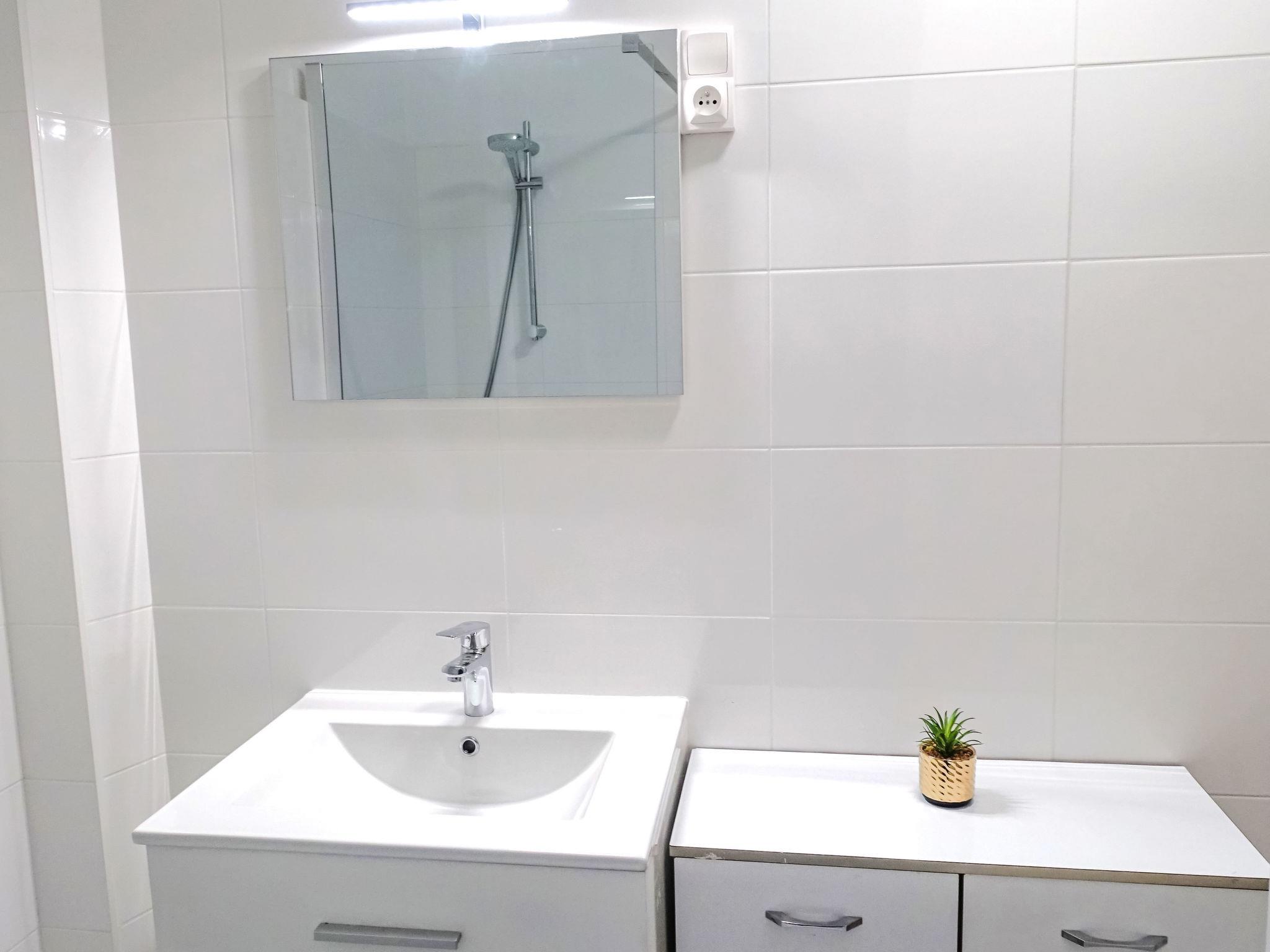4-room apartment 90 m2, on the ground floor. Living/dining room. Exit to the terrace. 1 room with 2 beds (80 cm). 1 room with 1 french bed (140 cm). 1 room with 1 french bed (140 cm). Small kitchen (4 hot plates, oven, dishwasher, microwave, freezer). Exit to the terrace. Shower, sep. WC. Electric heating. Large terrace 25 m2 partly roofed, south-west facing position. Terrace furniture. Partial view of the sea. Facilities: washing machine. Internet (WiFi, extra). Please note: maximum 1 pet/ dog allowed. Smoke alarm.