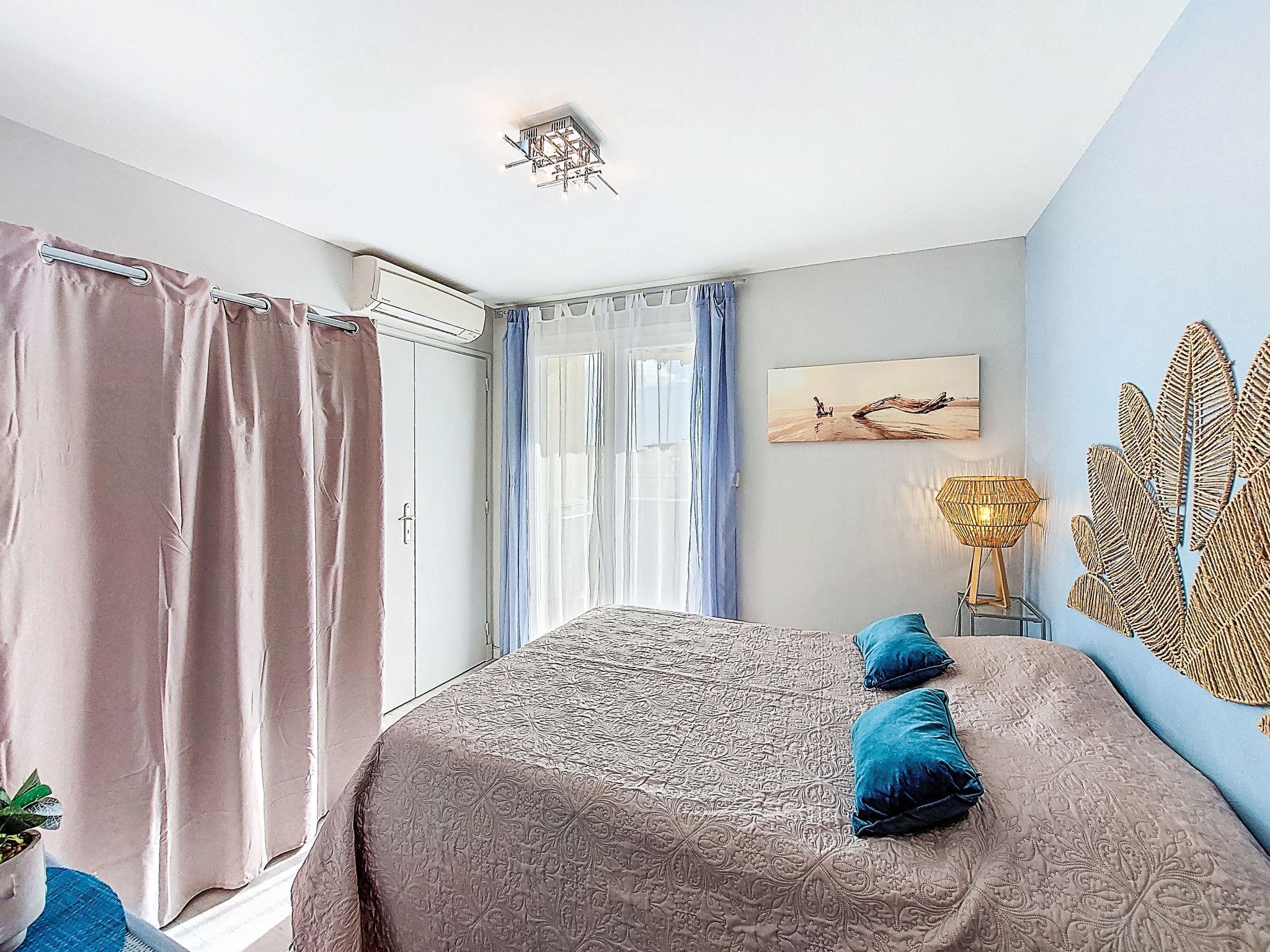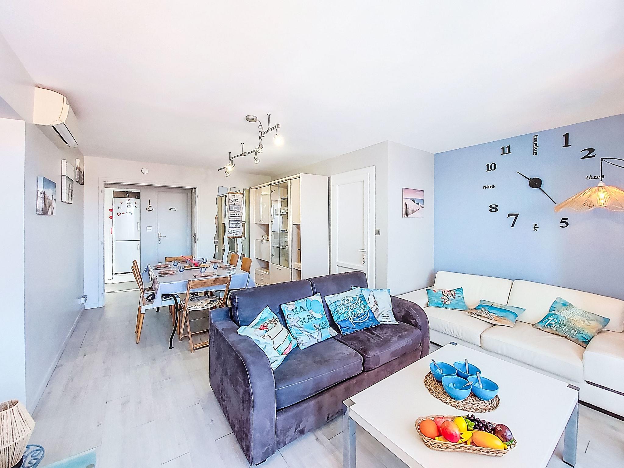 3-room apartment 52 m2 on 3rd floor. Comfortable and beautiful furnishings: living/dining room with 1 double sofabed and TV (flat screen). 1 room with 1 french bed (1 x 140 cm, length 190 cm). 1 room with 1 bed and 1 french bed (1 x 140 cm, length 190 cm). Exit to the balcony. Kitchen (oven, dishwasher, 3 induction hot plates, toaster, kettle, microwave, freezer, electric coffee machine). Exit to the balcony. Shower, sep. WC. Electric heating, air-conditioning. Balcony, south facing position. Balcony furniture. Distant view of the sea. Facilities: washing machine. Internet (WiFi, extra). Parking space n 14. Please note: 1 small pet/ dog allowed. Smoke alarm. Offer by a private individual according to Art. 155, IV of CGI.
