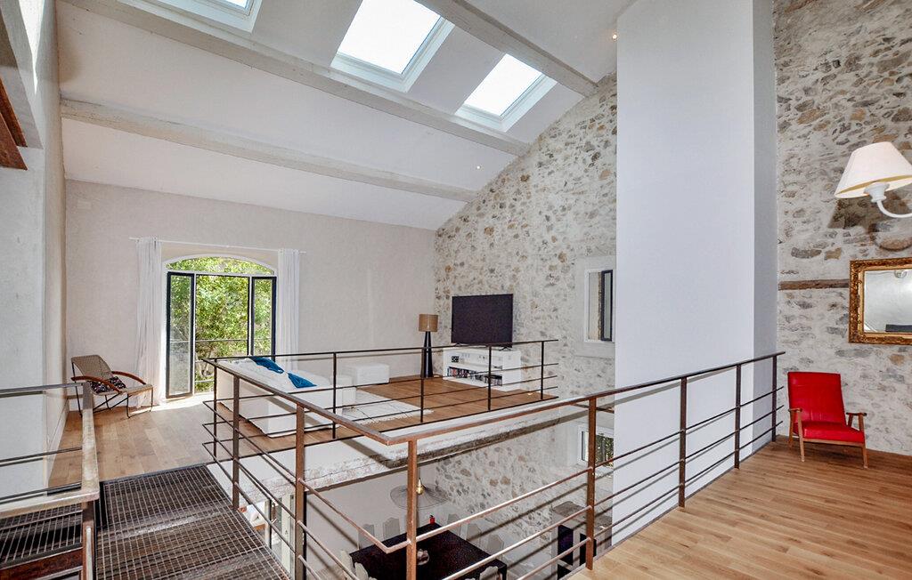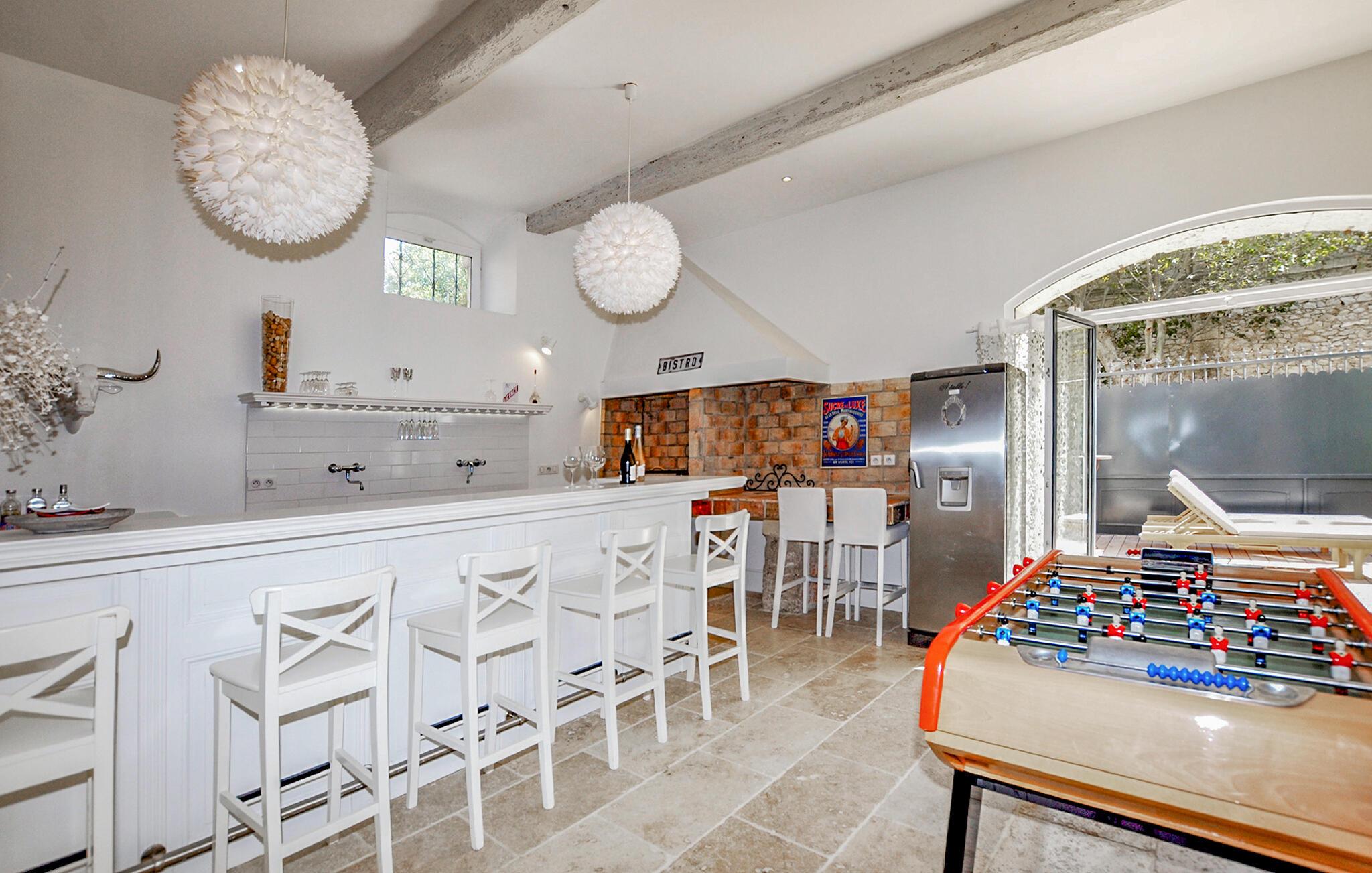 Forestil jer: En solrig morgen, hvor lyset strømmer gennem vinduerne i dette imponerende stenhus og skaber en varm atmosfære, der straks sætter jer i feriestemning. Kombinationen af rustikke stenvægge, bindingsværk, moderne designelementer og lyse rum fordelt på tre etager skaber en helt særlig stemning for jer. Nyd hyggelige stunder med bordfodbold i stuen eller spis jeres måltider udendørs, mens solen skinner over den idylliske terrasse. Tag en dukkert i poolen eller slap af ved kanten, mens I planlægger jeres næste aktiviteter.
