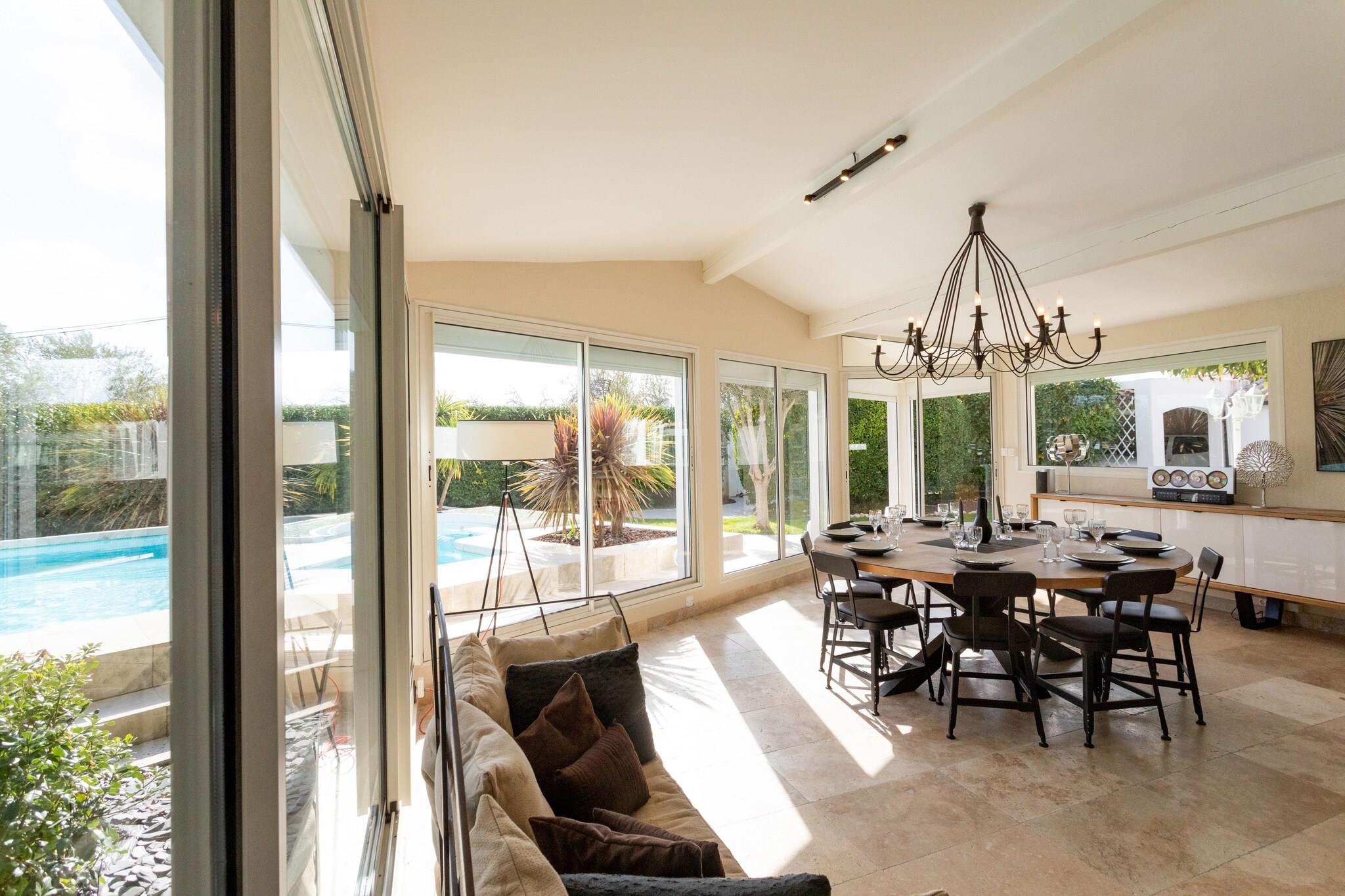 Velkommen til en prestigefyldt, romantisk ejendom med en stor privat pool – Absolut privatliv – Narbonne Forkæl dig selv med en tidløs flugt i denne charmerende, eksklusive ejendom, beliggende i grønne omgivelser i Narbonne. Et sjældent fund, designet til par eller familier, der søger fred, sensualitet og frihed. Det airconditionerede hus åbner ud til en storslået, fuldt privat anlagt have, fuldstændig afsondret, hvor fred og ro hersker. Den store private swimmingpool, badet i solskin fra morgen til aften, bliver hjertet af dine dage og stjerneklare nætter. Naturisme er muligt i en elegant, diskret og perfekt respektfuld atmosfære. Hvert rum er designet til at invitere til afslapning og forbindelse: generøse rum, raffineret komfort, en varm og beroligende atmosfære. Her går tiden langsommere og giver plads til glæden ved at være sammen. Ydelser og fordele: Stor privat swimmingpool, spa-trappe (bobler), reserveret eksklusivt til rejsende Lukket have, intim og uden udsigt, fra landskabet til byen. Romantiske, rolige og private omgivelser Naturisme er tilladt i fuldstændig ro i sindet. Sommerkøkken med stegepande + udendørs lounge Elegant, komfortabelt og smagfuldt møbleret hus, parkeringsplads Ideel beliggenhed: Middelhavsstrande kun få minutter væk: Gruissan, Narbonne Plage, Saint Pierre, Leucate. Narbonne, dens museer, dens kulturarv og dens levevis, markedshallerne, bådene, gåture langs kanalen, sluserne. Omkringliggende landskab til romantiske gåture og solnedgange, vandreture i La Clape, Corbières, omkring Bages-dammene. Nærliggende bjerge, Font-Romeu, Pyrenæerne, Andorra Den middelalderlige by Carcassonne, en historisk perle i nærheden, klostrene Fontfroide, Sainte Marie, Lastours, Caunes-minervois, Lagrasse... Narbonne, et krydsfelt i Sydeuropa, Carcassonne, Perpignan, Toulouse, Montpellier, Béziers og Spanien ligger kun få kilometer væk. Togstation 4 km væk og motorvejsadgang i nærheden, samt supermarkeder og historiske centrum 5 minutter væk. Disse restauranter og de berømte Grand Buffets. En eksklusiv adresse til et exceptionelt romantisk ophold, der kombinerer diskret luksus, fredet natur og Sydens fornøjelser. En personlig og varm velkomst venter dig.