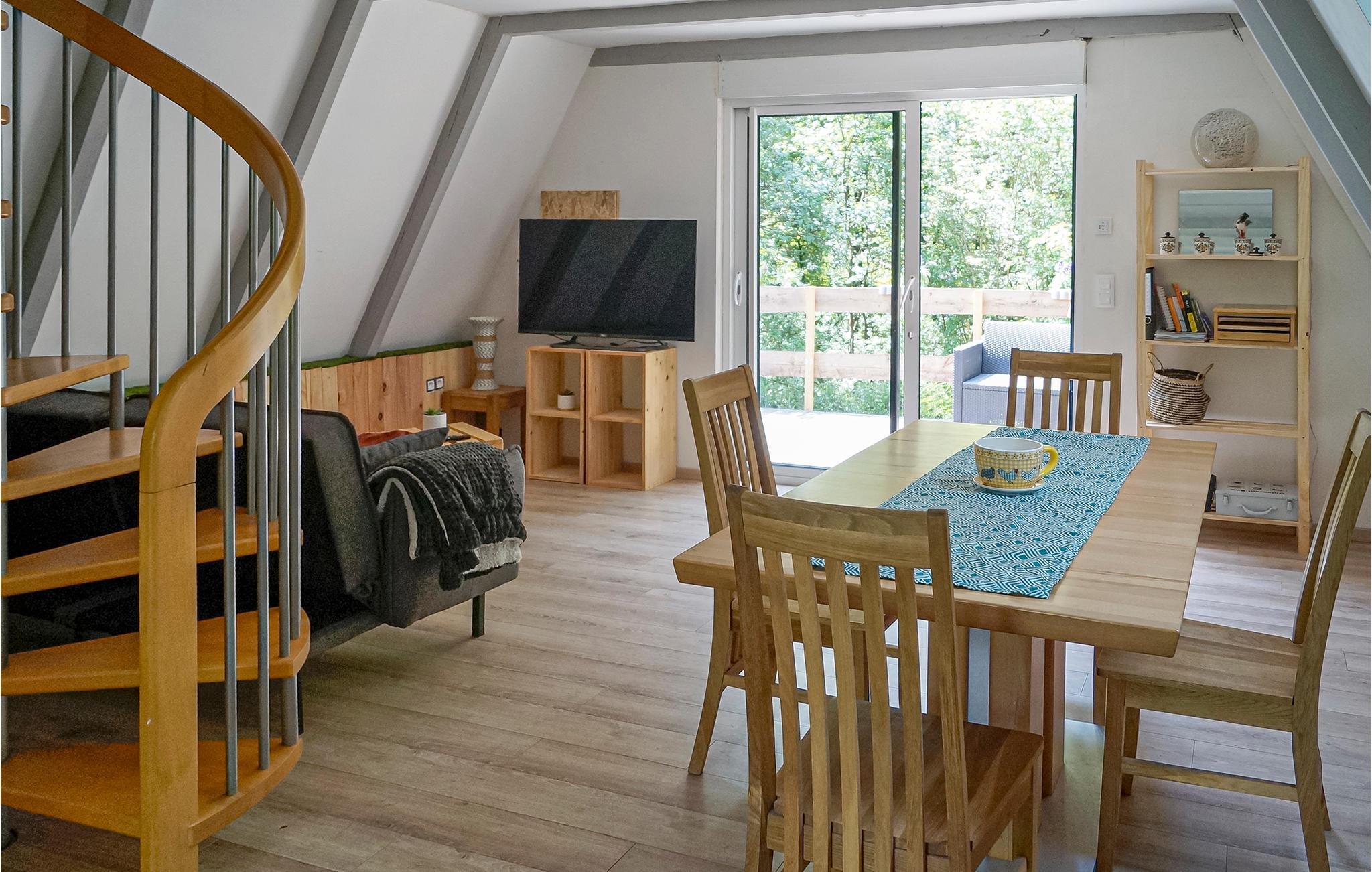 Huset tilbyder et soveværelse på loftet og yderligere to senge i stuen. Der er også et tekøkken og et badeværelse. Terrassen er perfekt til al fresco morgenmad eller et glas vin om aftenen. En grill er også tilgængelig til hyggelige grillaftener. Den afsondrede ejendom giver jer tilstrækkeligt med privatliv og ro til en fredelig ferie omgivet af natur. Huset ligger nær den tyske grænse.